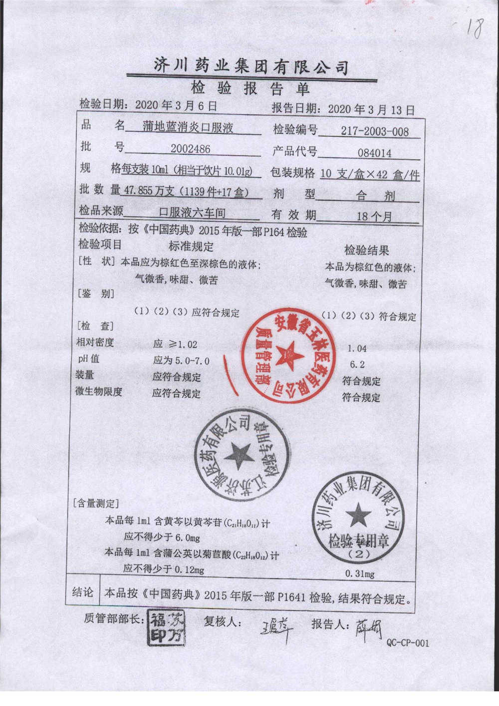 | 蒲地藍消炎口服液 | 10ml*10支 | 1801A44 | 查看詳情 |