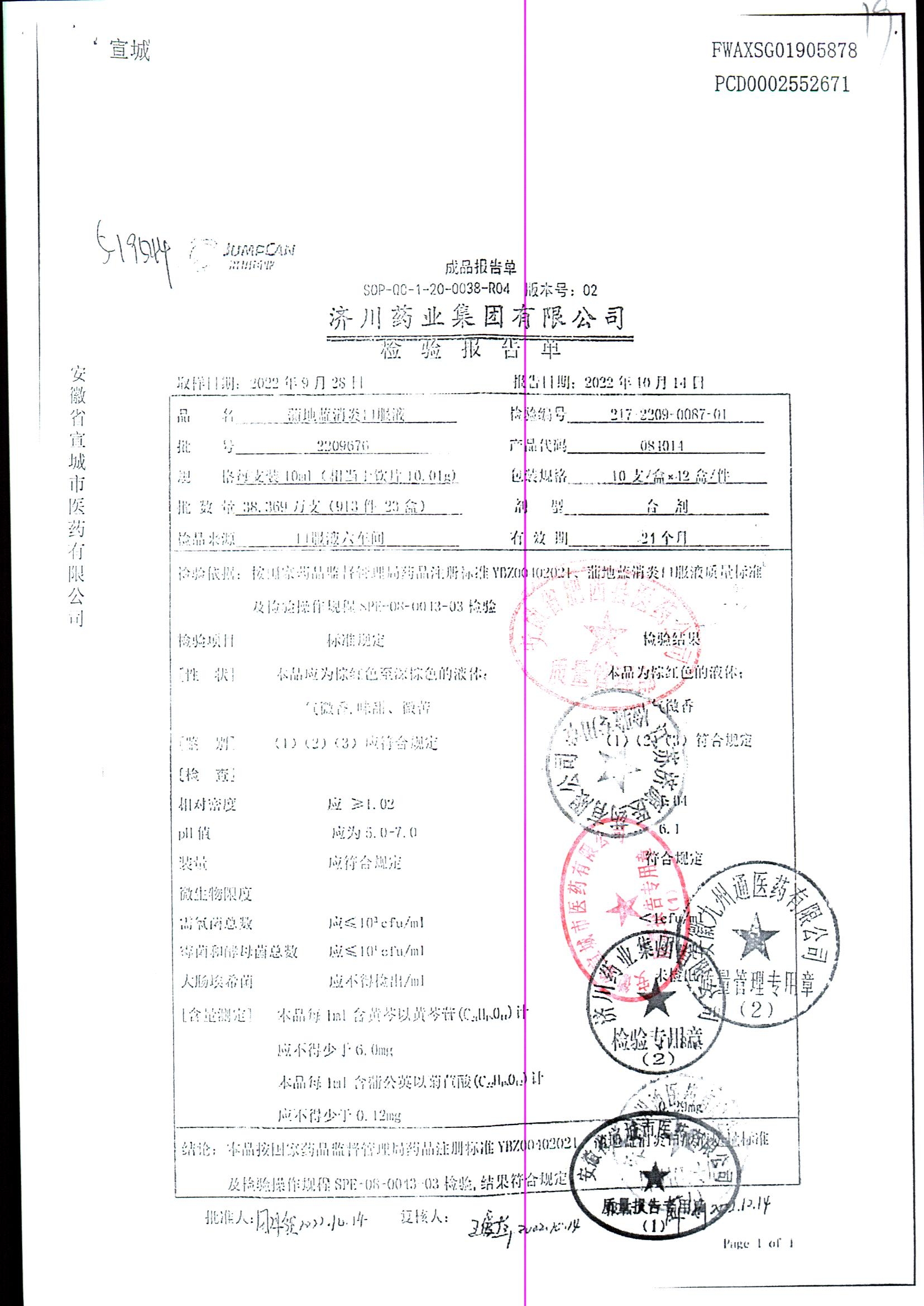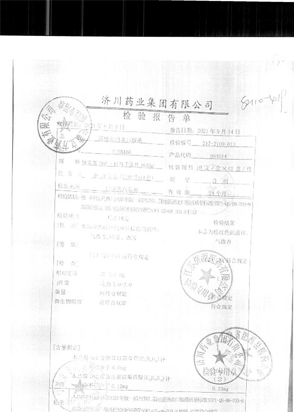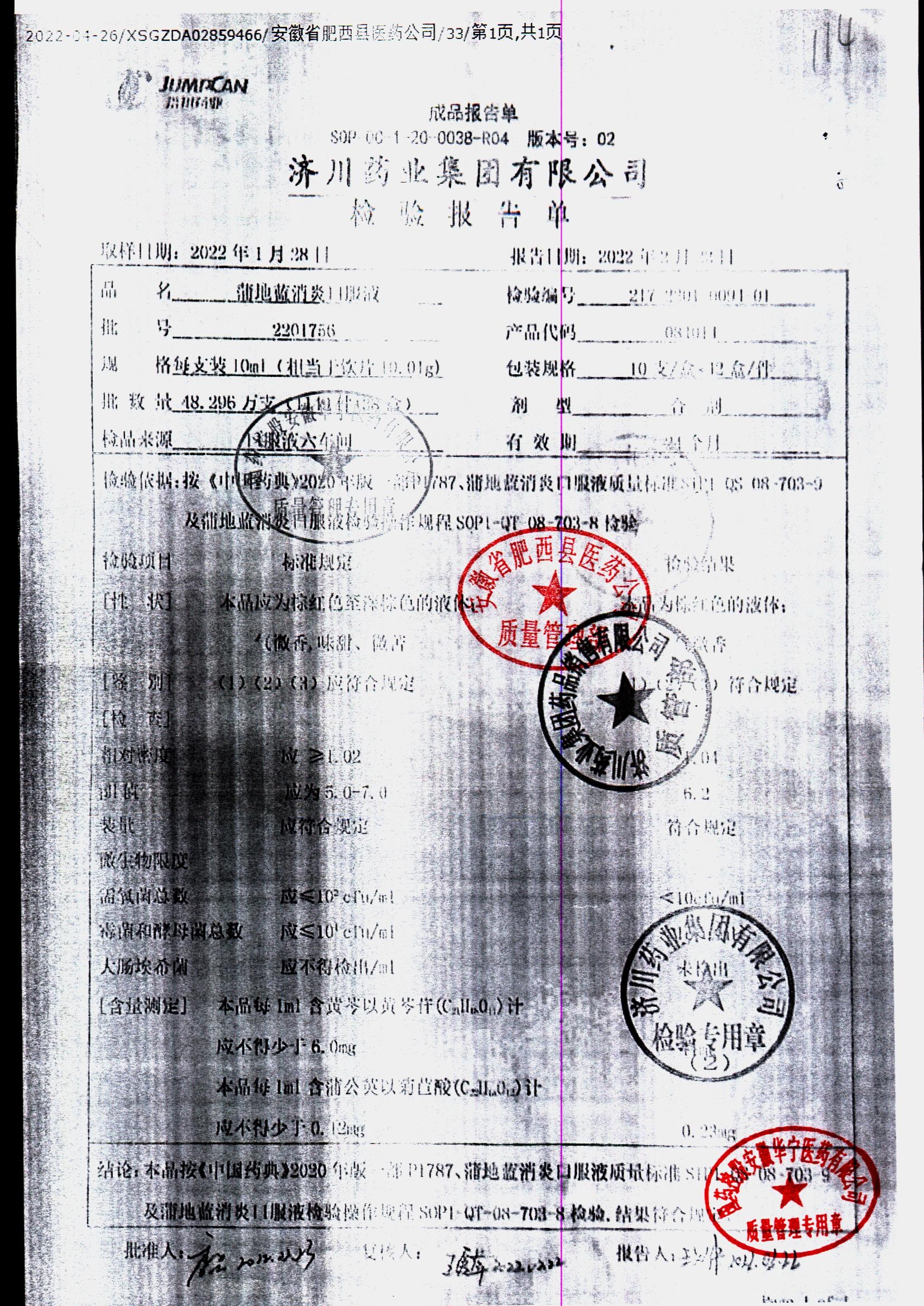 | 名稱 | 規(guī)格 | 批號 | 藥檢報告 |