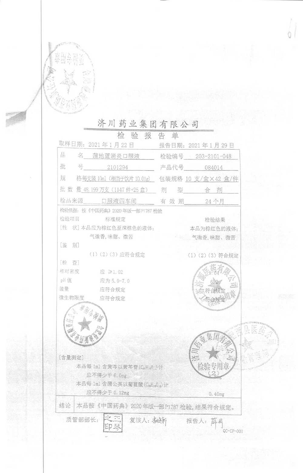 | 蒲地藍消炎口服液 | 10ml*10支 | 2010224 | 查看詳情 |