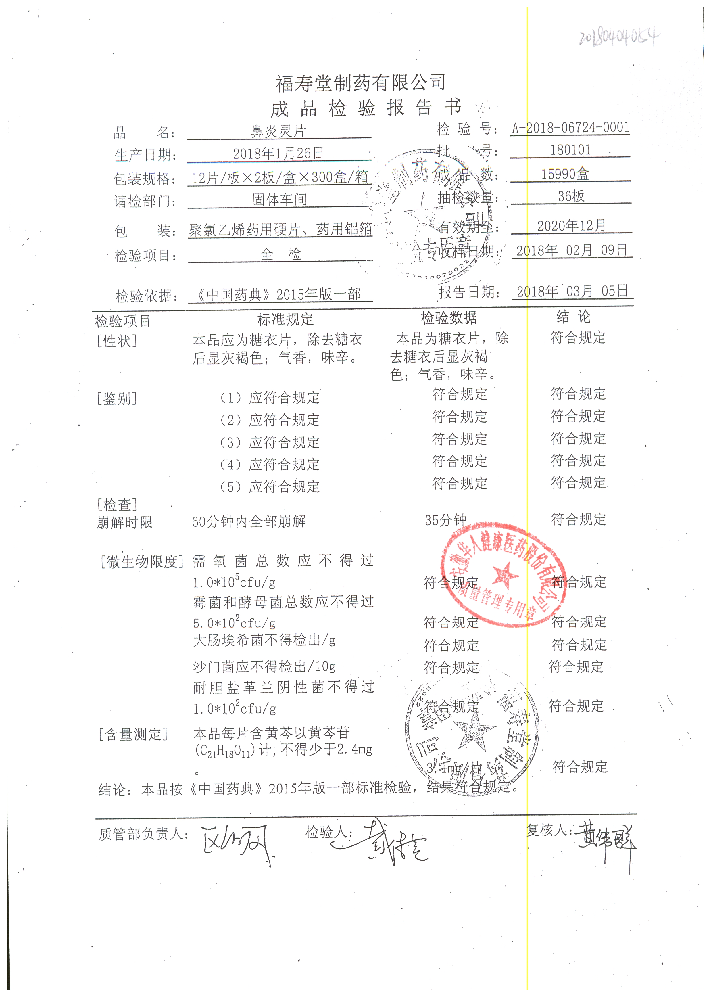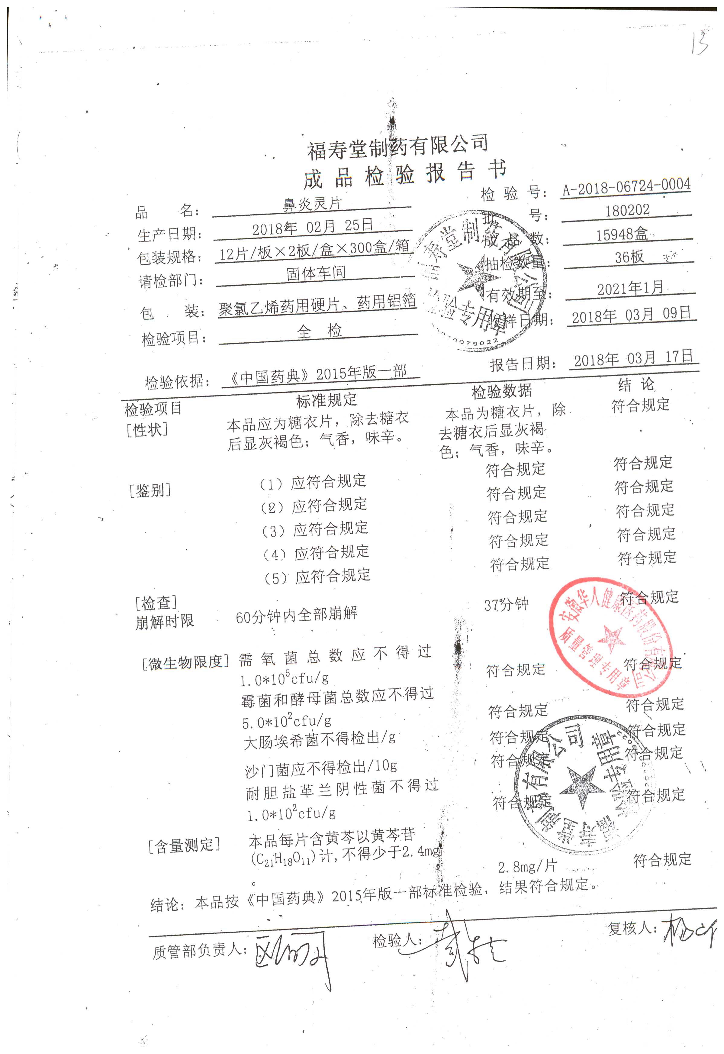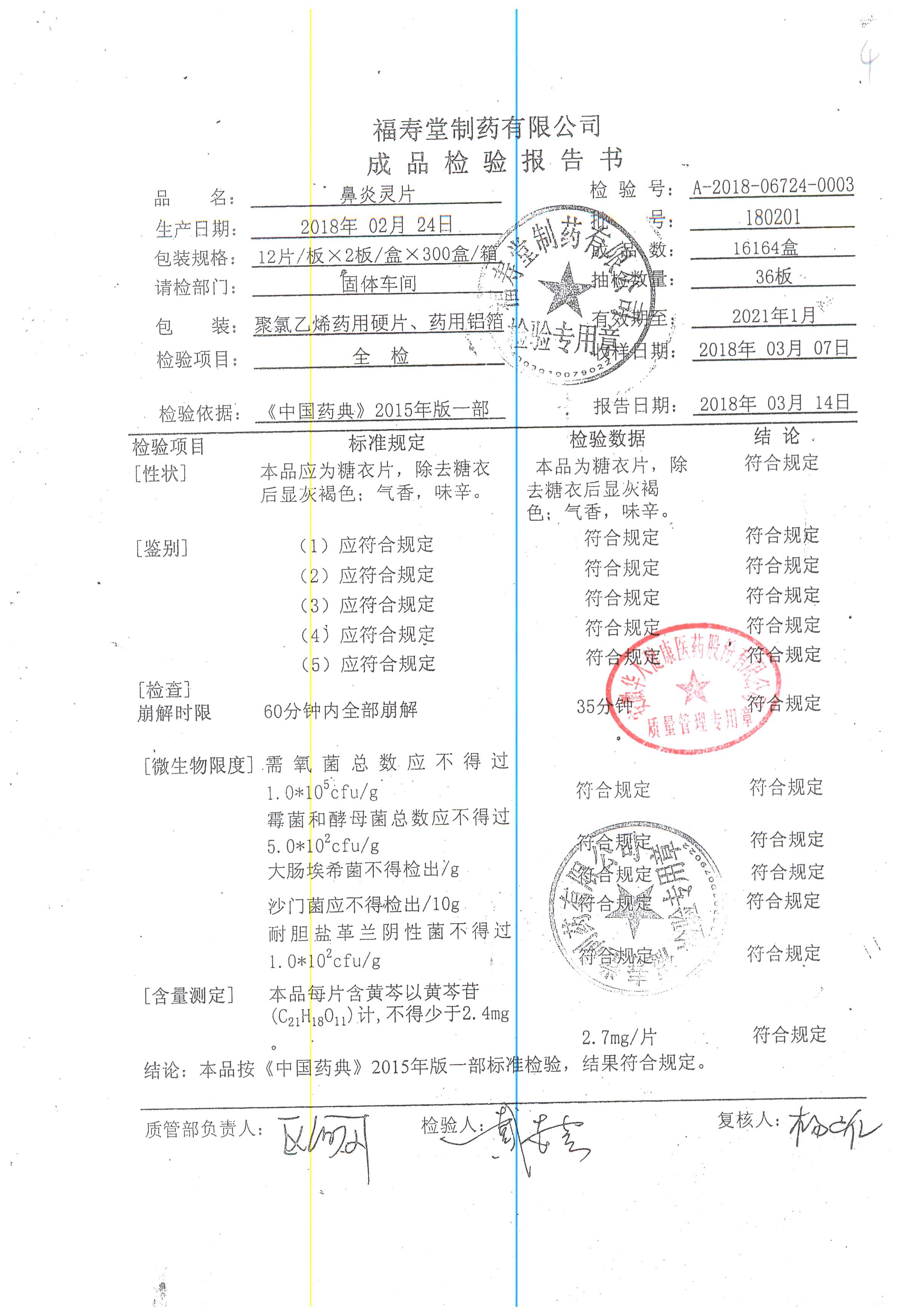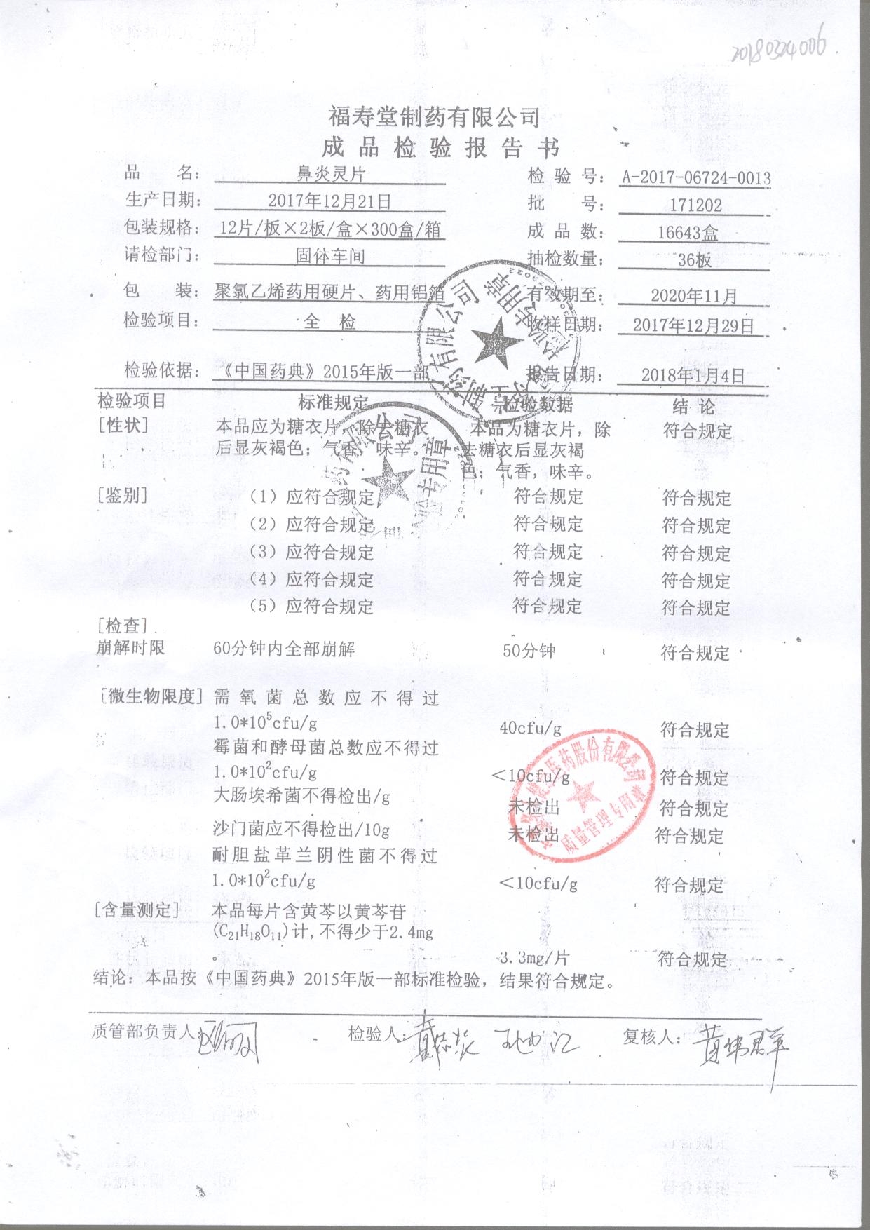 名稱 規(guī)格 批號 藥檢報告