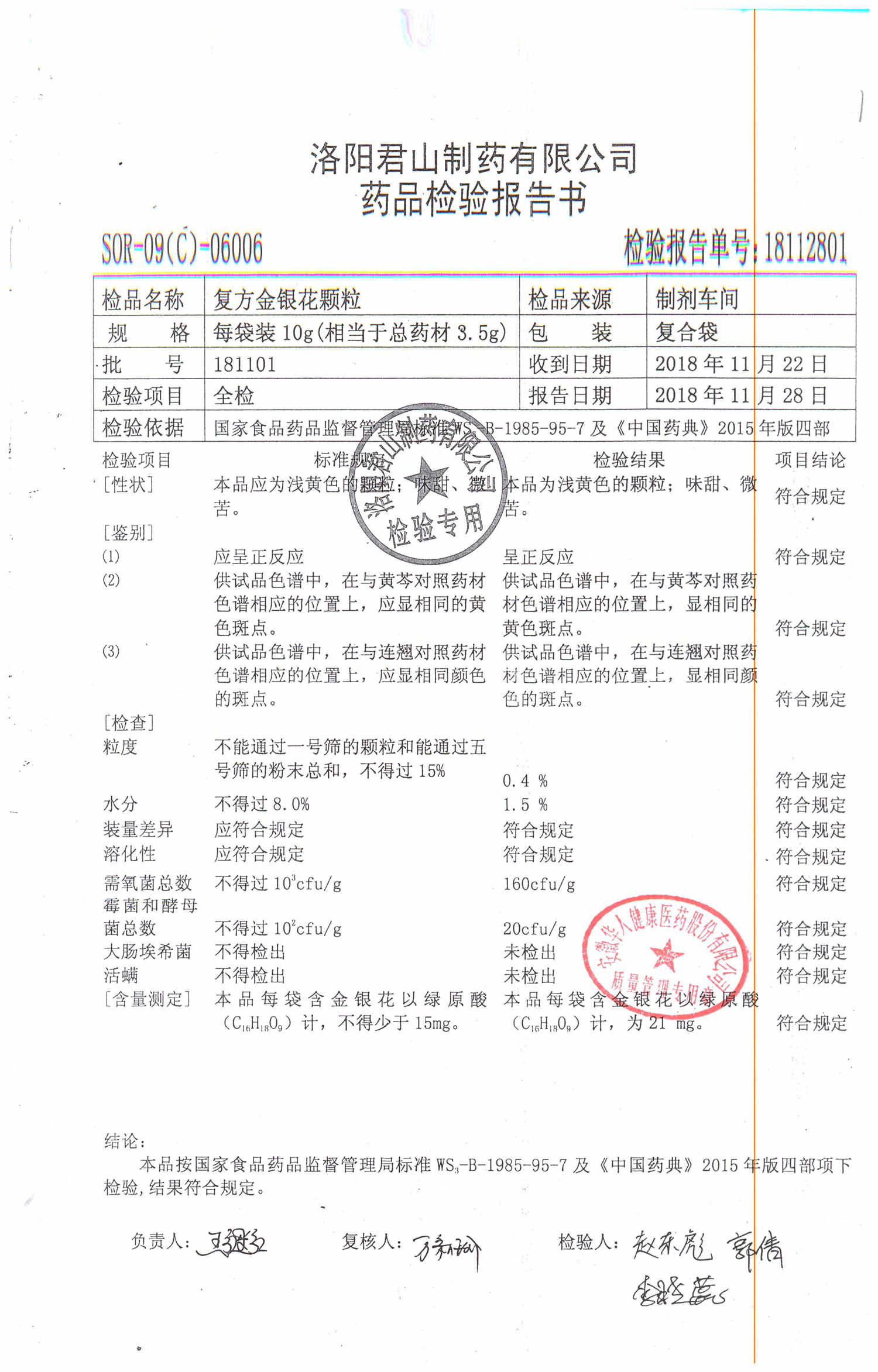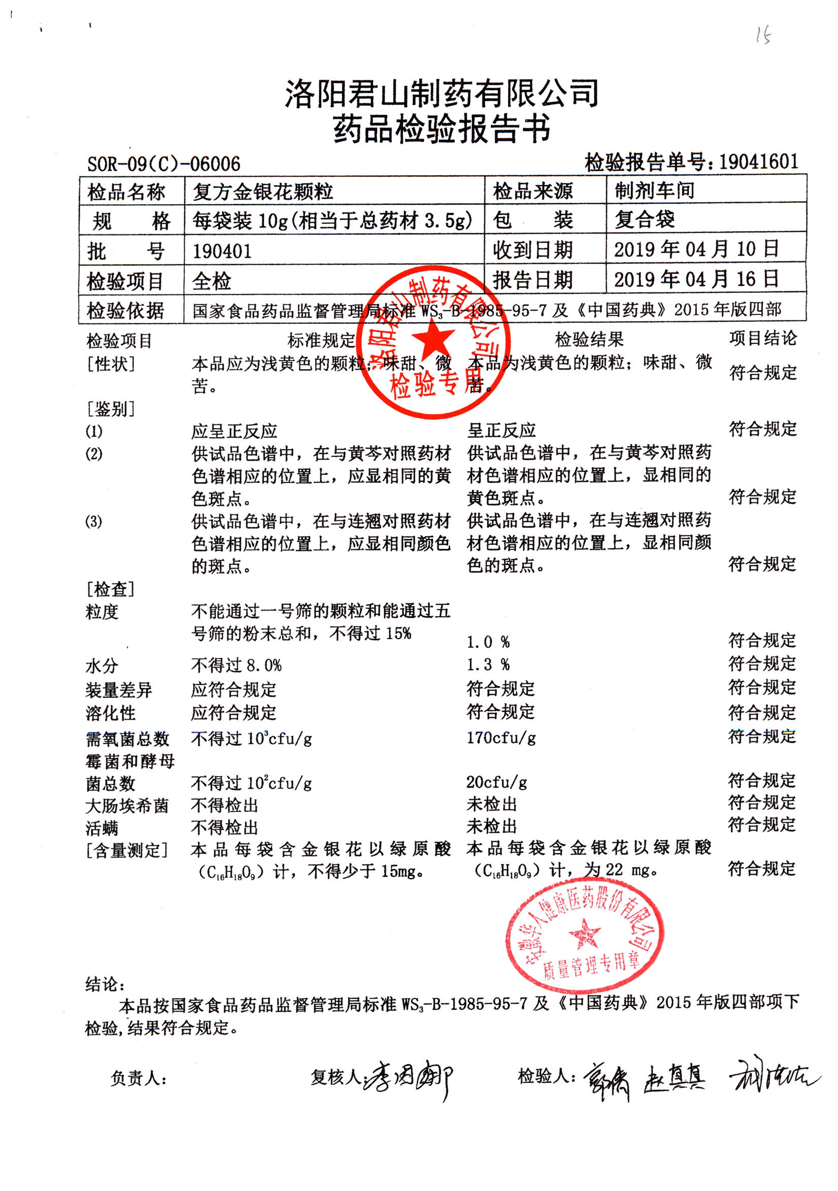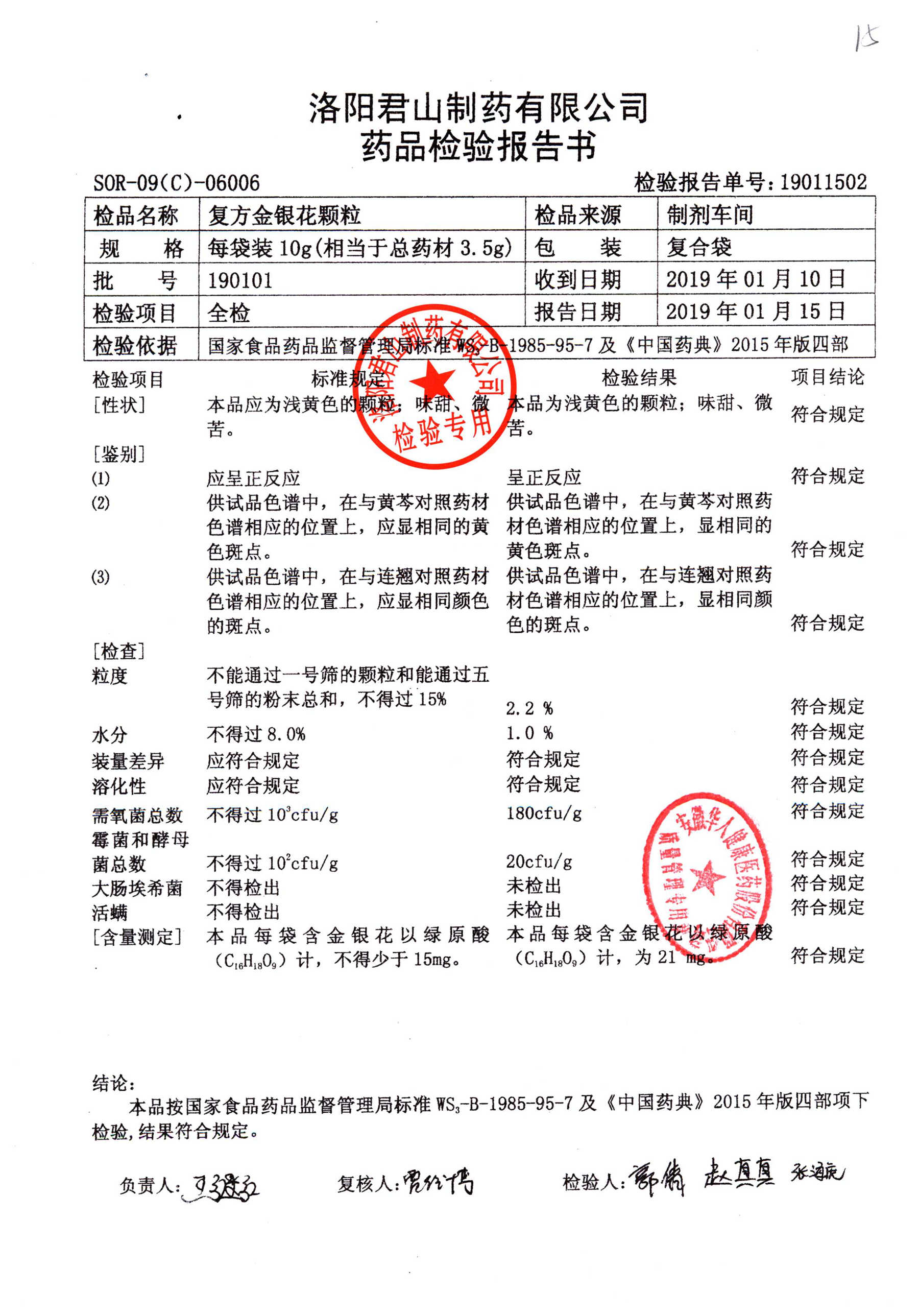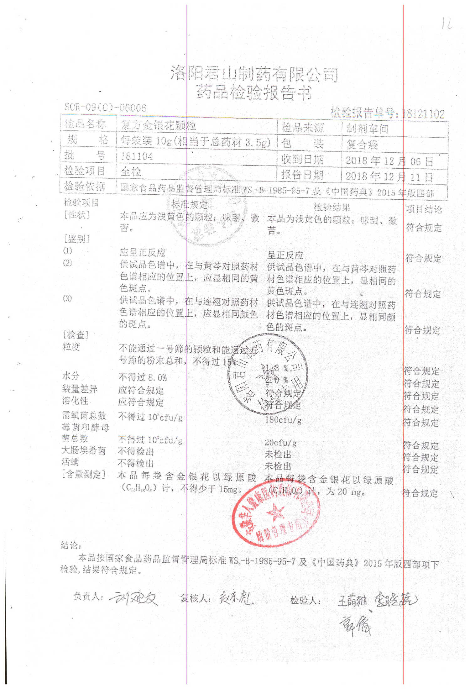 | 復(fù)方金銀花顆粒 | 10g | 190501 | 查看詳情 |