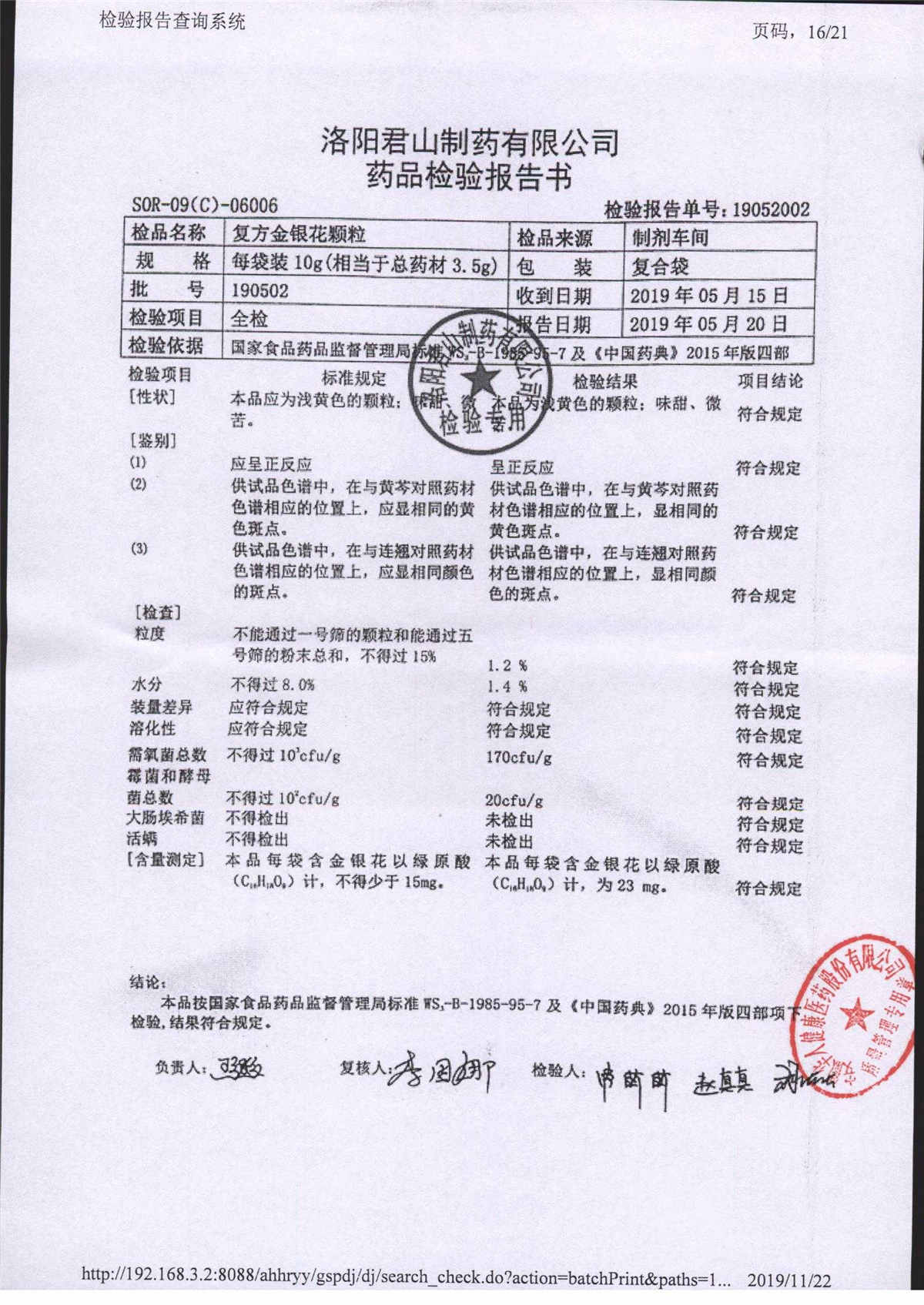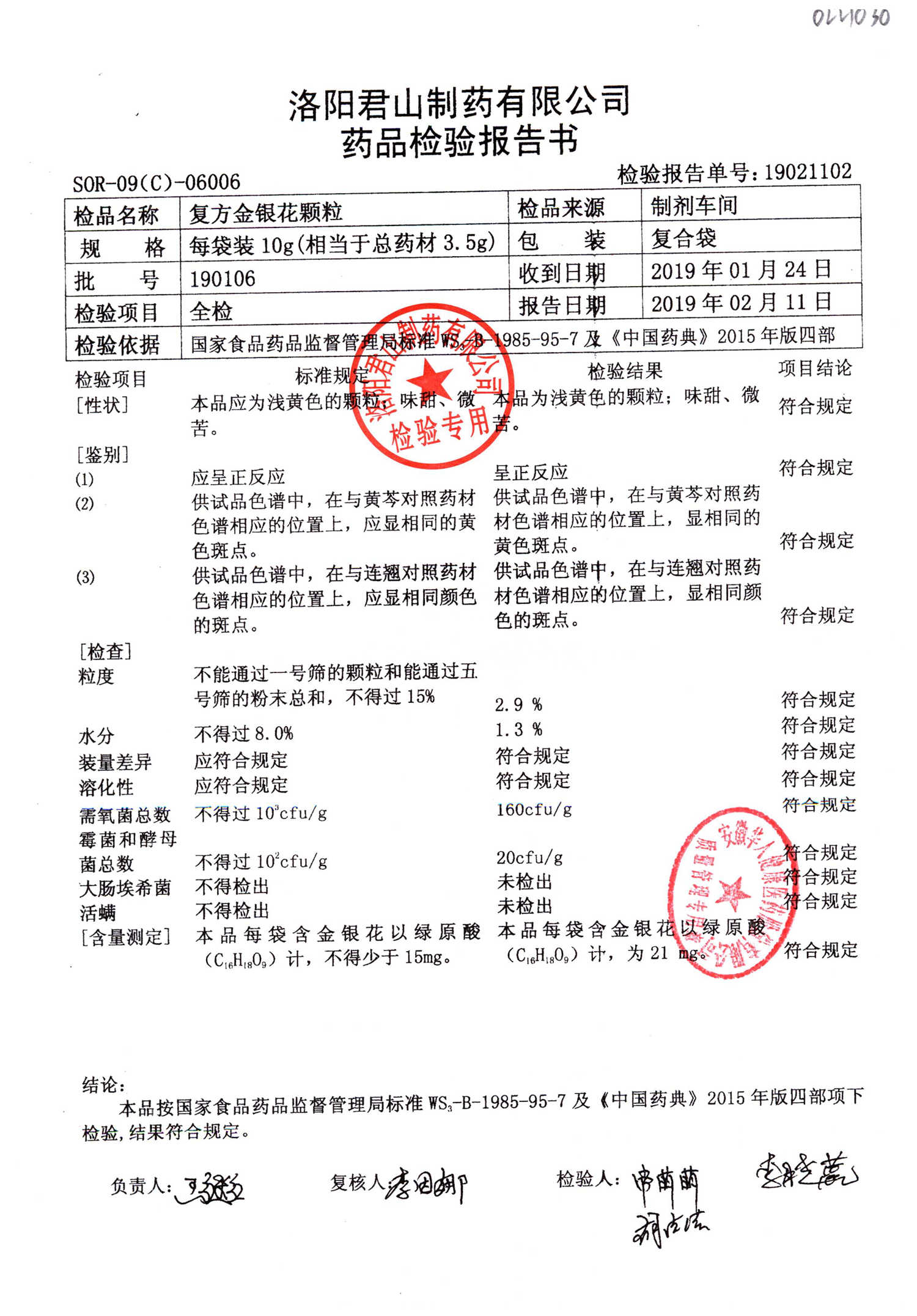 | 復(fù)方金銀花顆粒 | 10g | 190604 | 查看詳情 |