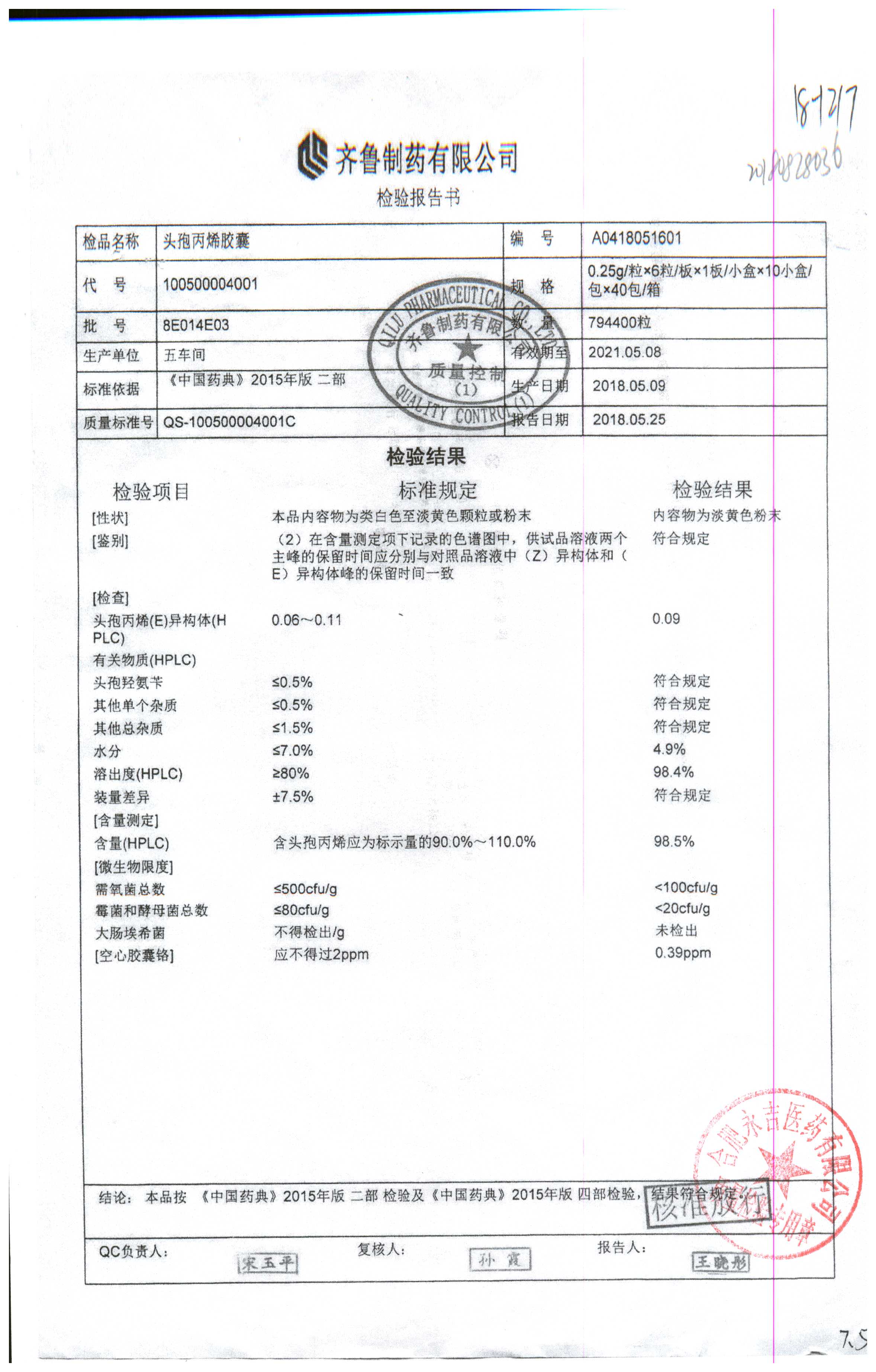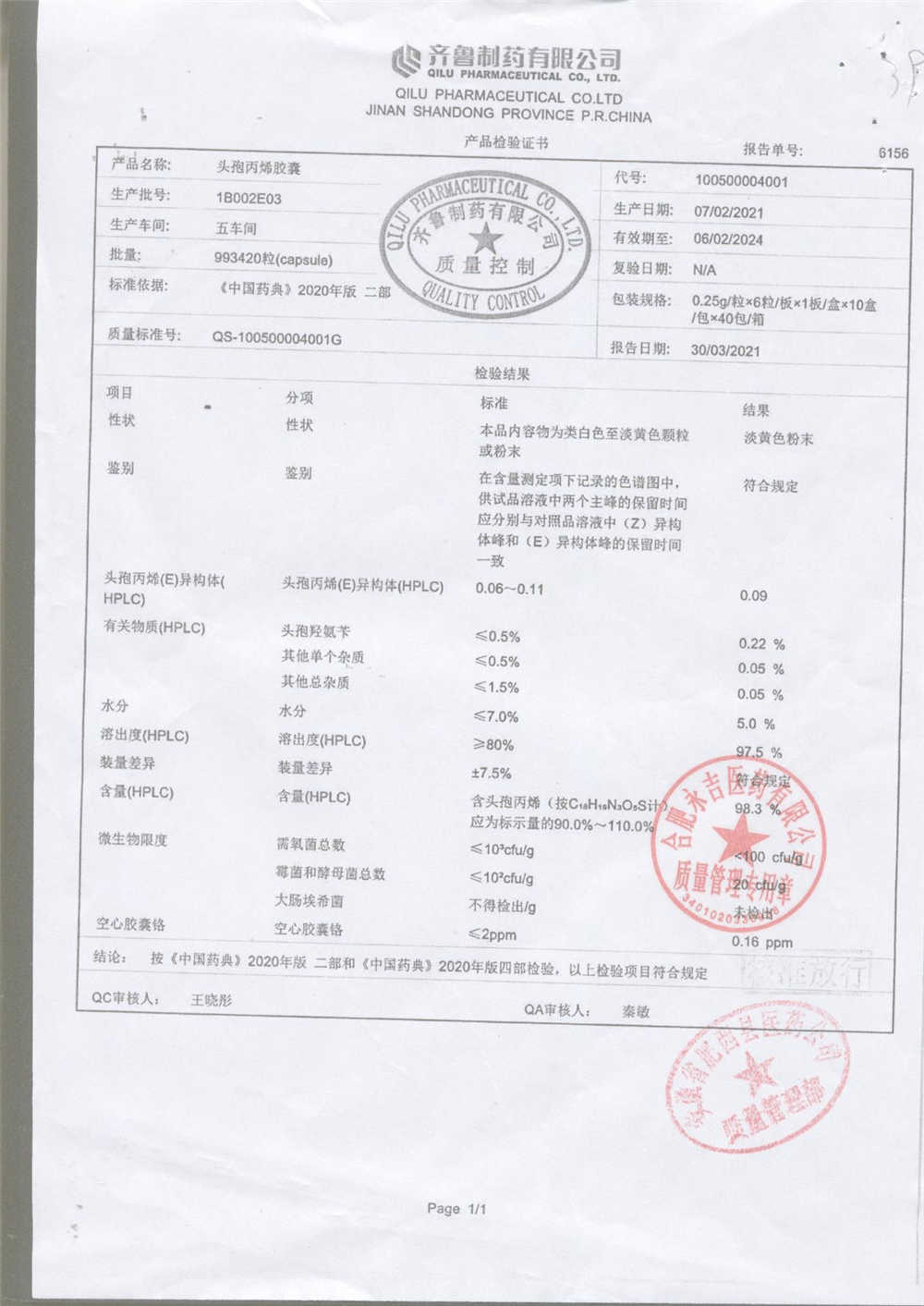 | 頭孢丙烯膠囊 | 0.25g*6s | 8G025E03 | 查看詳情 |