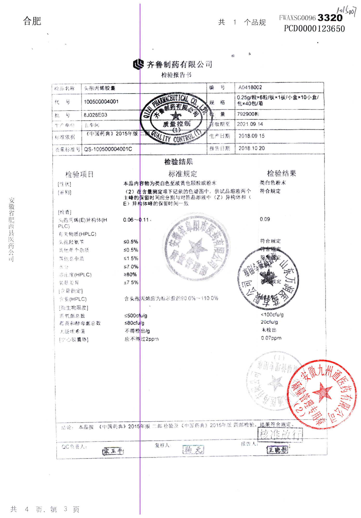 | 名稱 | 規(guī)格 | 批號(hào) | 藥檢報(bào)告 |