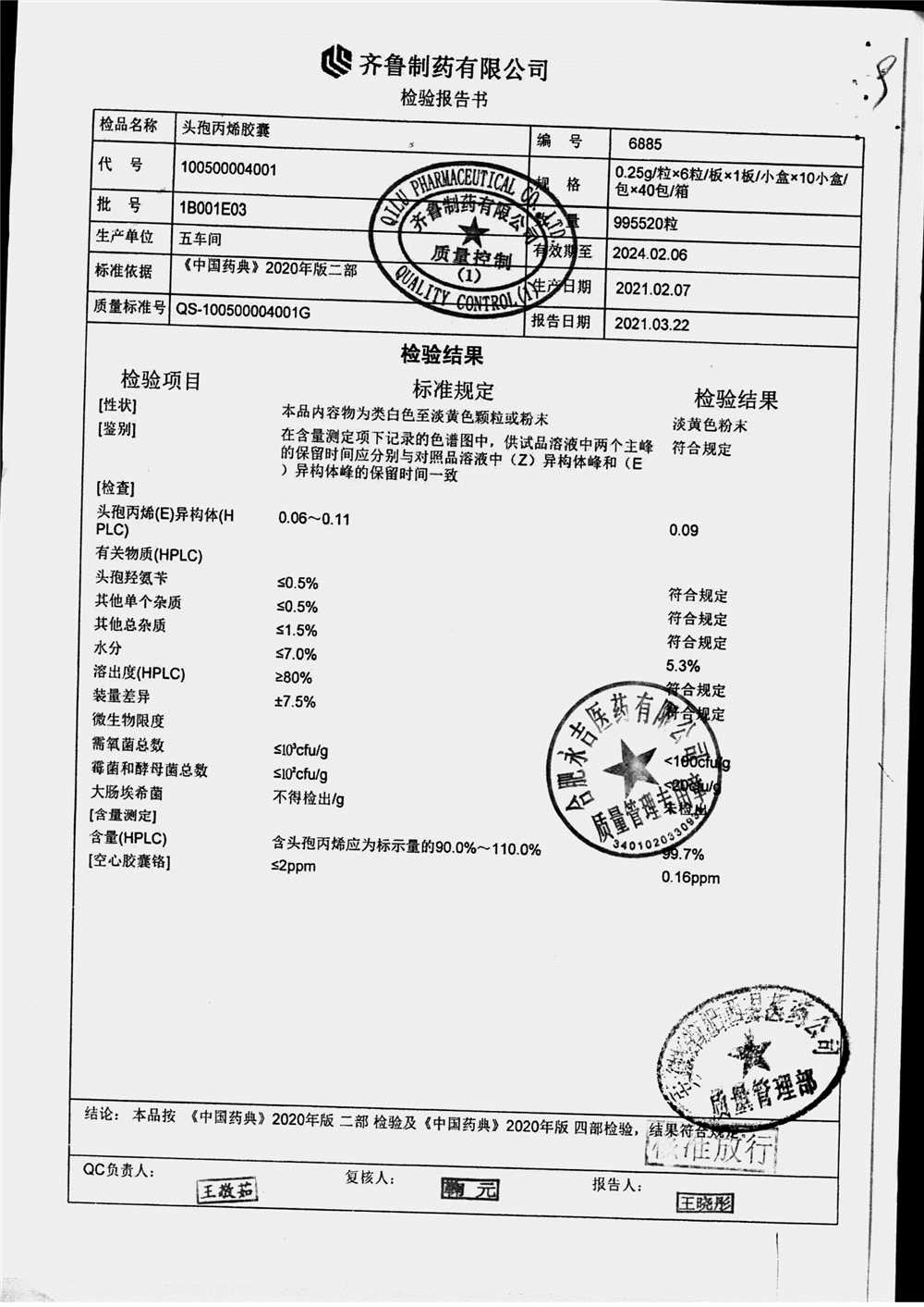 | 頭孢丙烯膠囊 | 0.25g*6s | 8F021E03 | 查看詳情 |