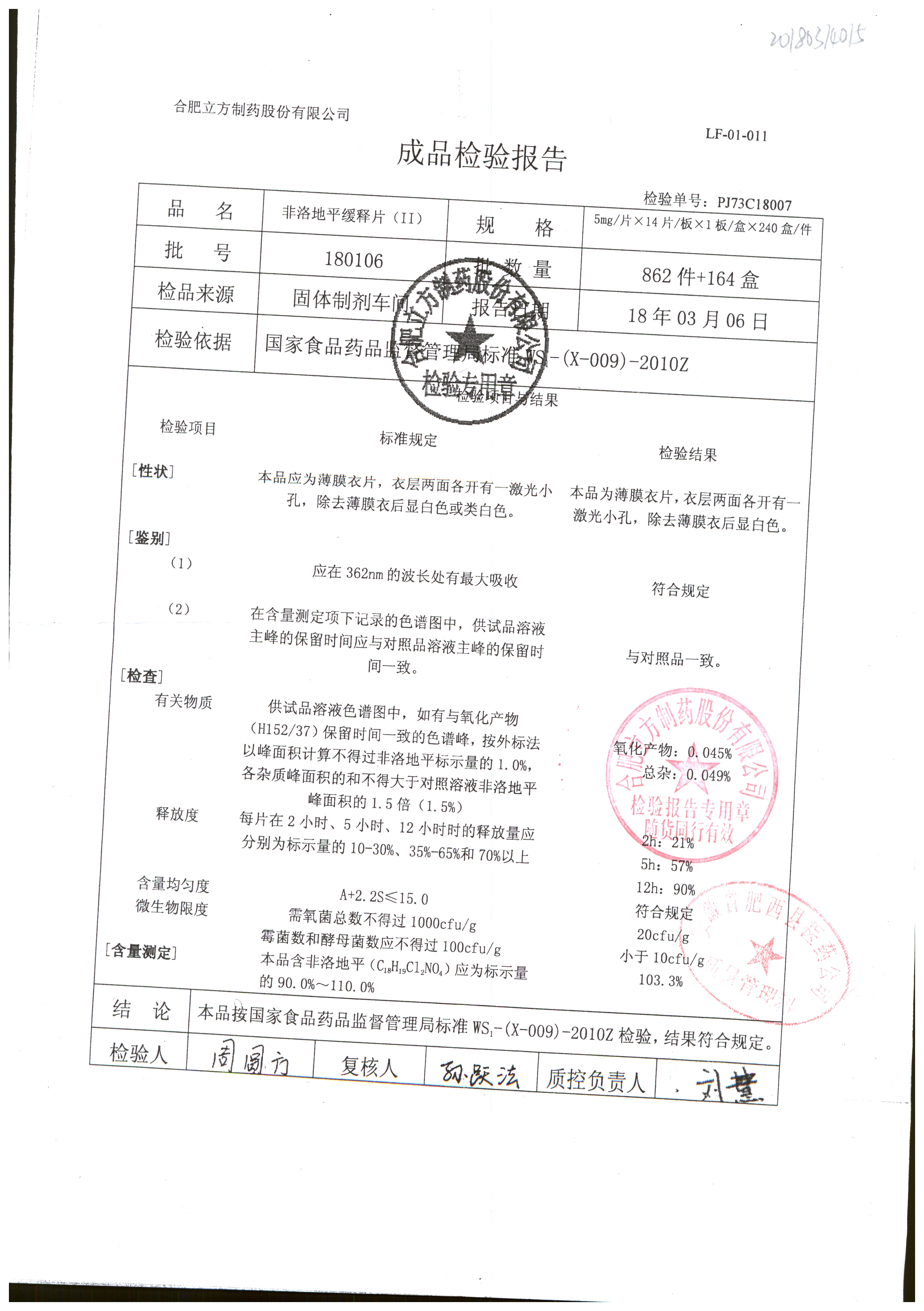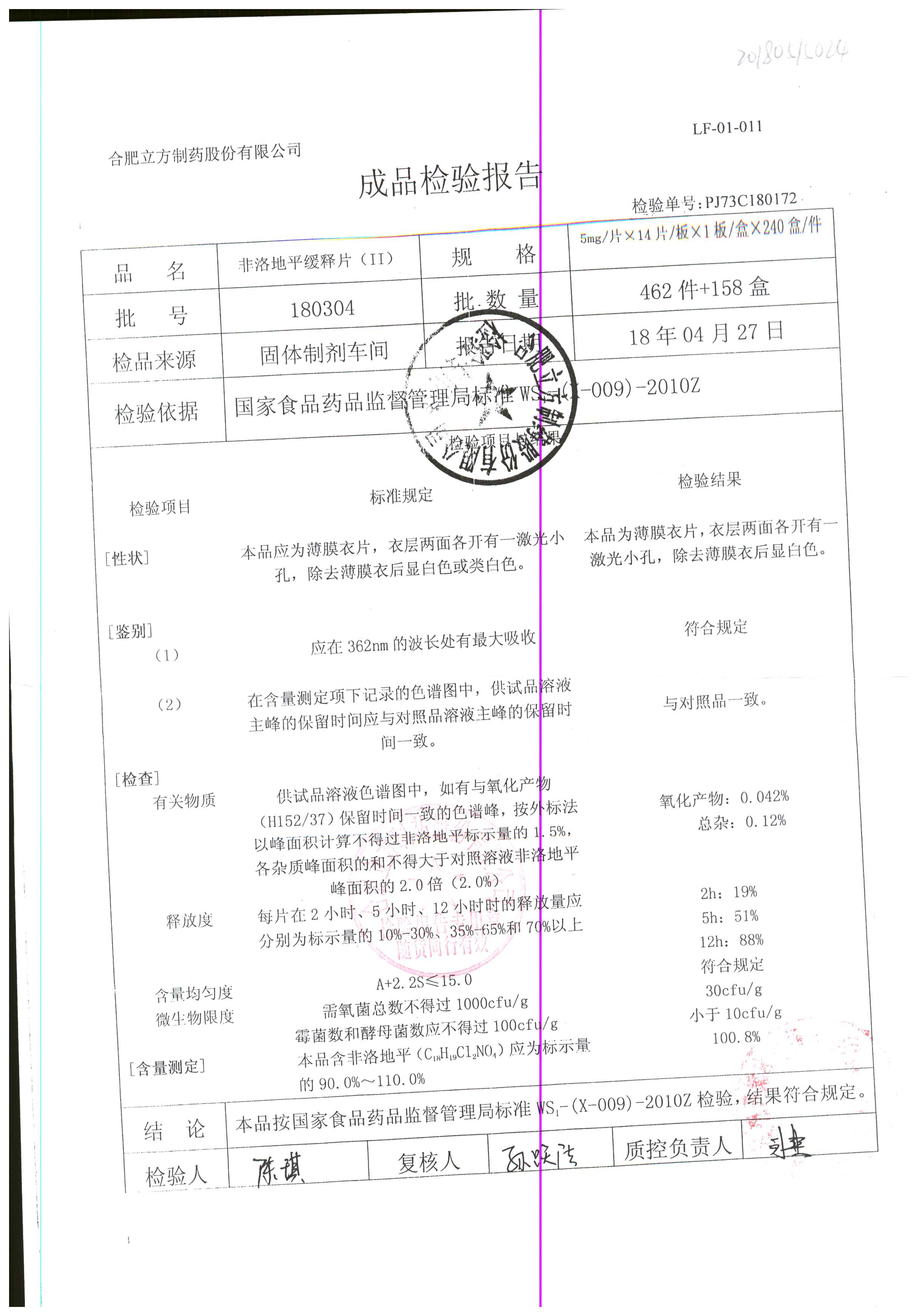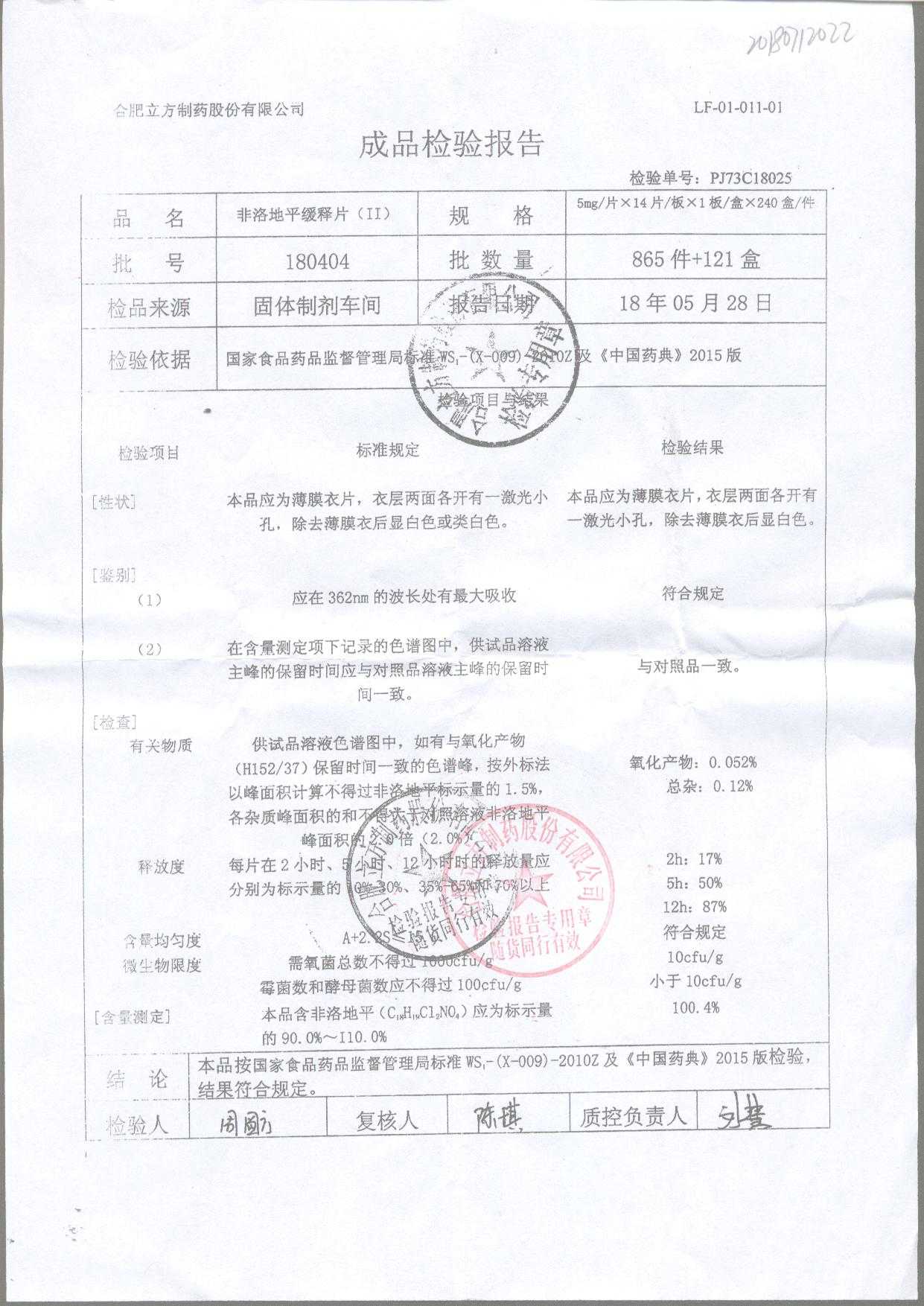 | 非洛地平緩釋片 | 5mg*14s | 180404 | 查看詳情 |