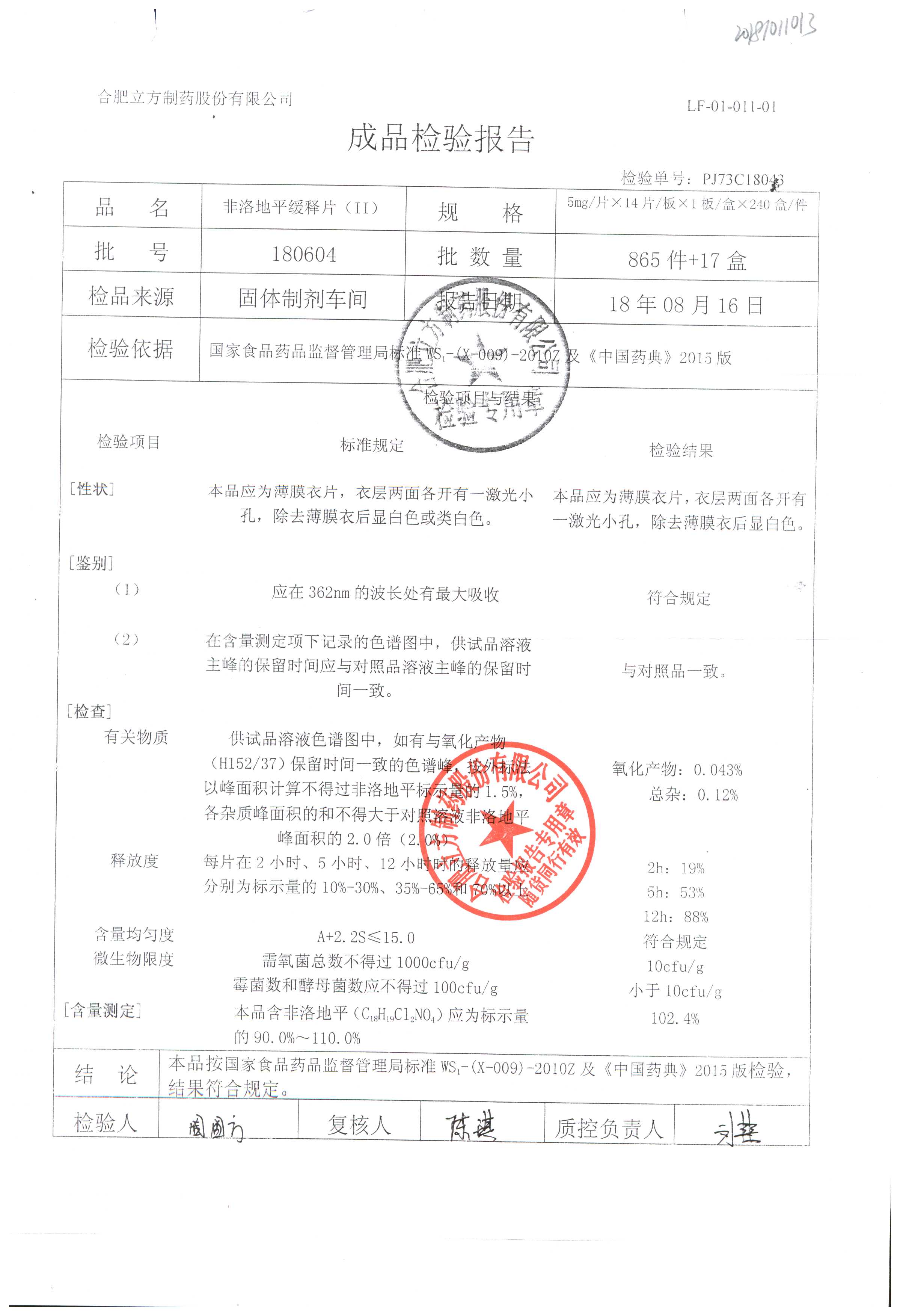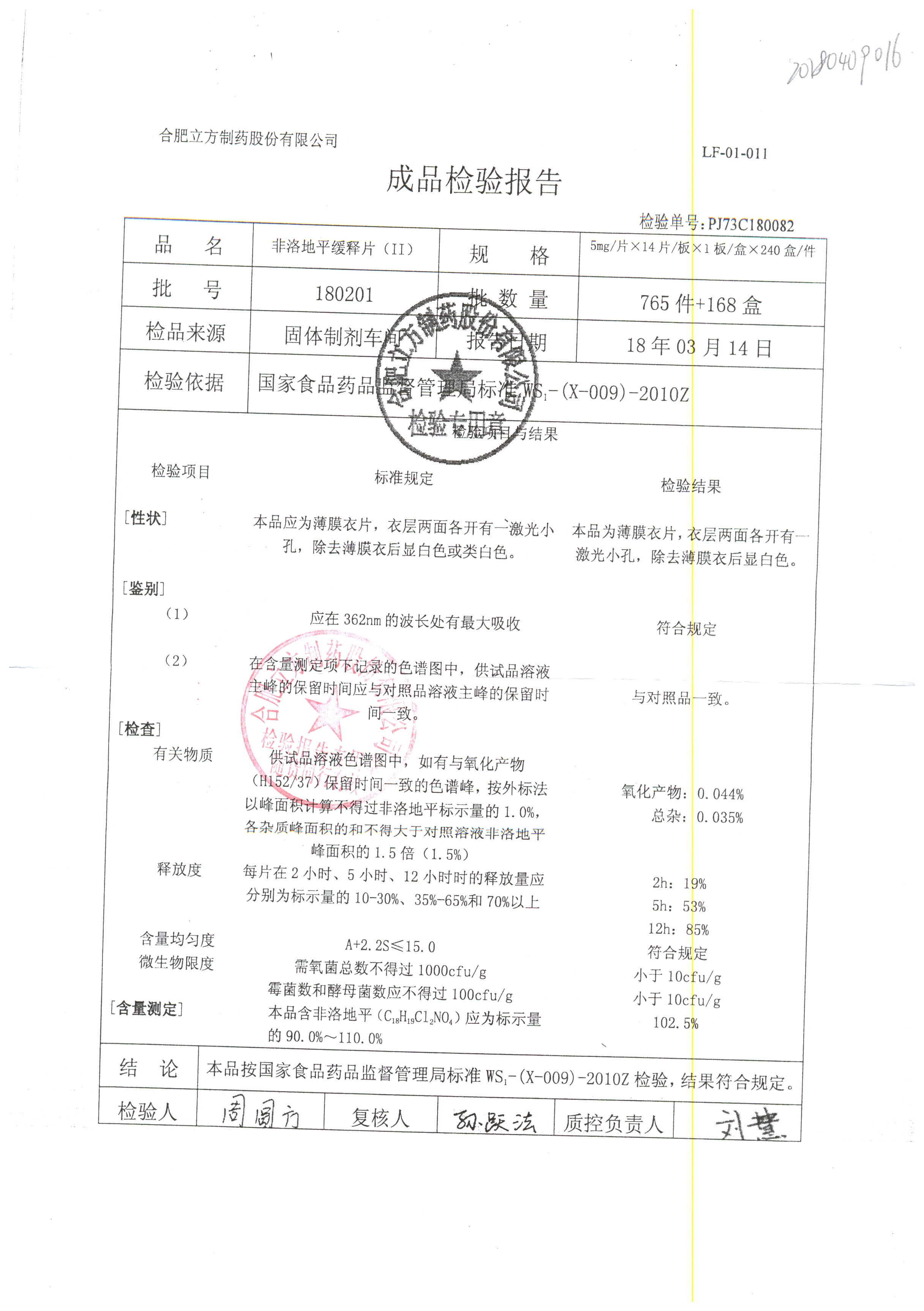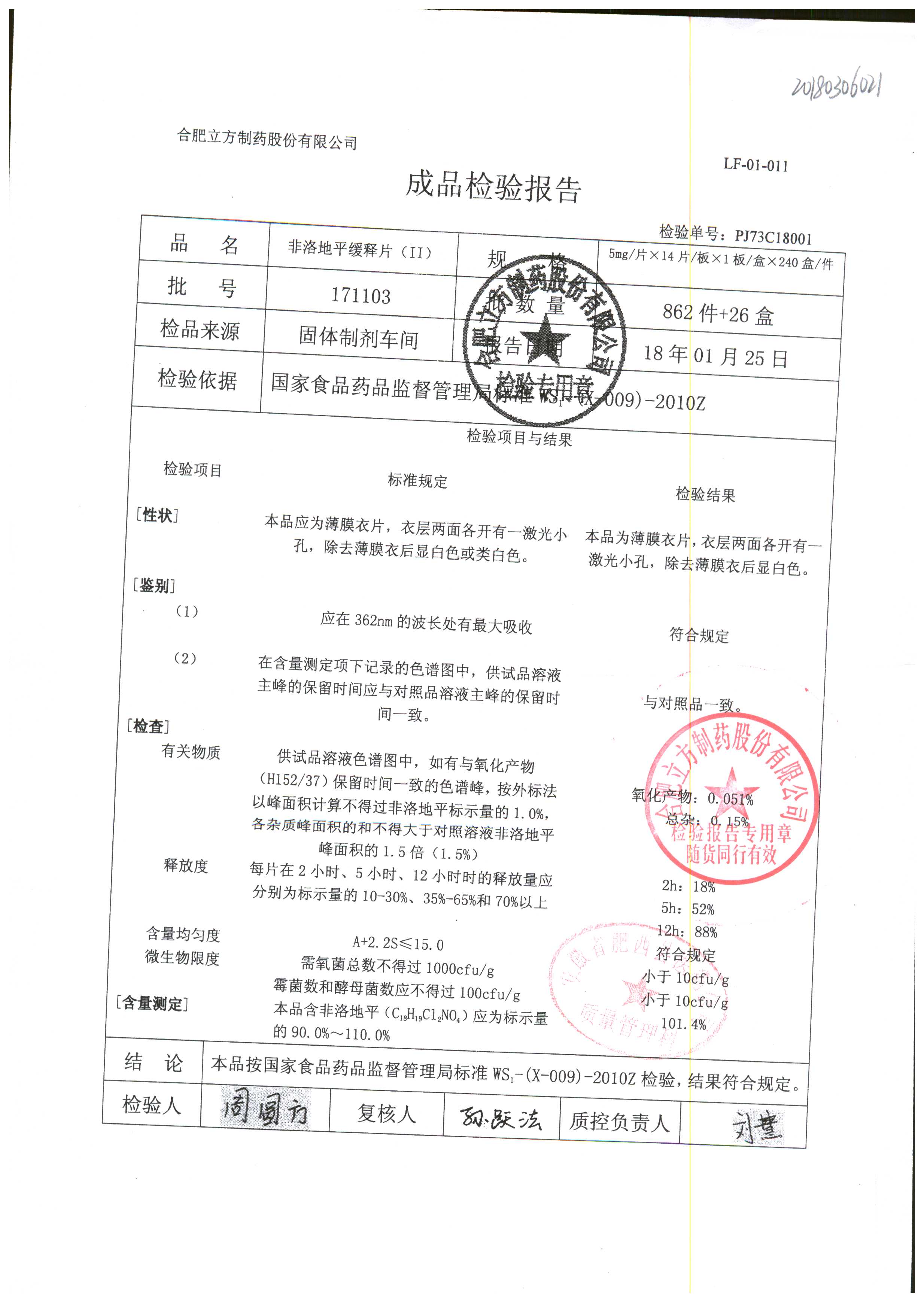 | 非洛地平緩釋片 | 5mg*14s | 180404 | 查看詳情 |
