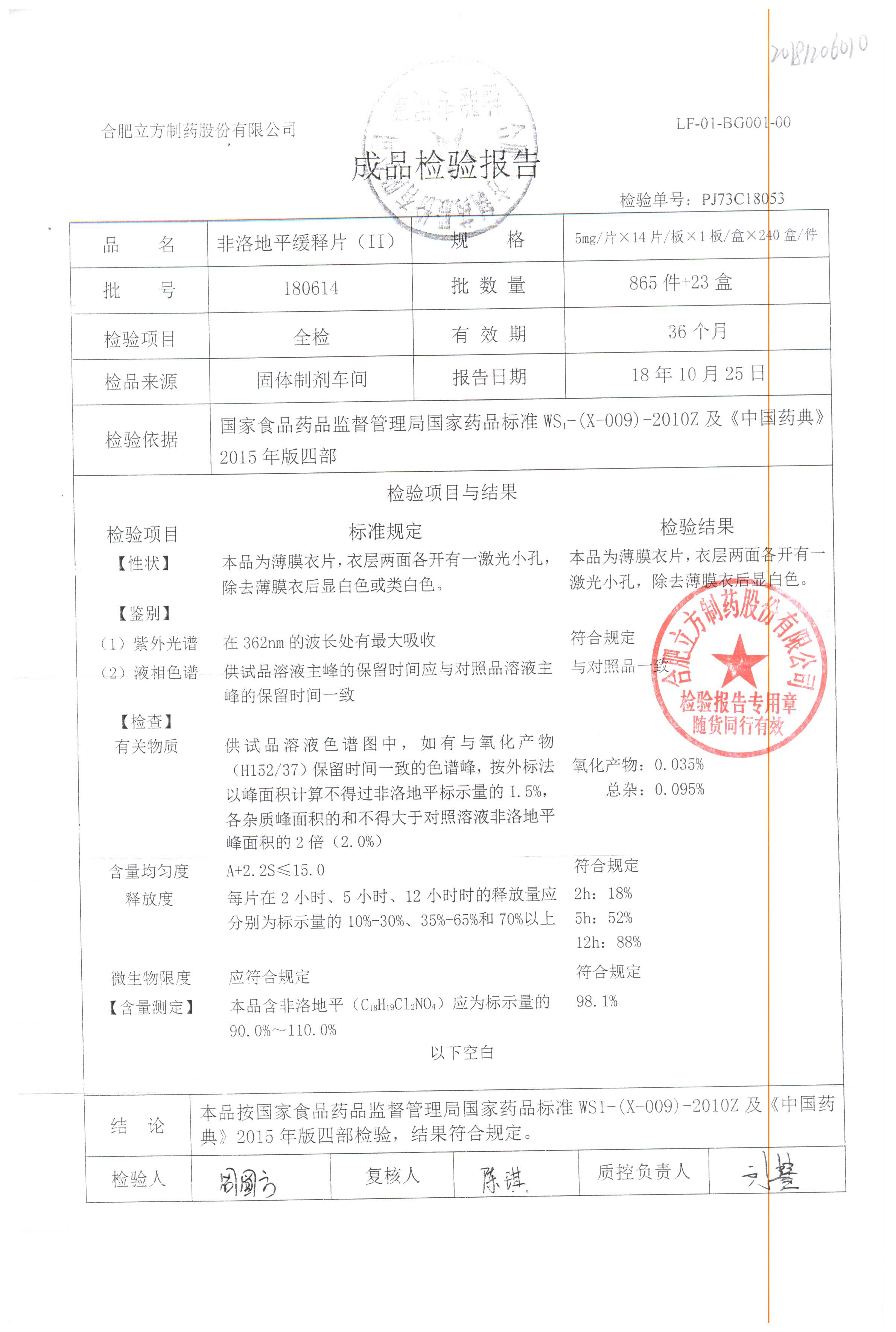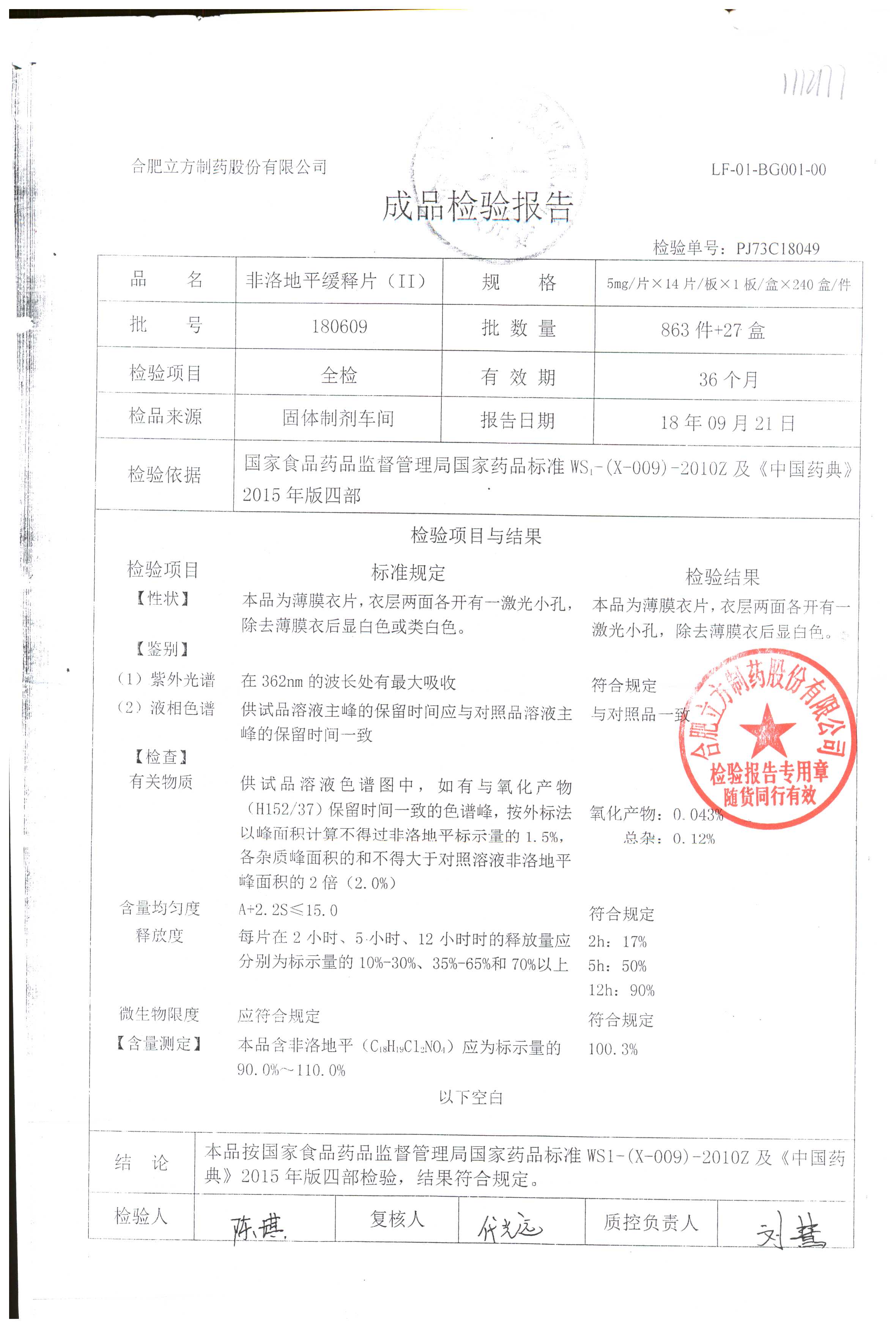 | 非洛地平緩釋片 | 5mg*14s | 180604 | 查看詳情 |