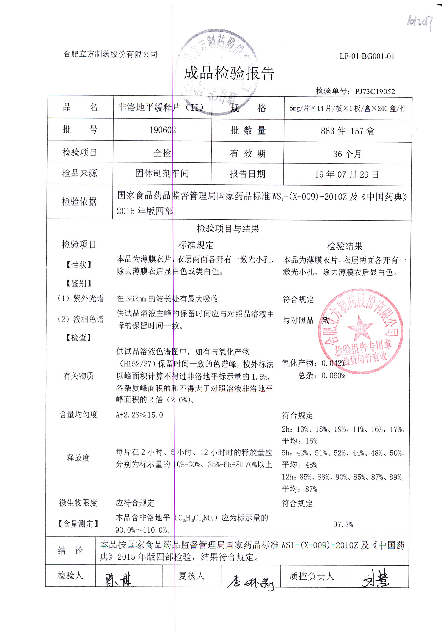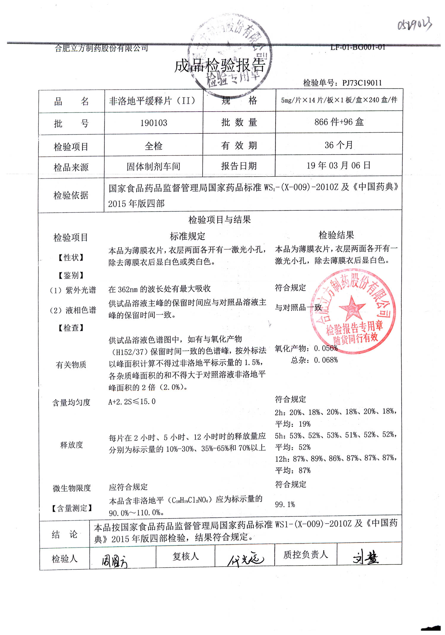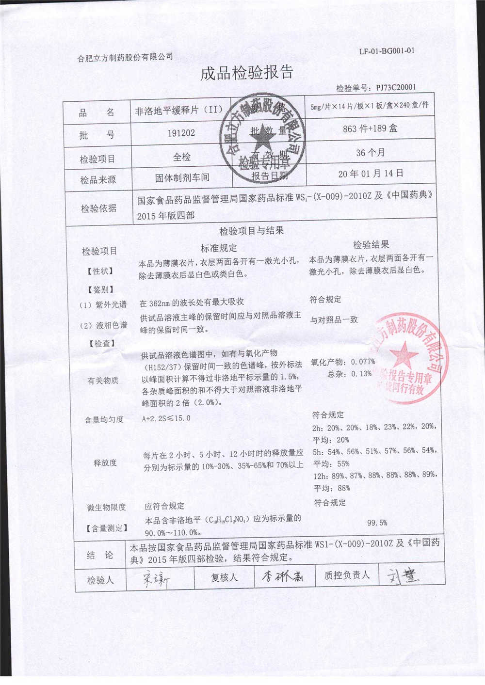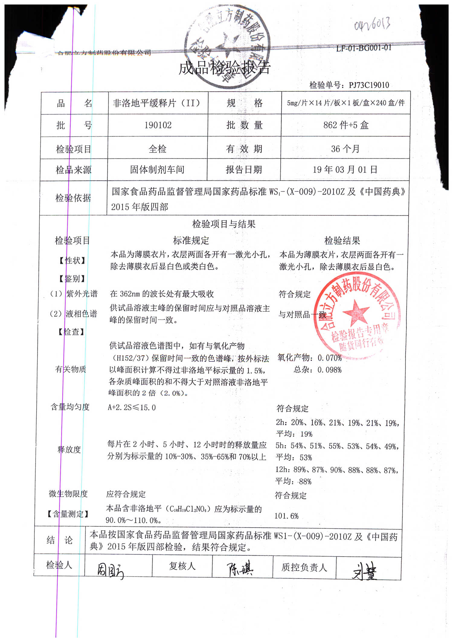 | 非洛地平緩釋片 | 5mg*14s | 190607 | 查看詳情 |