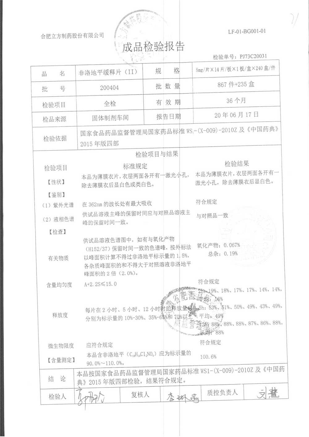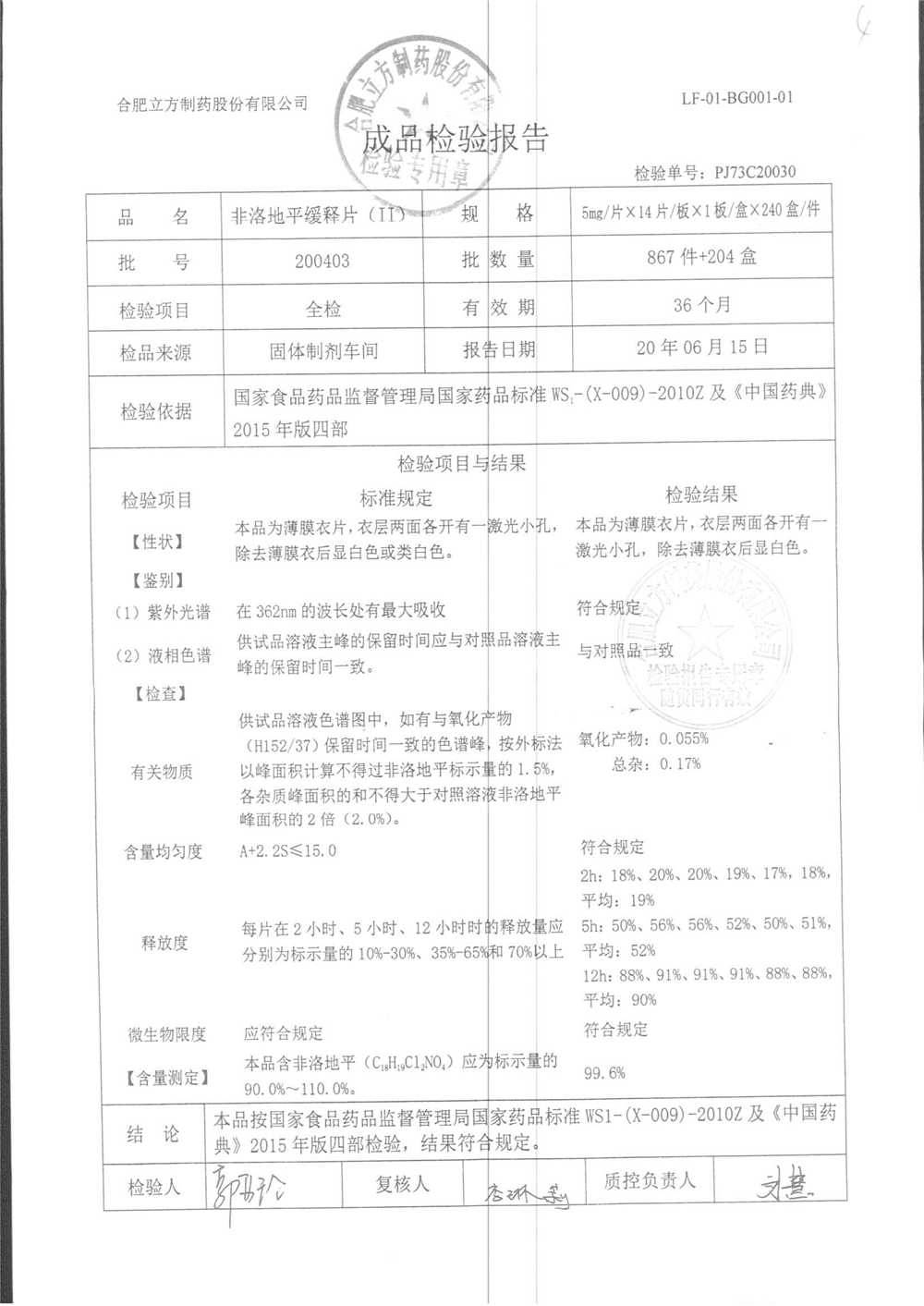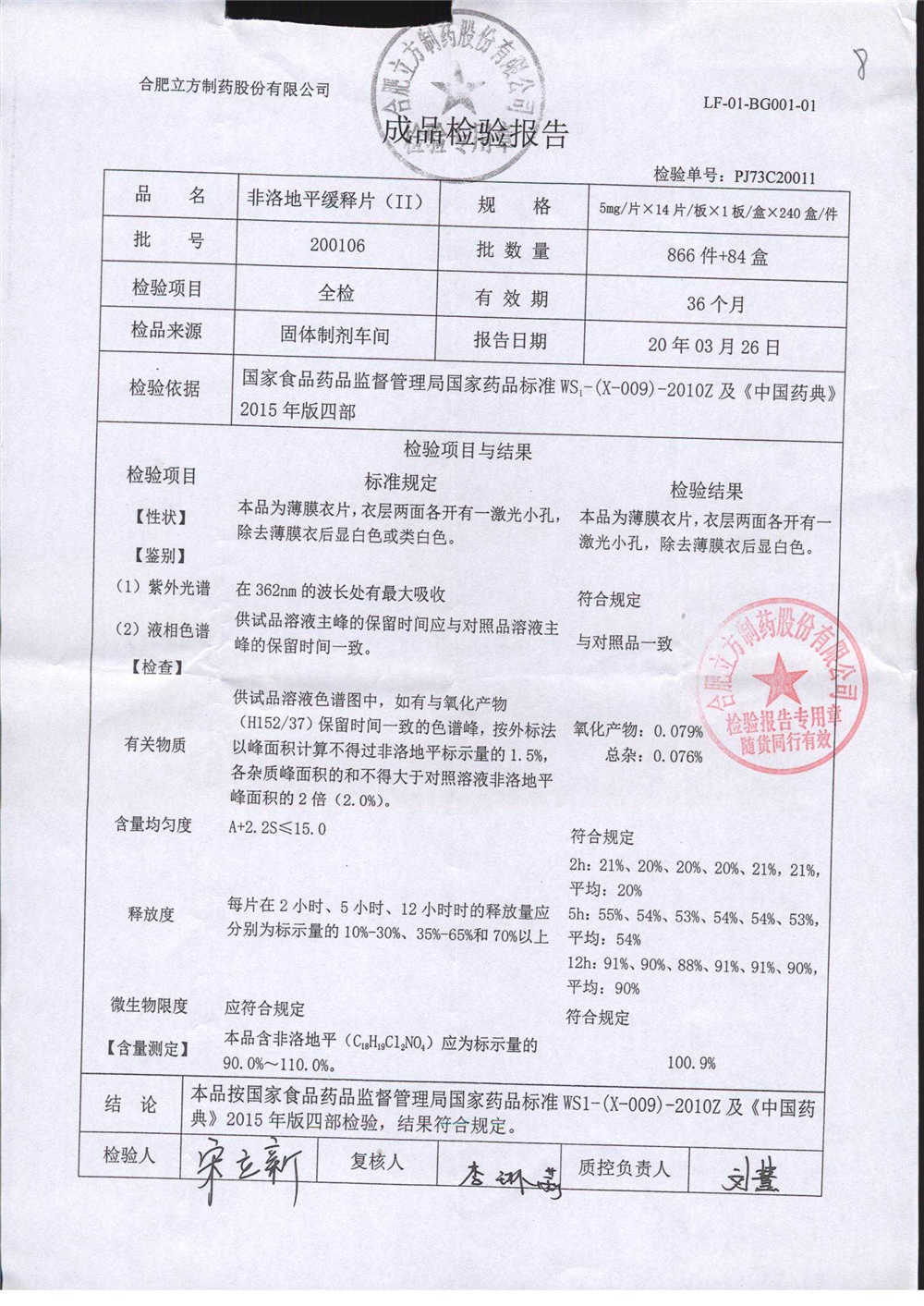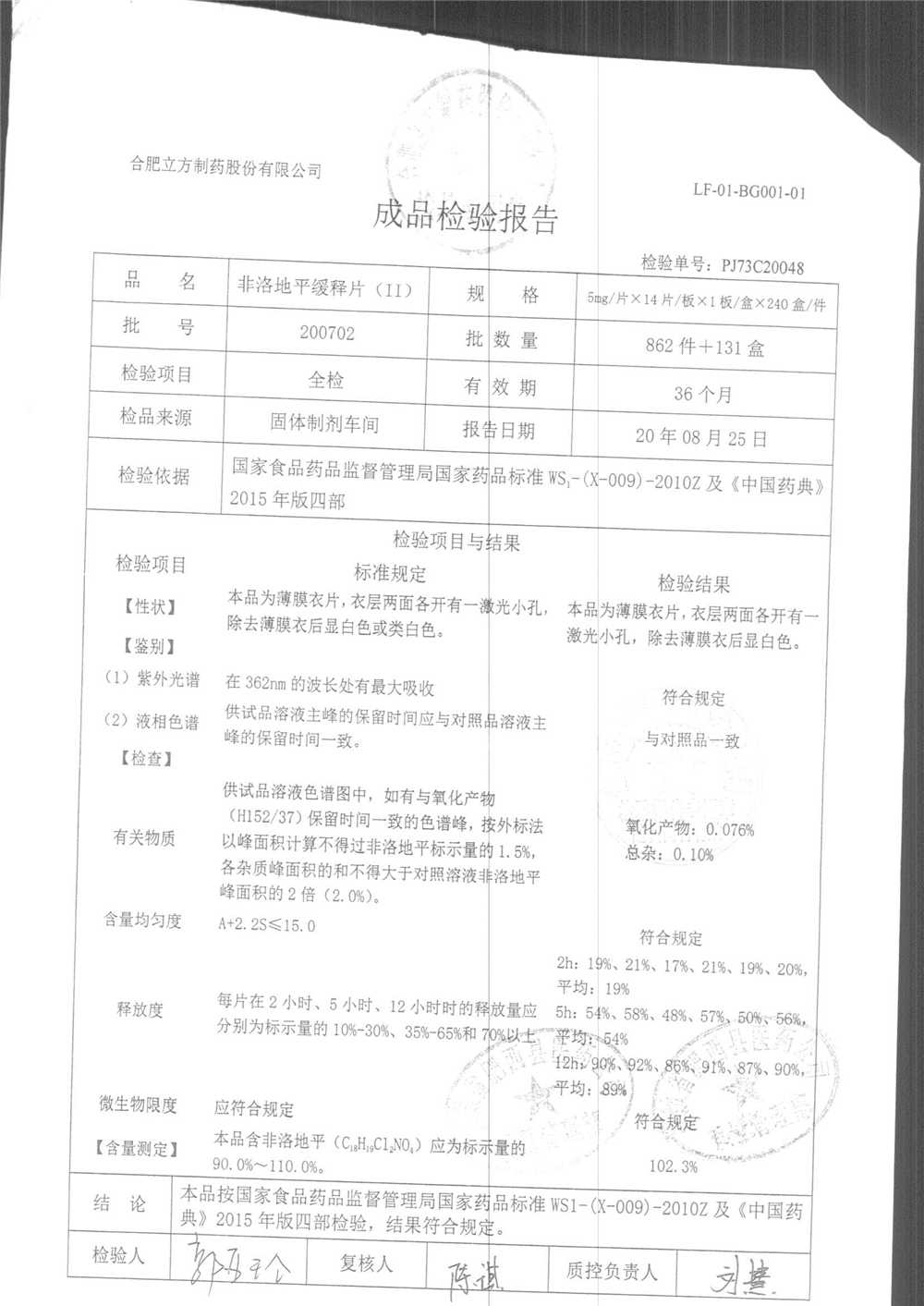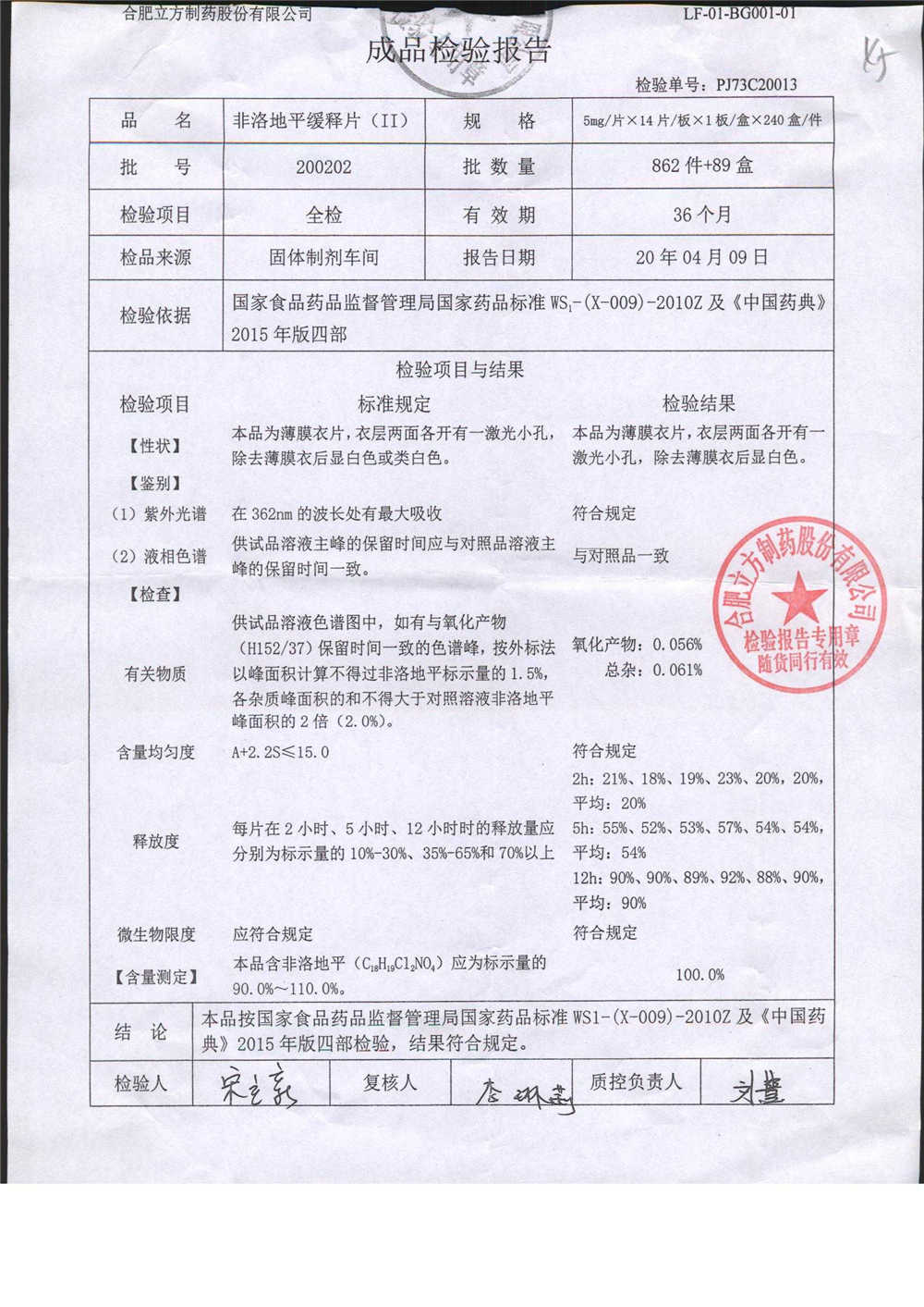 | 非洛地平緩釋片 | 5mg*14s | 200809 | 查看詳情 |