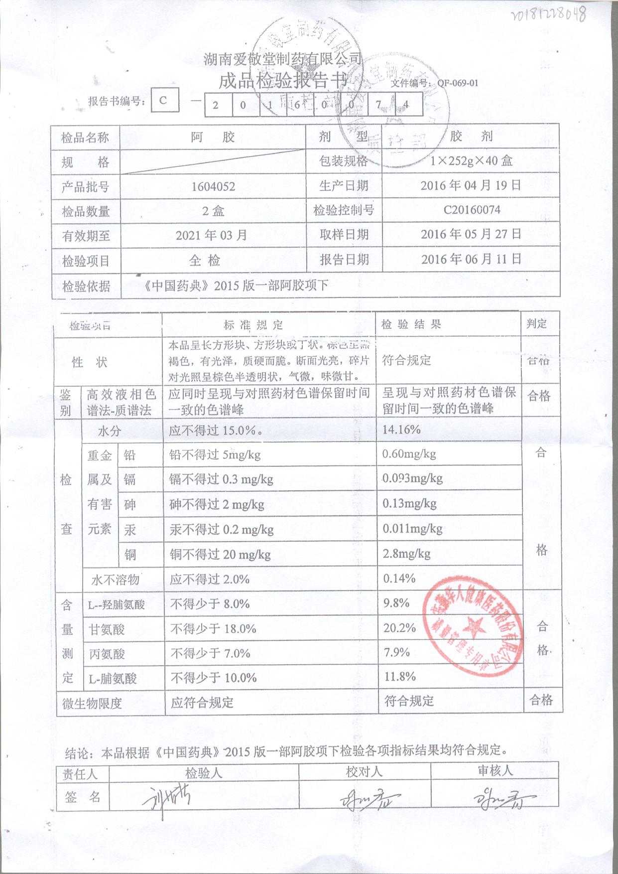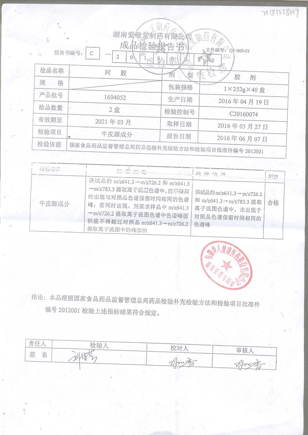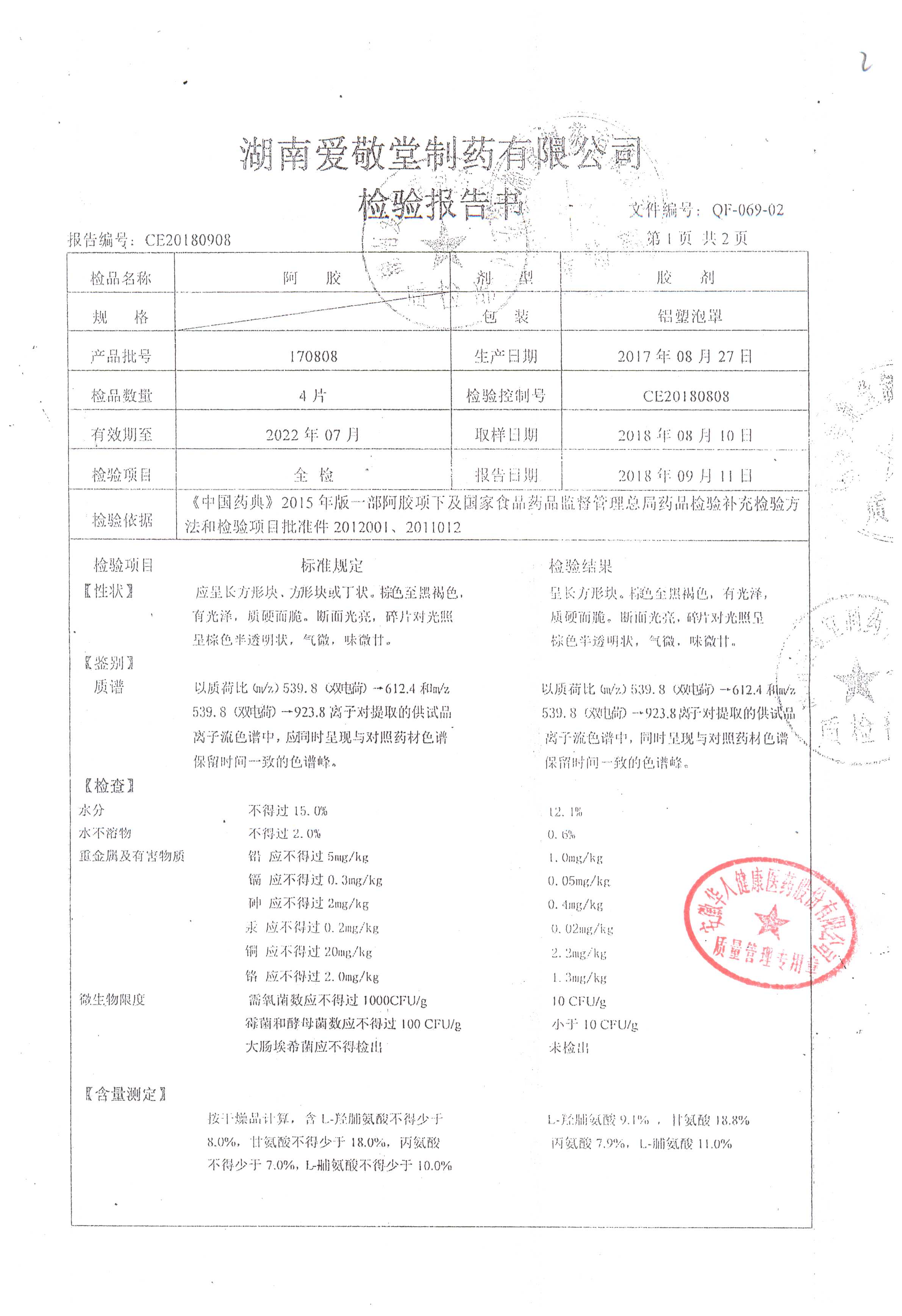| 阿膠 | 252g/盒 | 170808(2/2) | 查看詳情 |