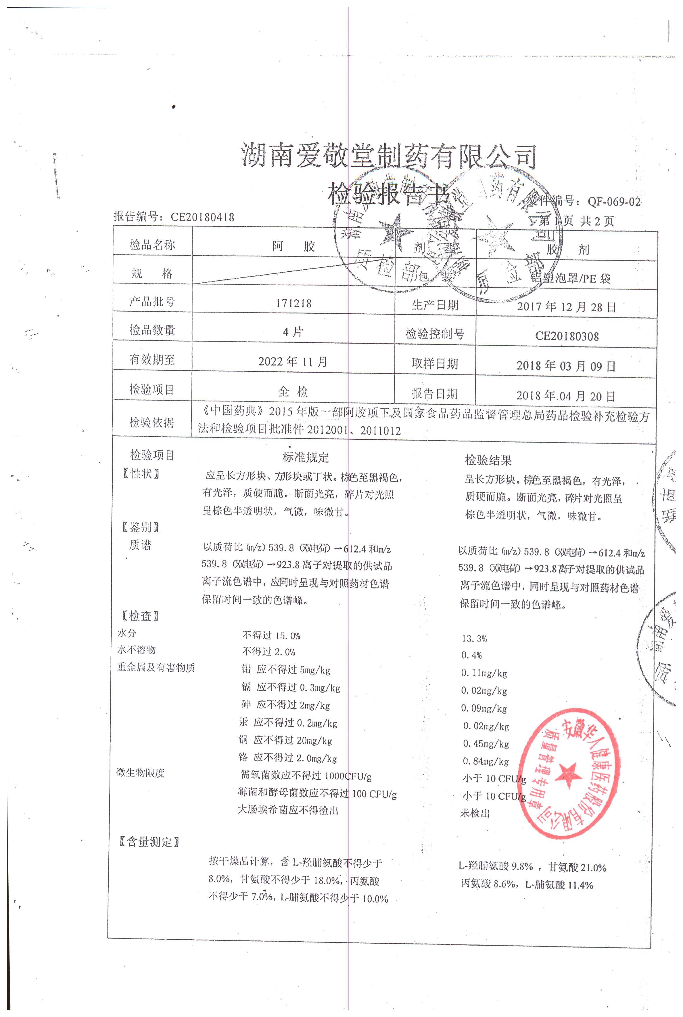 | 阿膠 | 252g/盒 | 171218(2/2) | 查看詳情 |