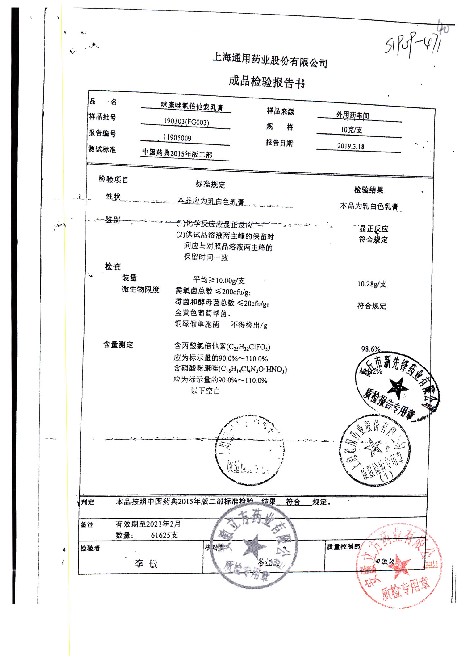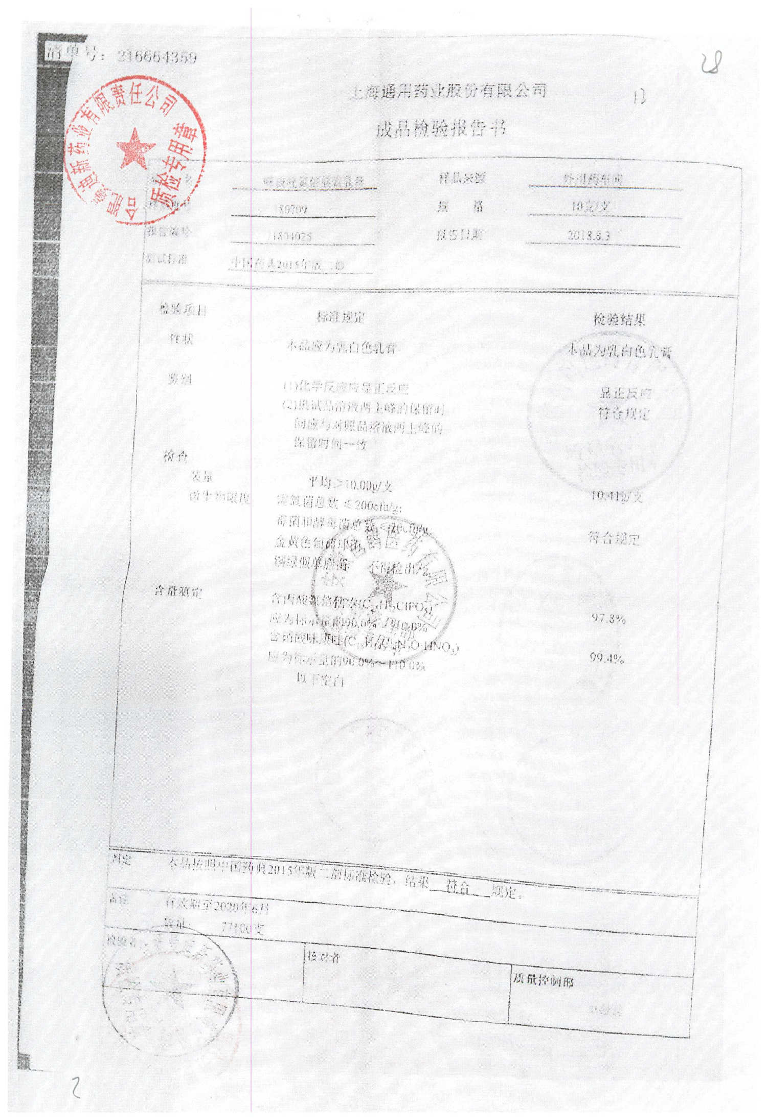 | 名稱 | 規(guī)格 | 批號 | 藥檢報告 |