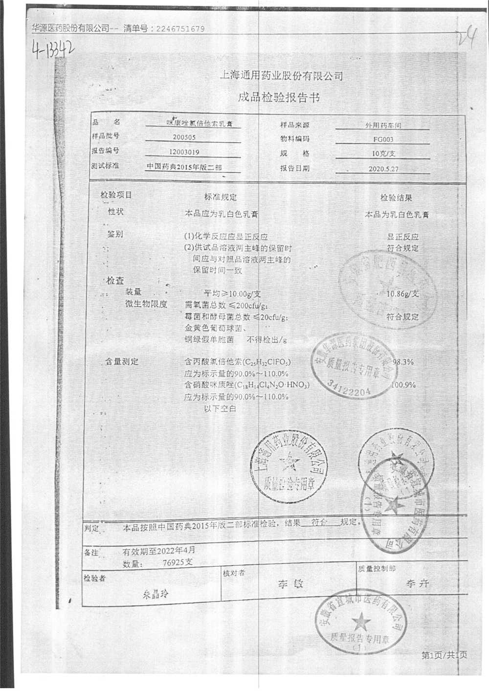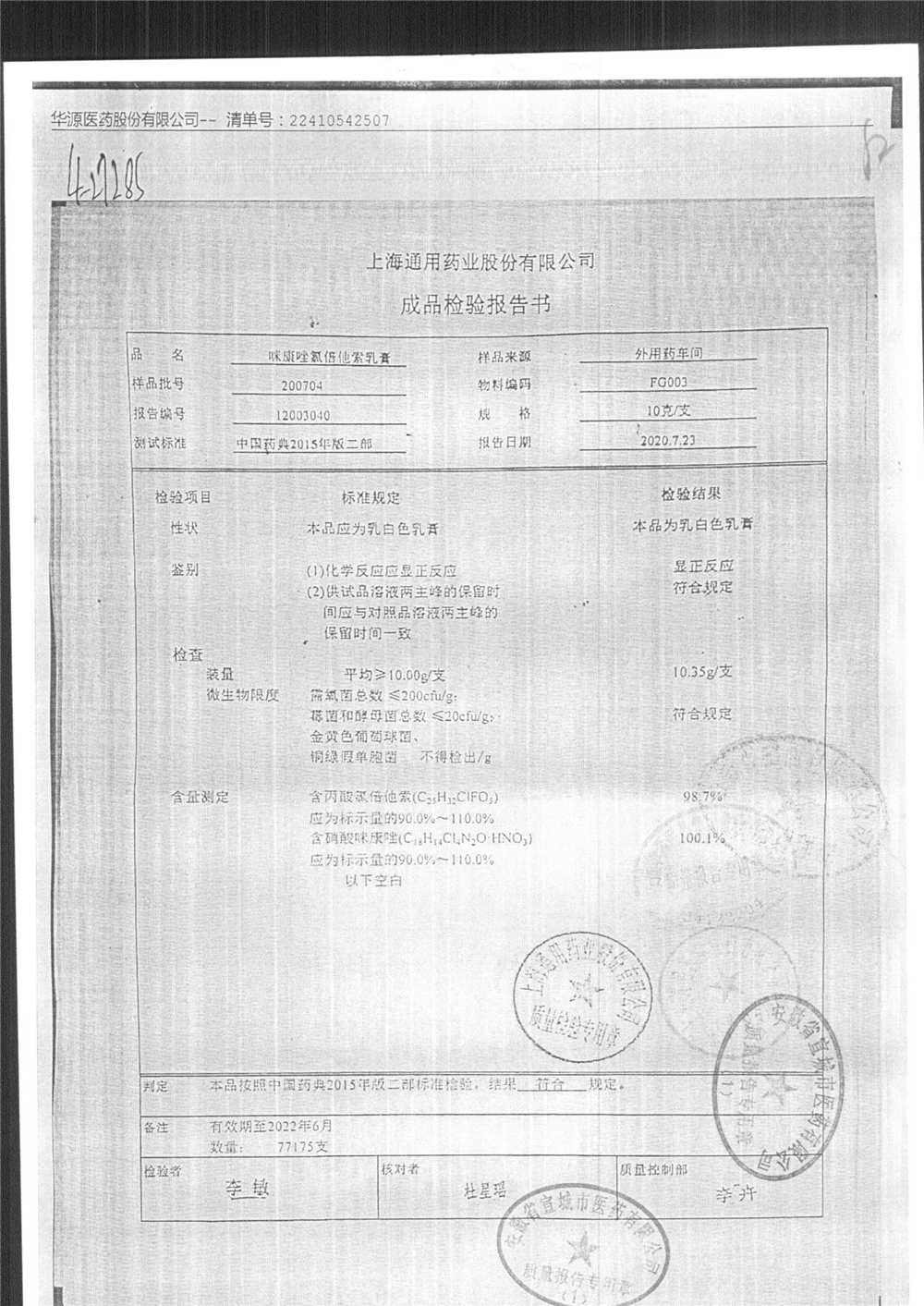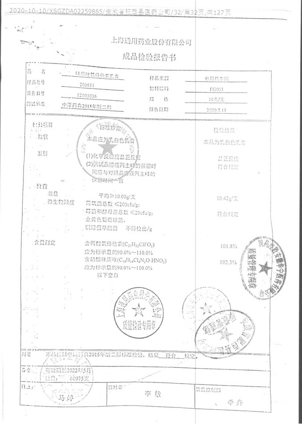| 咪康唑氯倍他索乳膏 | 10g | 200505 | 查看詳情 |