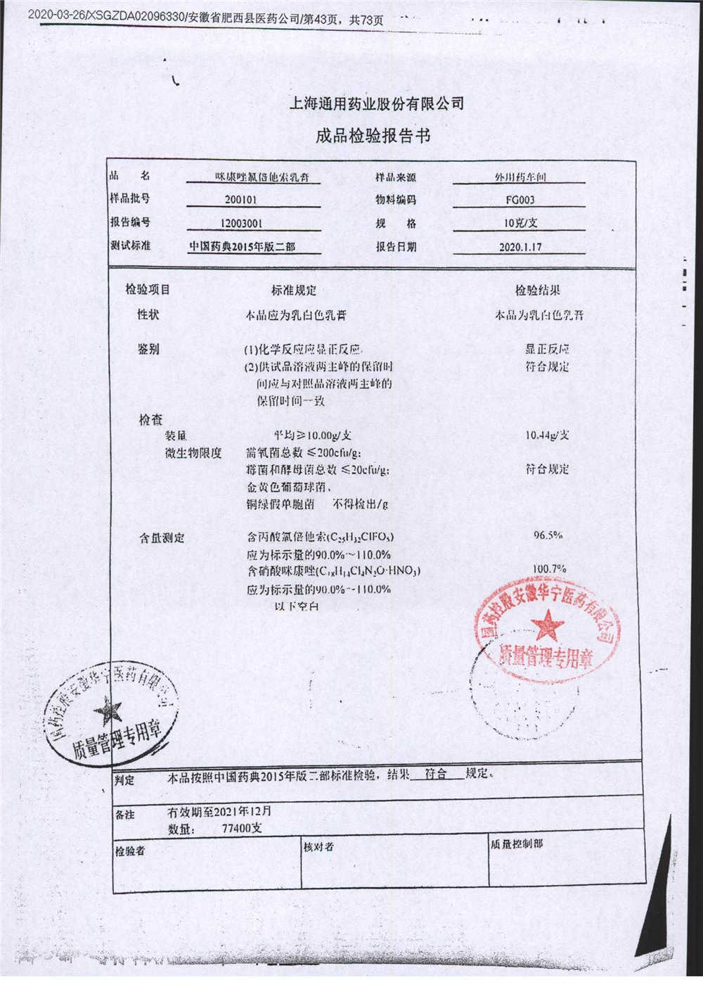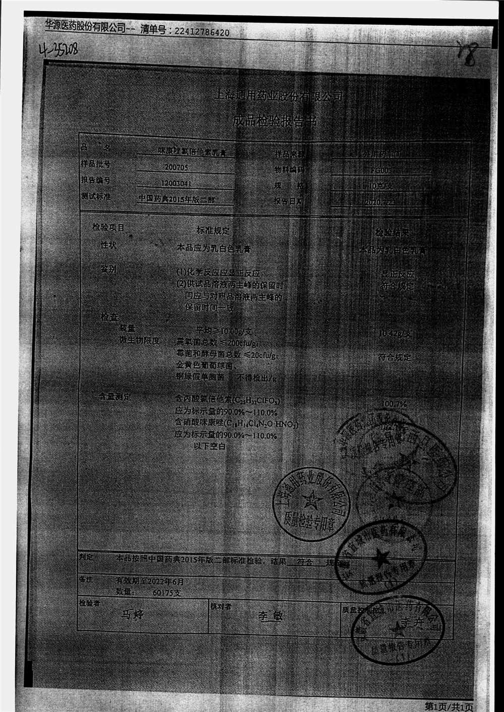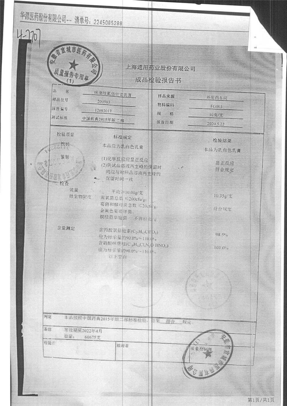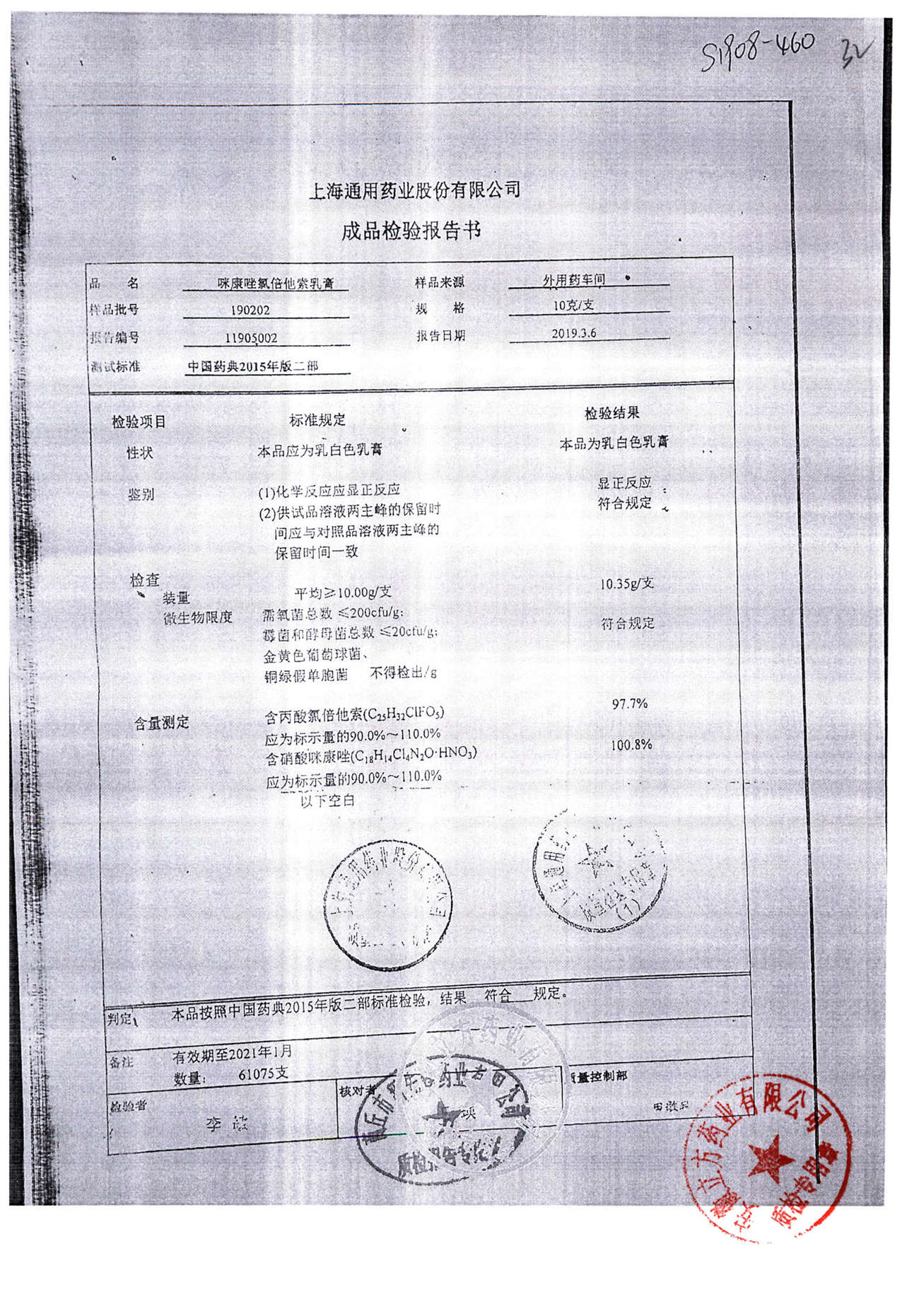 | 咪康唑氯倍他索乳膏 | 10g | 200505 | 查看詳情 |