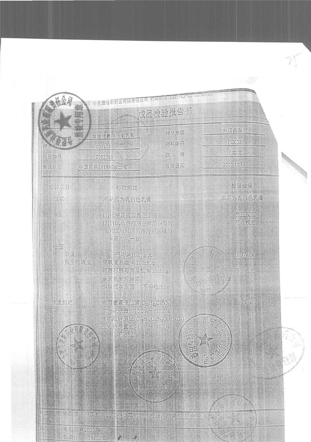 | 咪康唑氯倍他索乳膏 | 10g | 201205 | 查看詳情 |