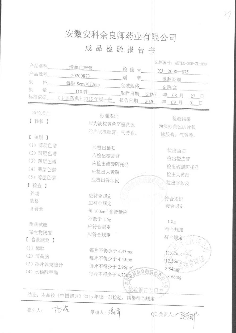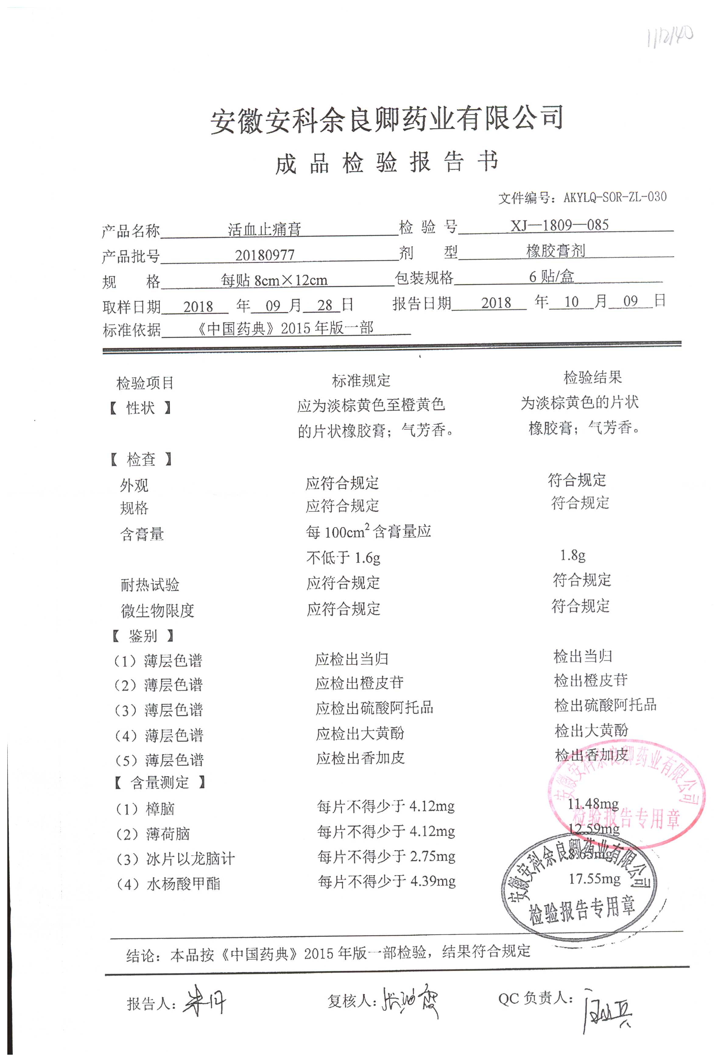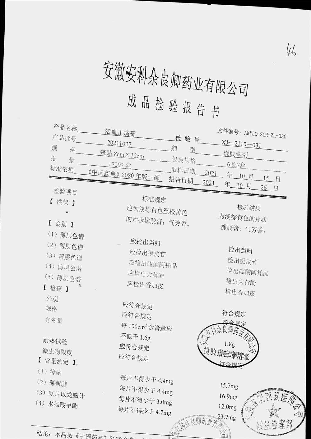 | 活血止痛膏 | 8cm*12cm*6貼 | 20211027 | 查看詳情 |