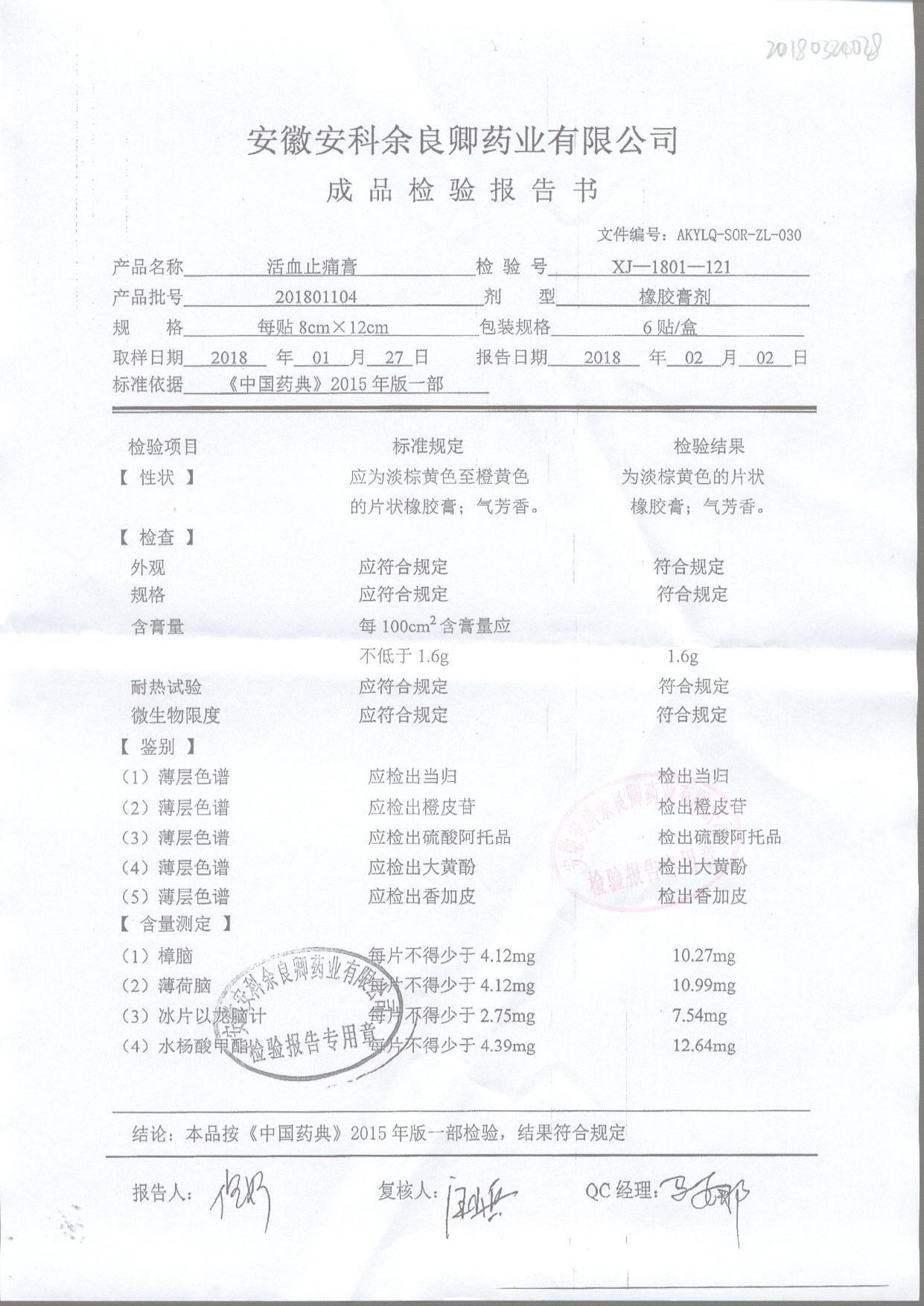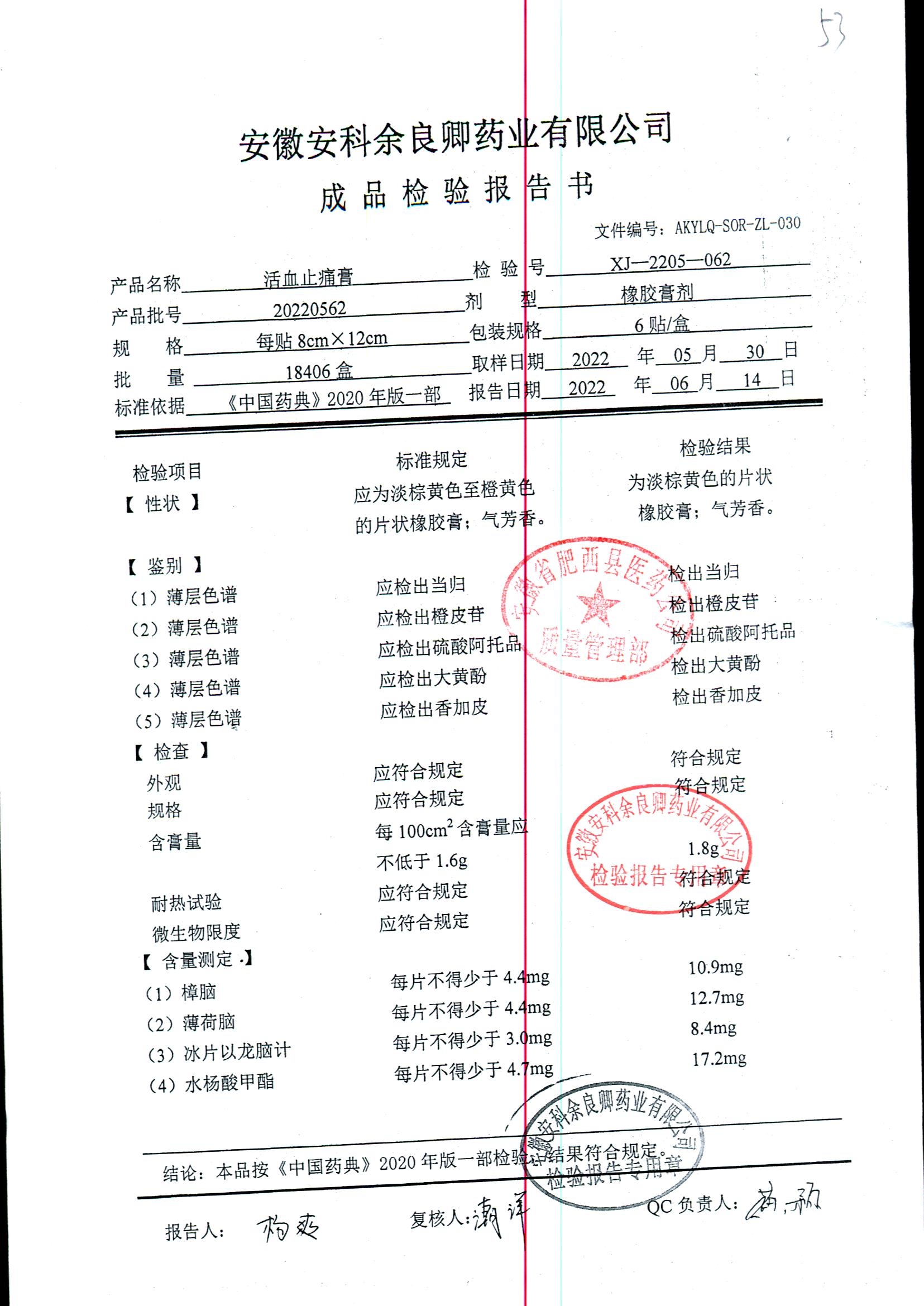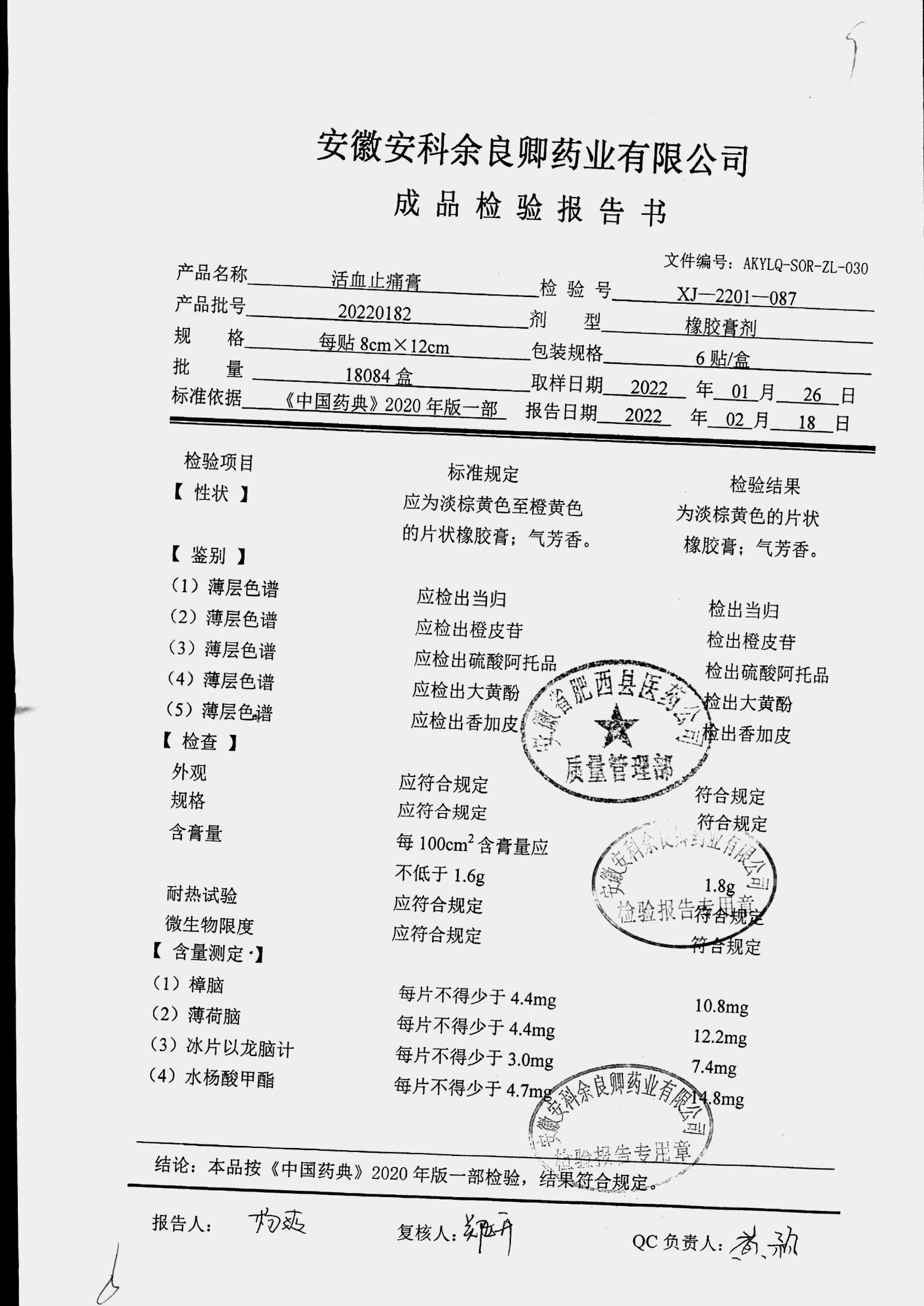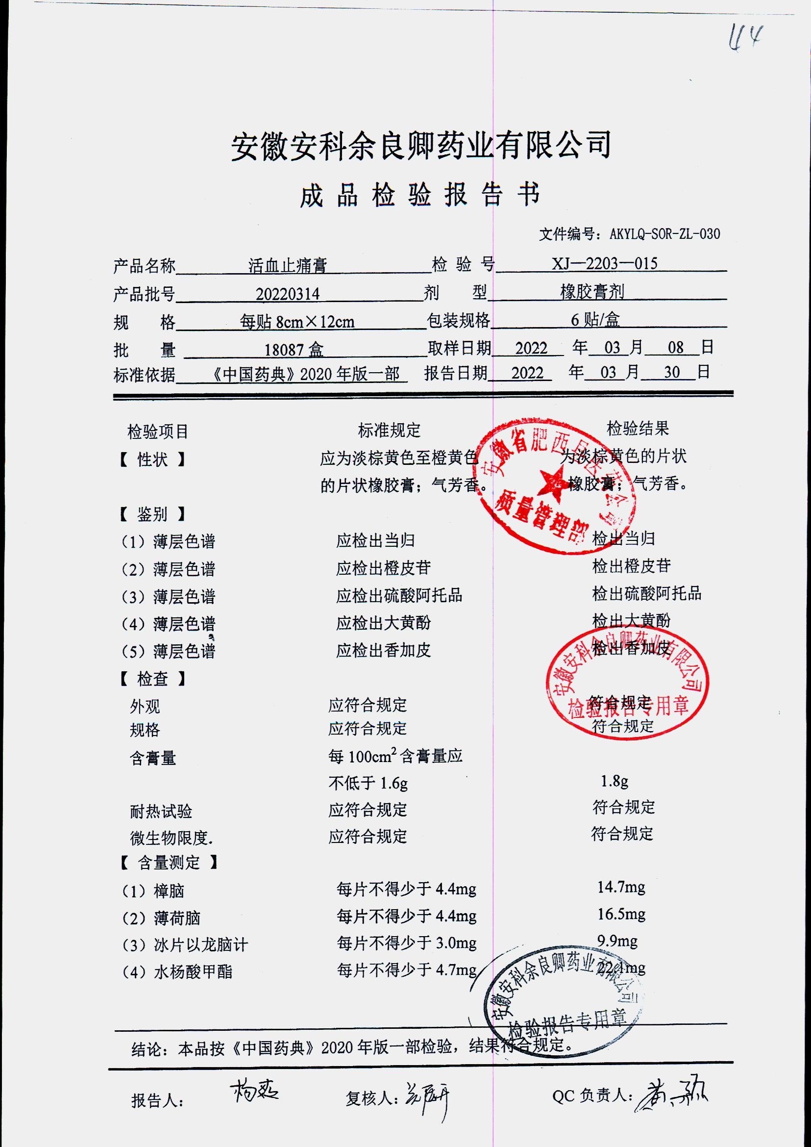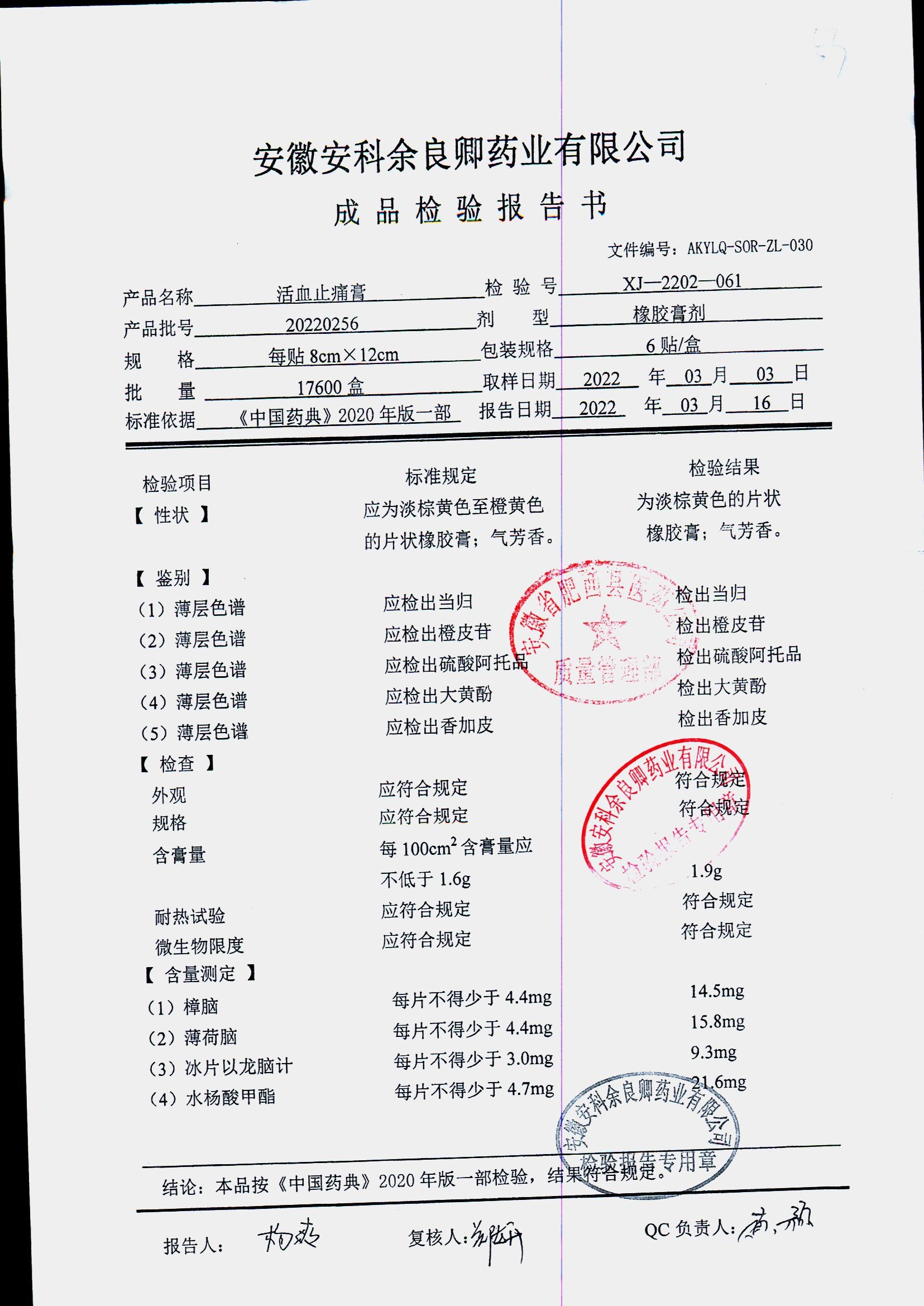 | 活血止痛膏 | 8cm*12cm*6貼 | 20220314 | 查看詳情 |