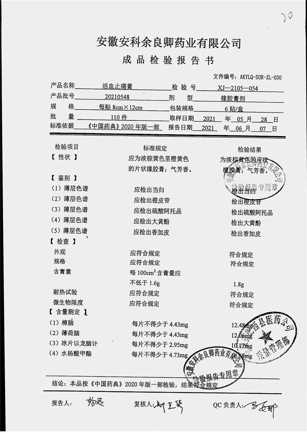 | 名稱 | 規(guī)格 | 批號 | 藥檢報告 |
