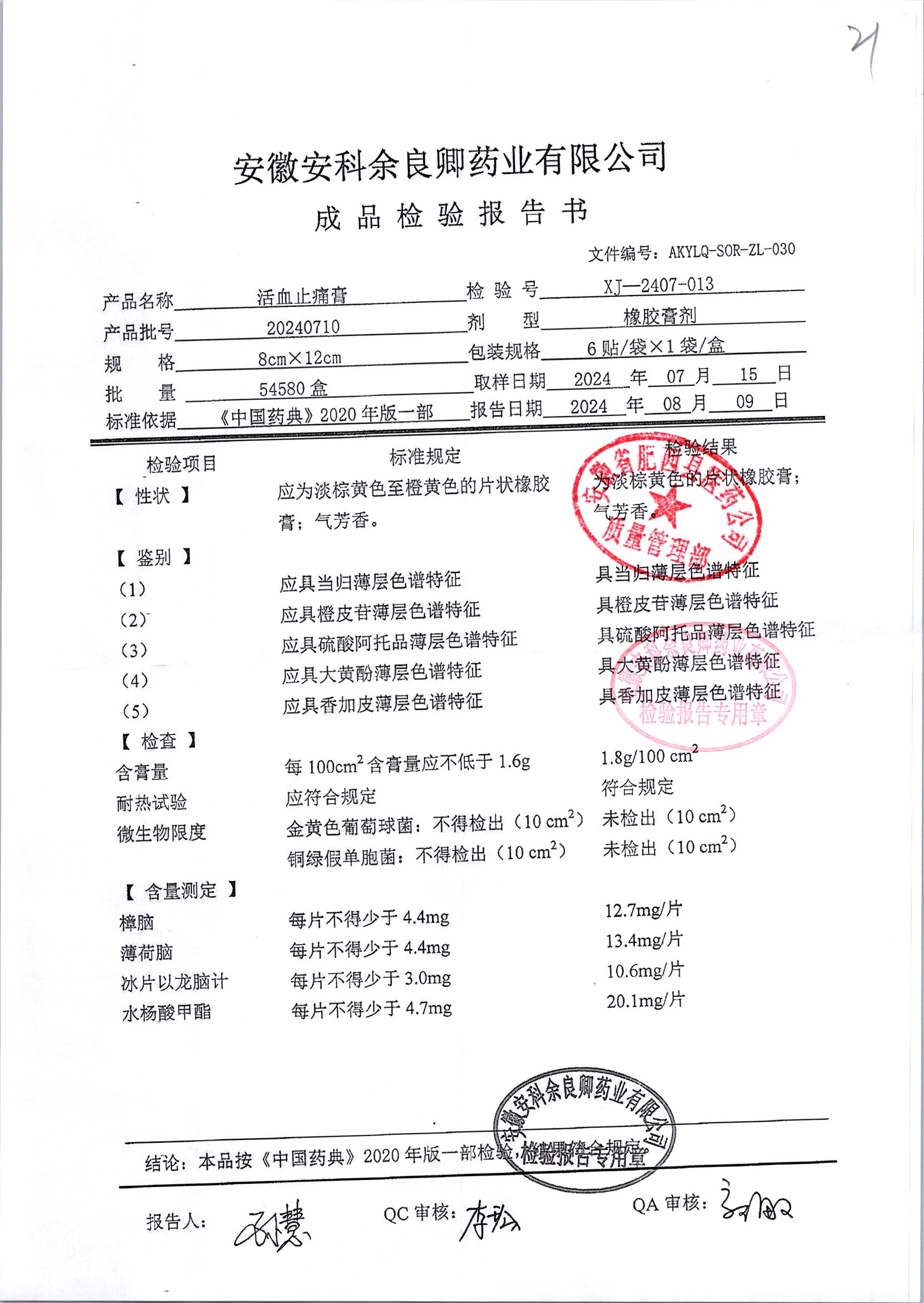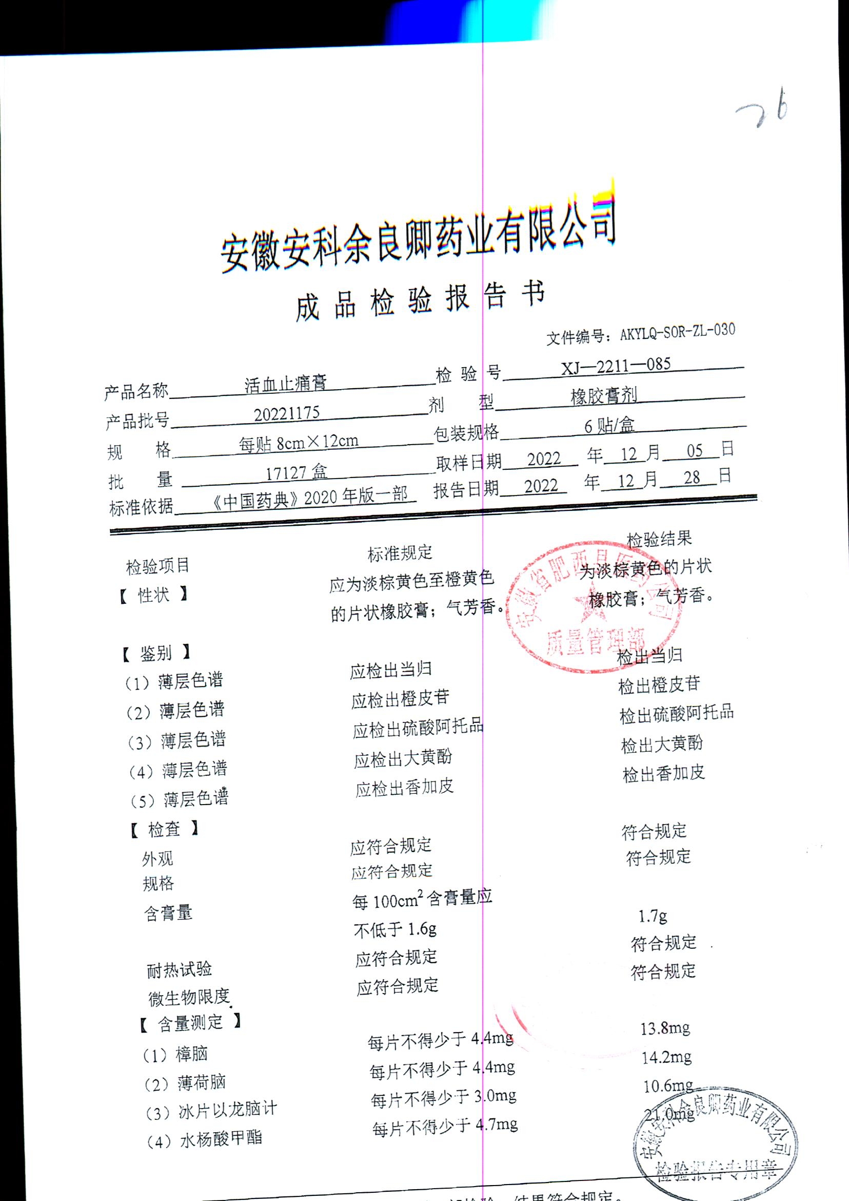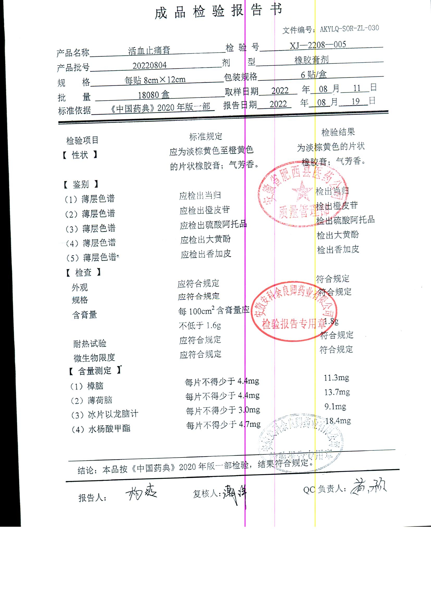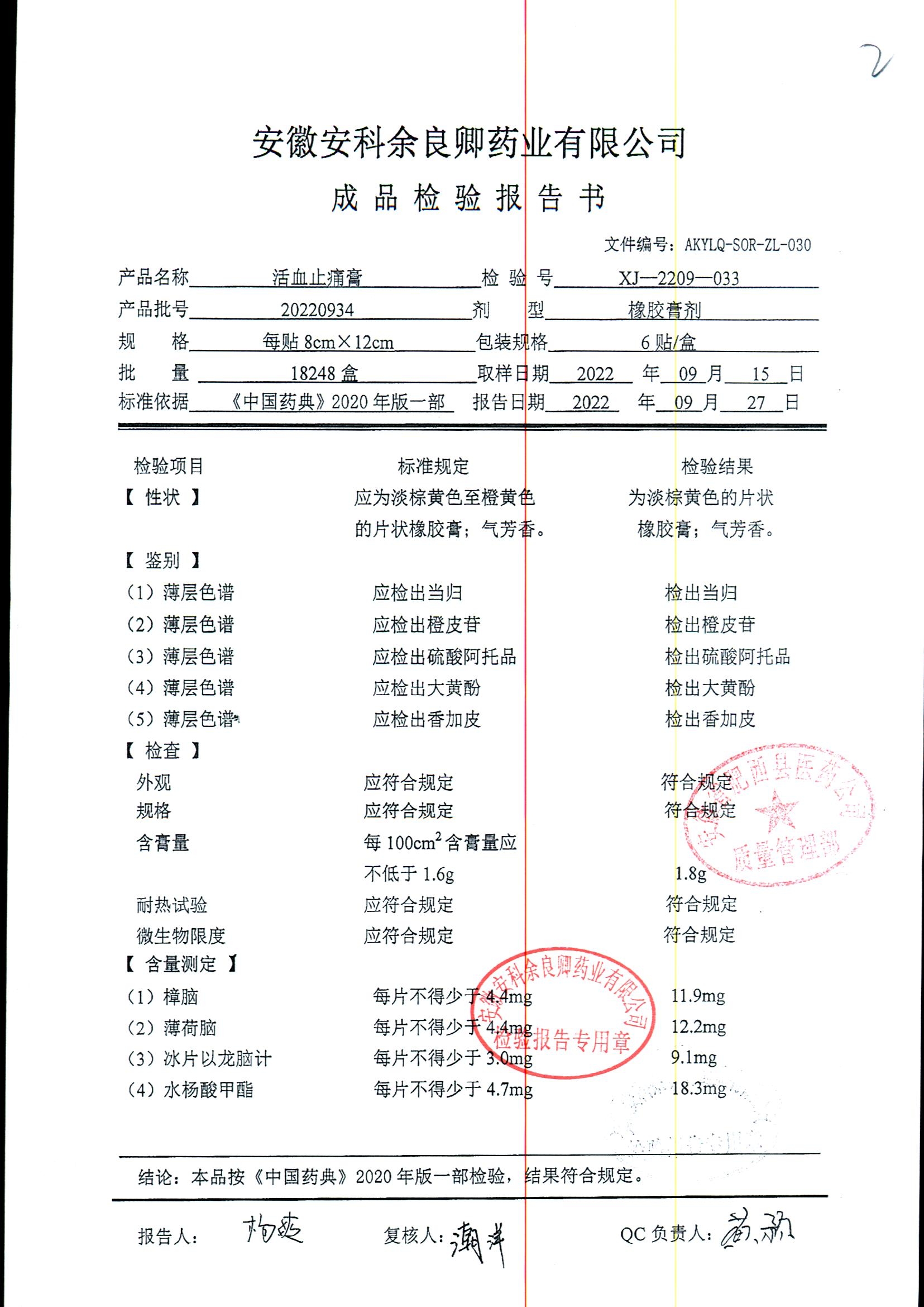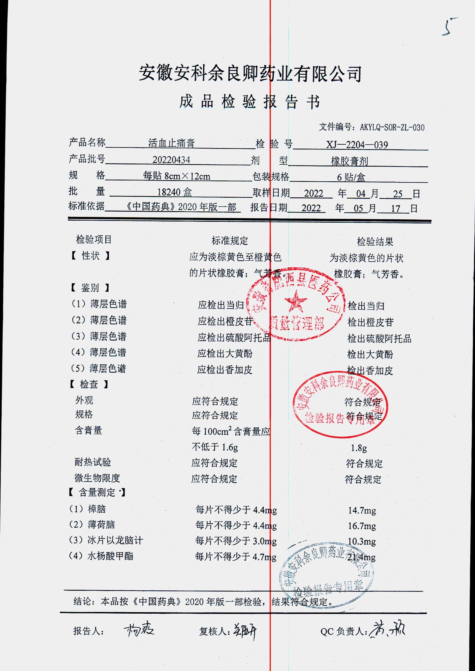 | 活血止痛膏 | 8cm*12cm*6貼 | 20220804 | 查看詳情 |