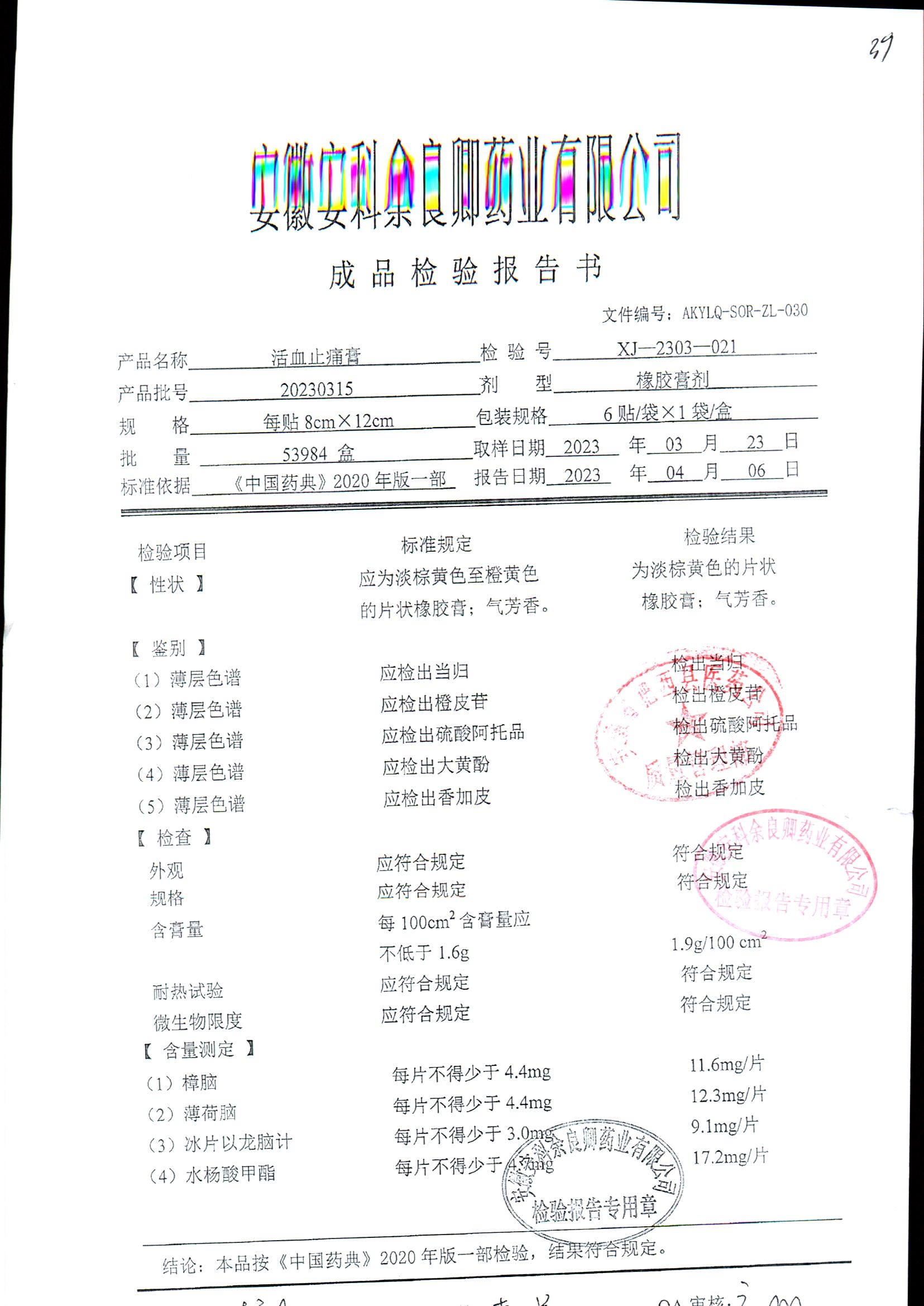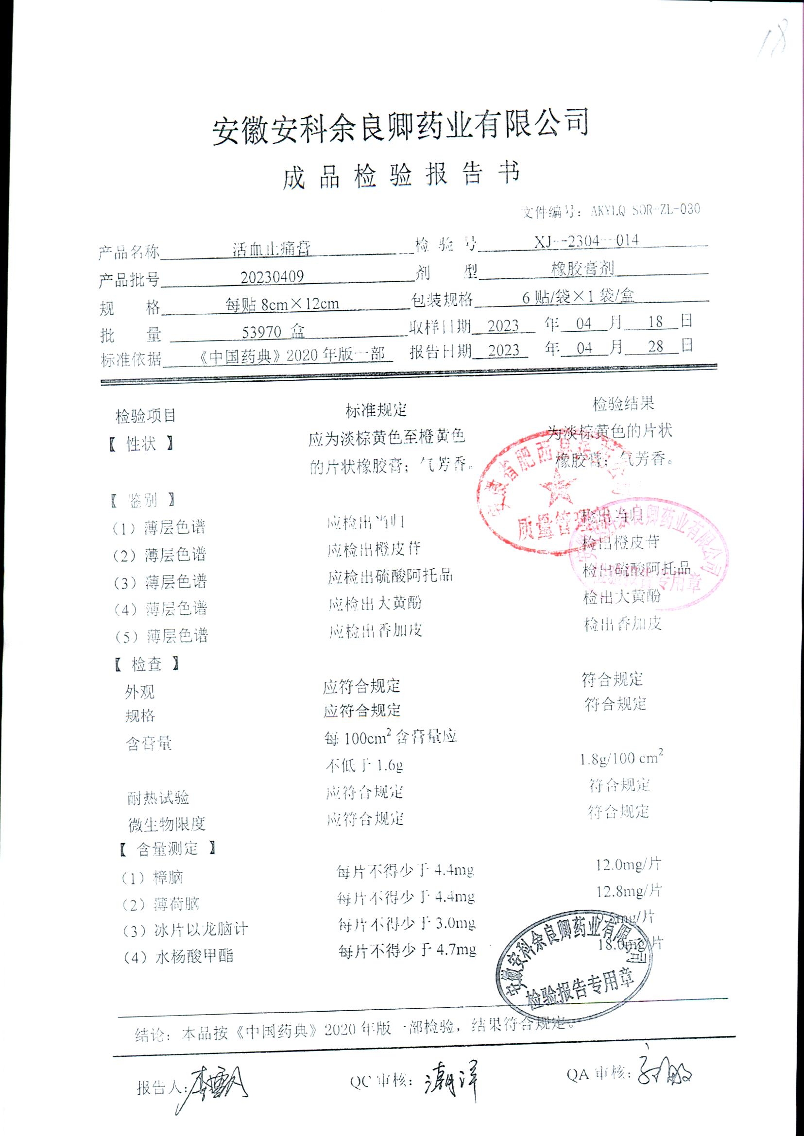 | 活血止痛膏 | 8cm*12cm*6貼 | 20230409 | 查看詳情 |