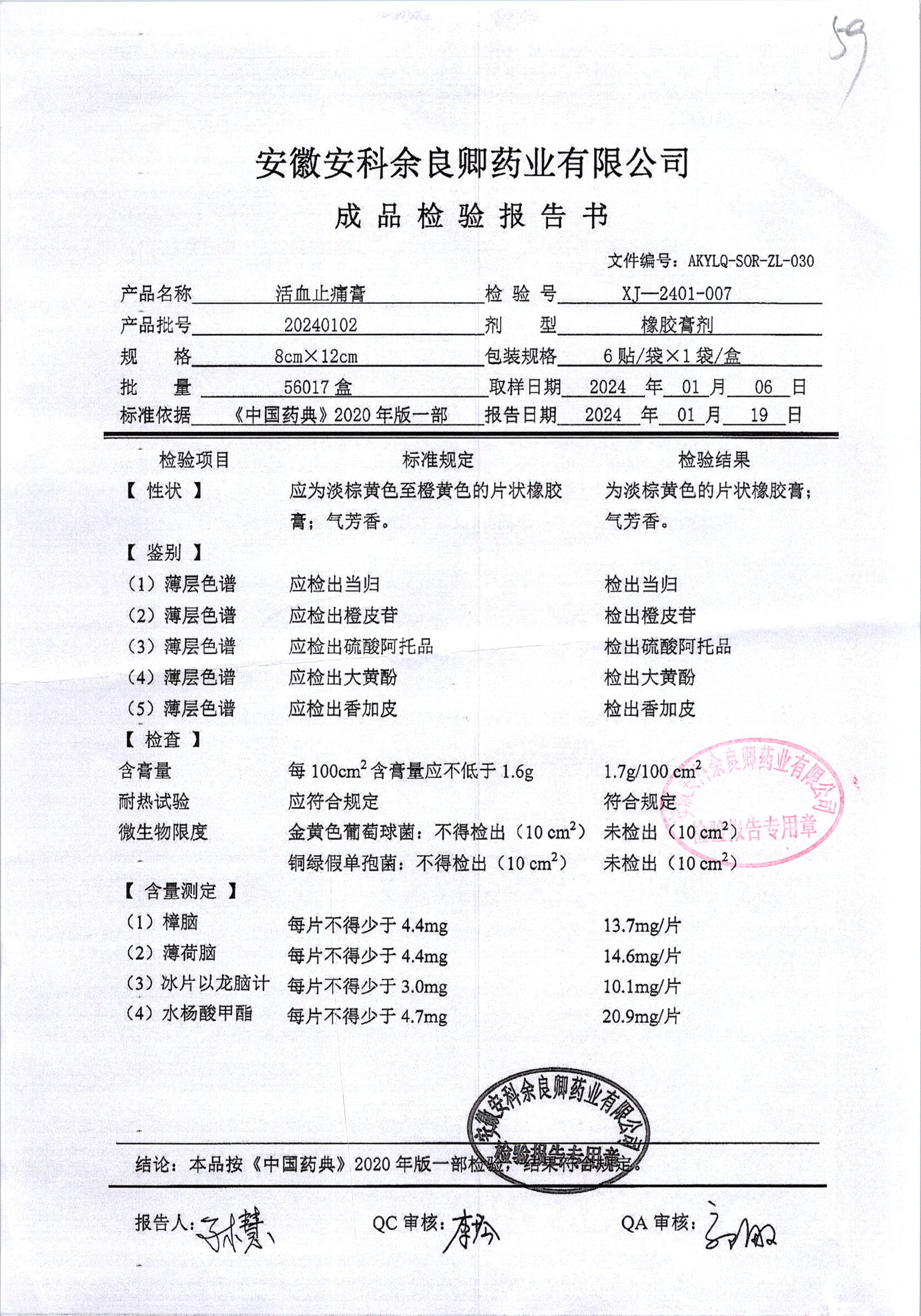 | 活血止痛膏 | 8cm*12cm*6貼 | 20240102 | 查看詳情 |