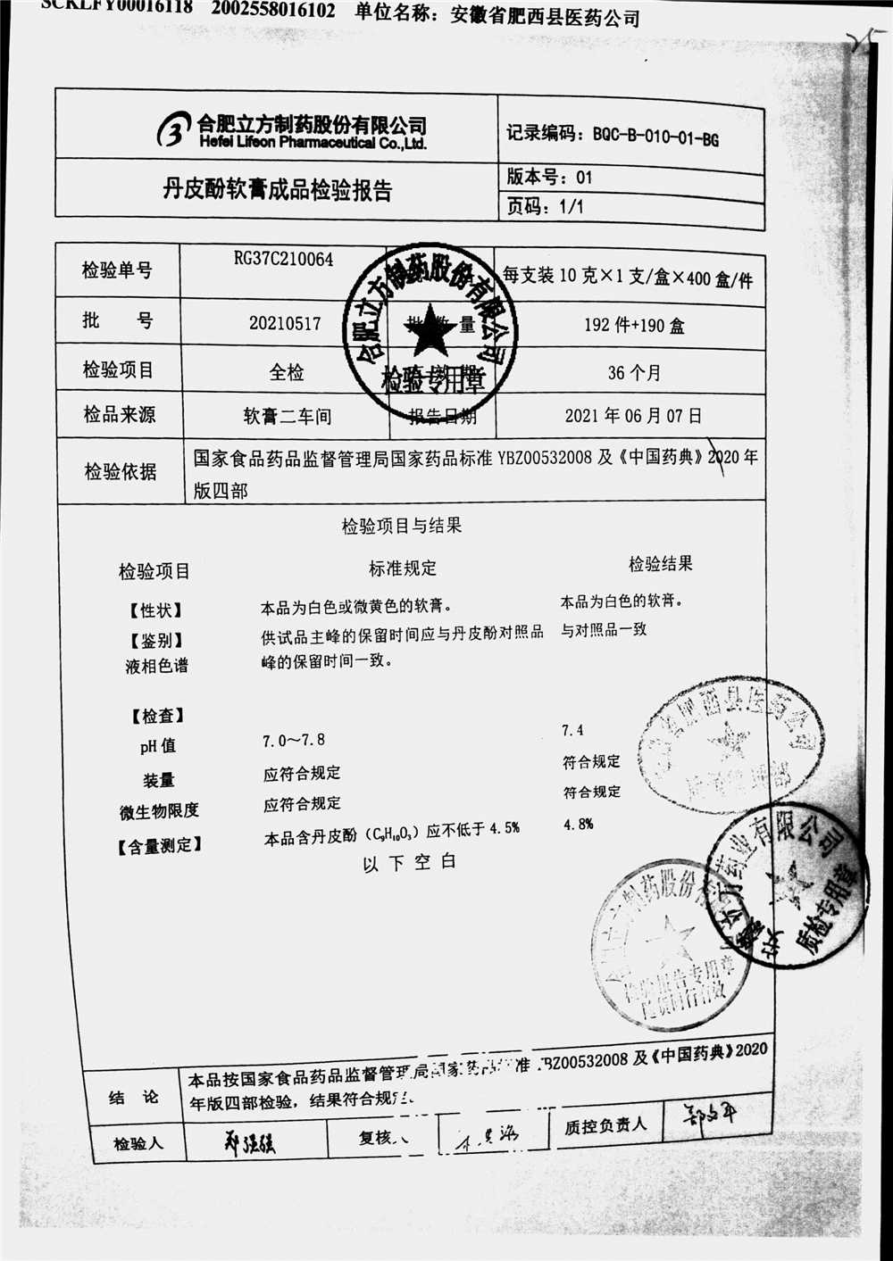 | 丹皮酚軟膏 | 10g | 20210202 | 查看詳情 |
