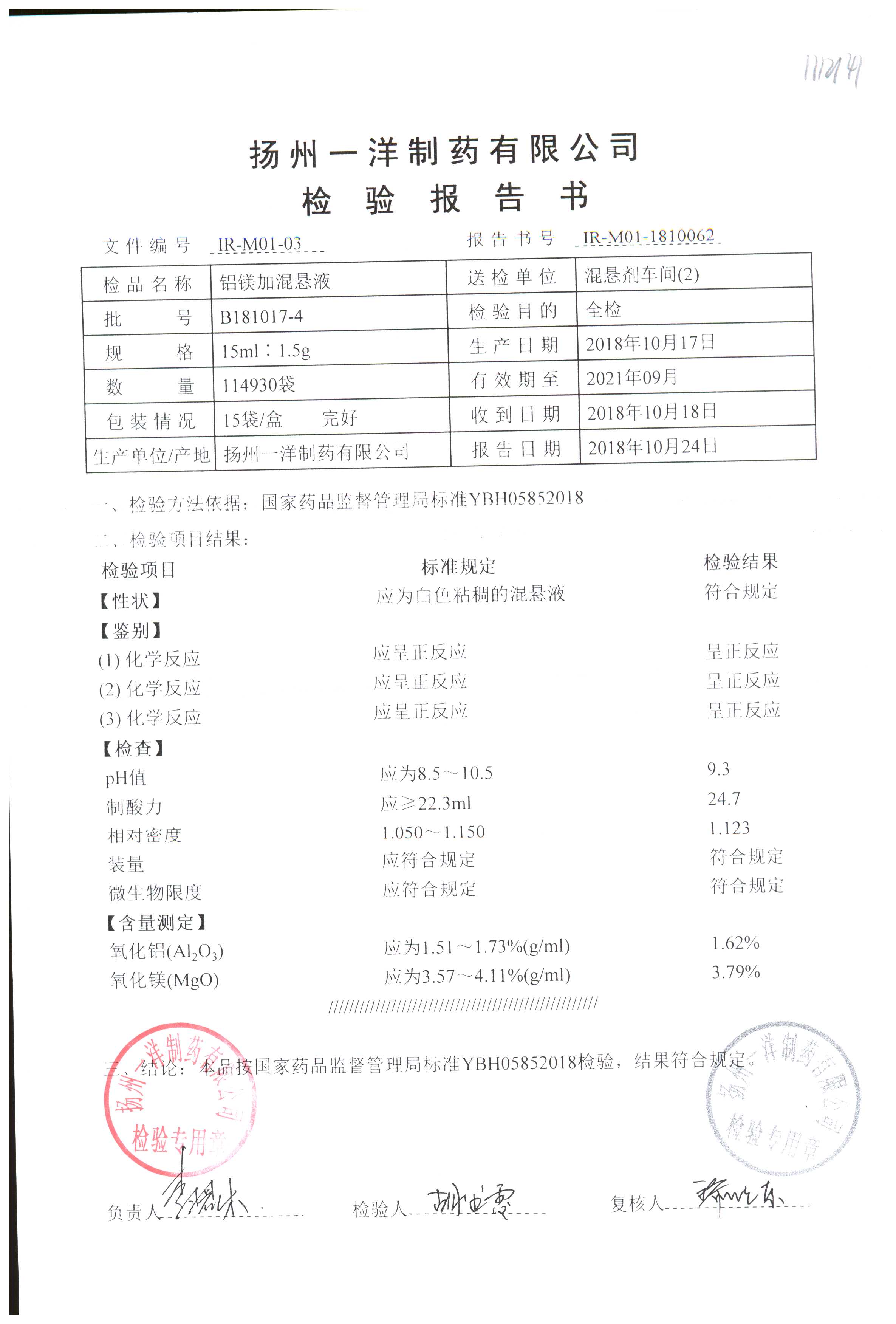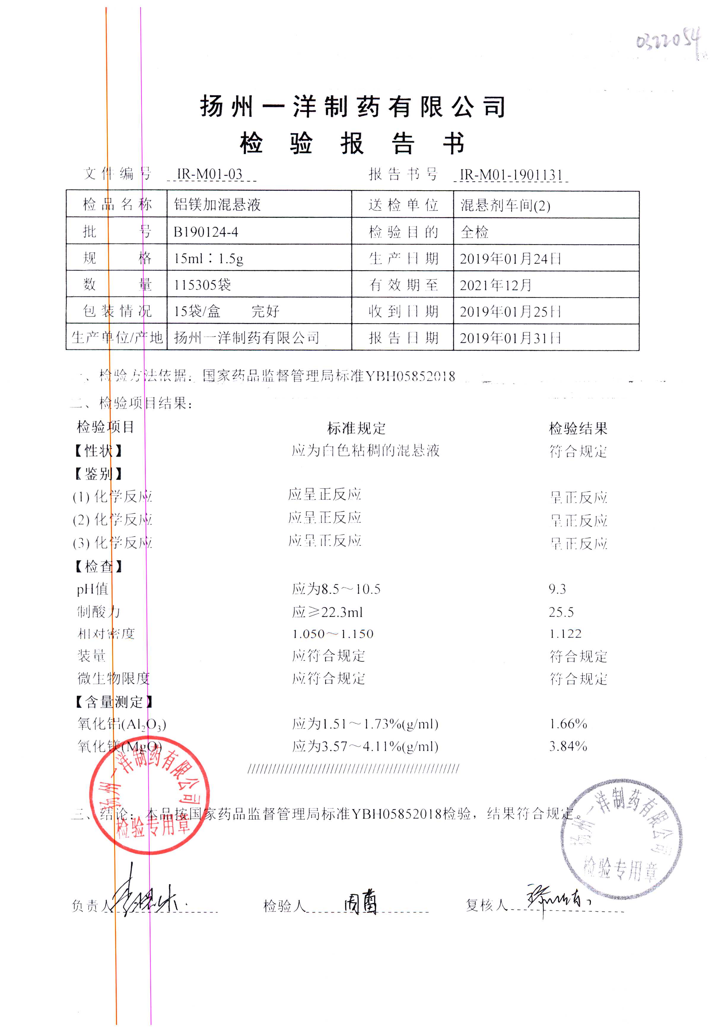 | 鋁鎂加混懸液 | 15ml:1.5g | B190424-7 | 查看詳情 |