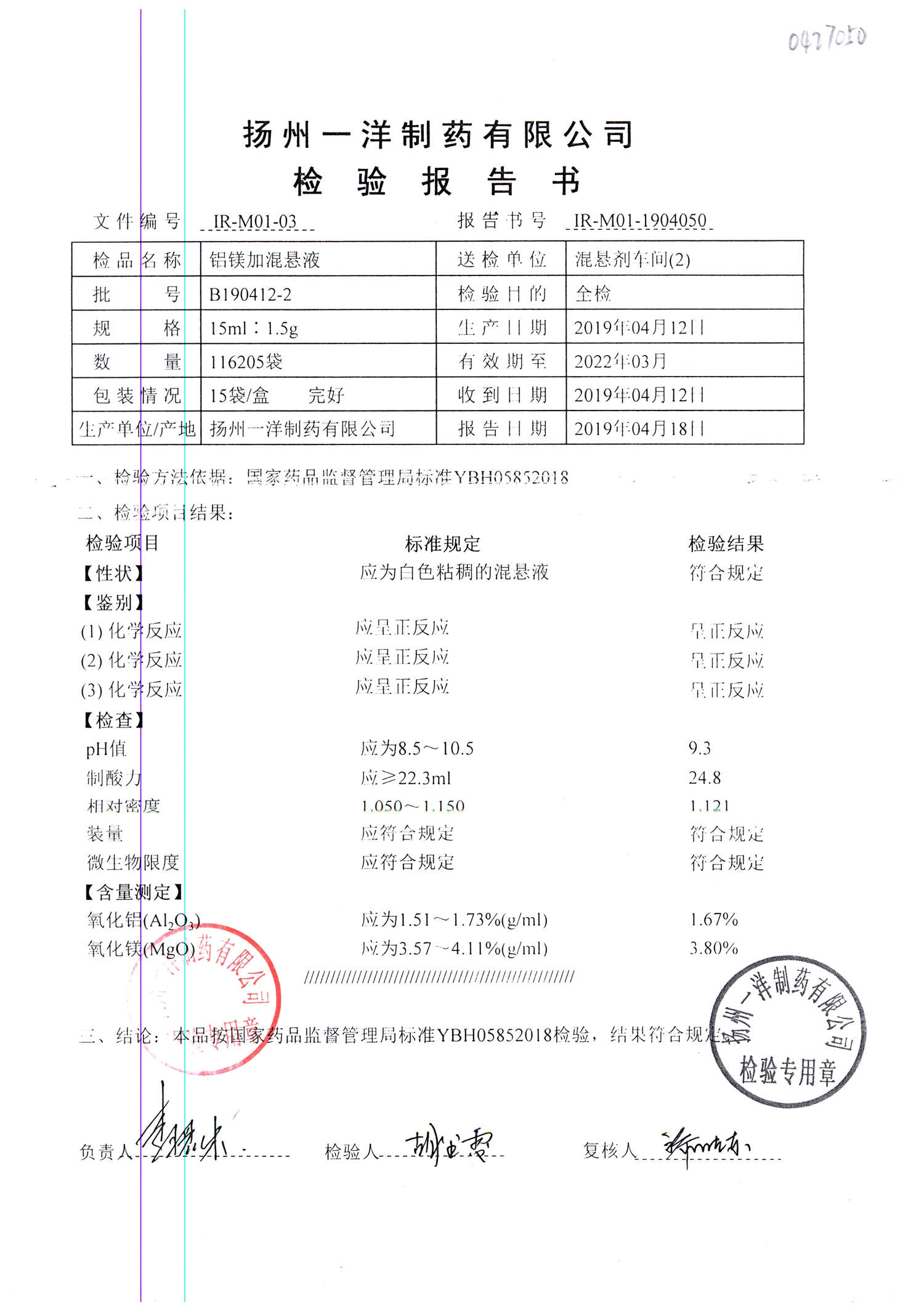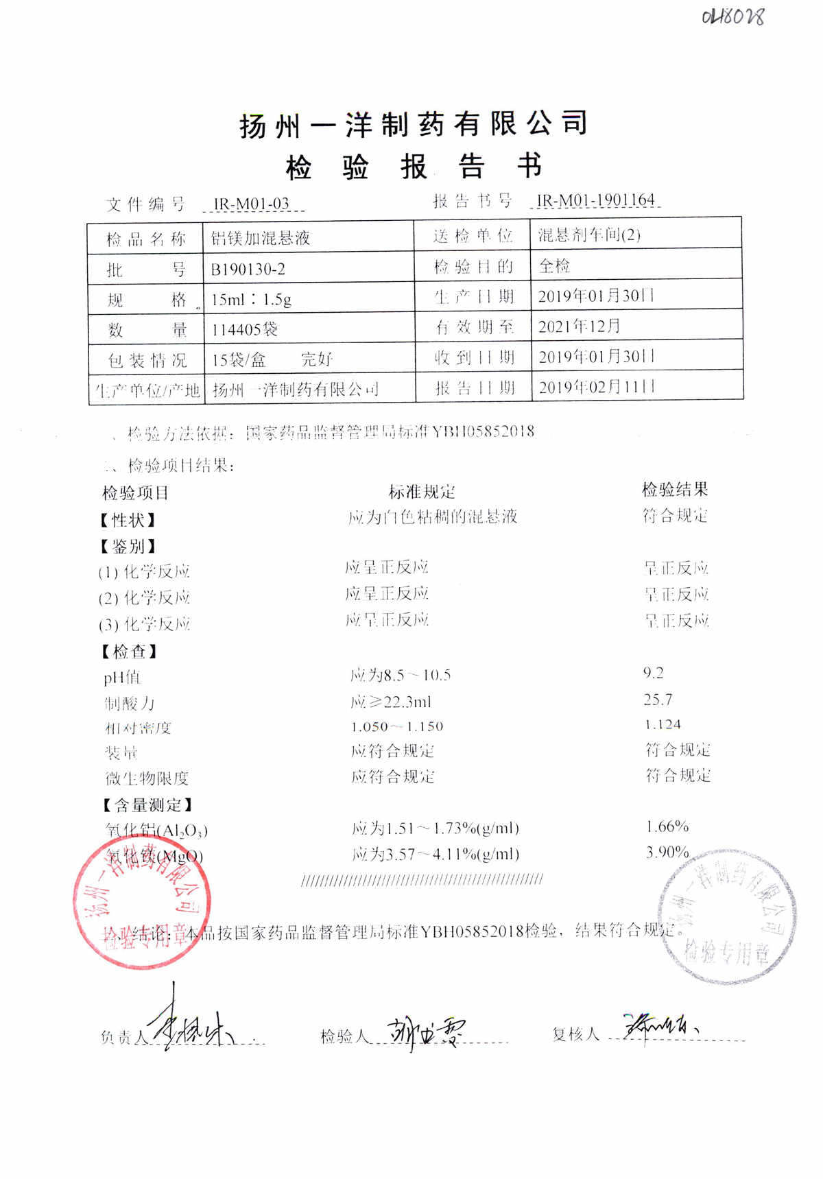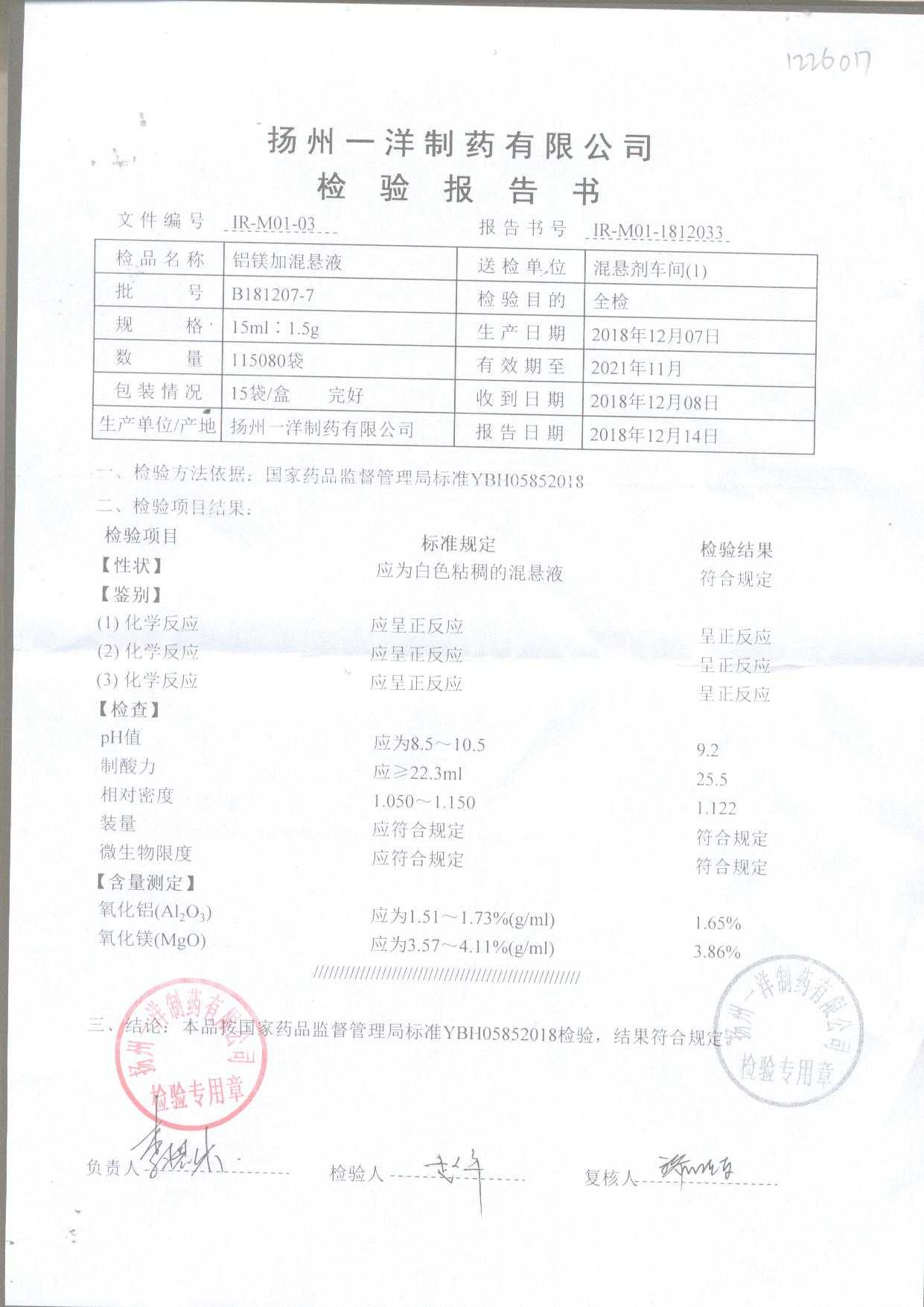 | 鋁鎂加混懸液 | 15ml:1.5g | B190412-2 | 查看詳情 |