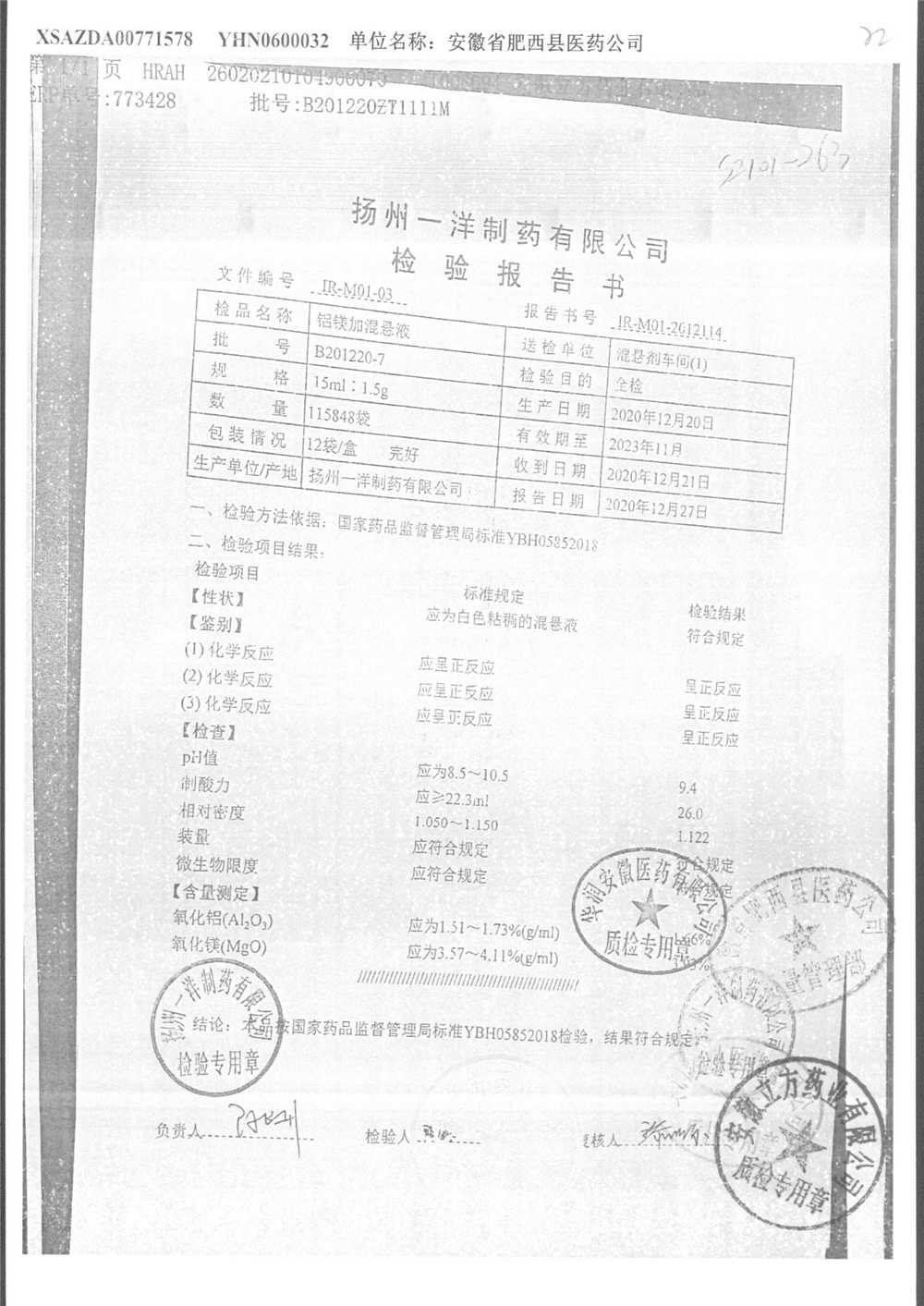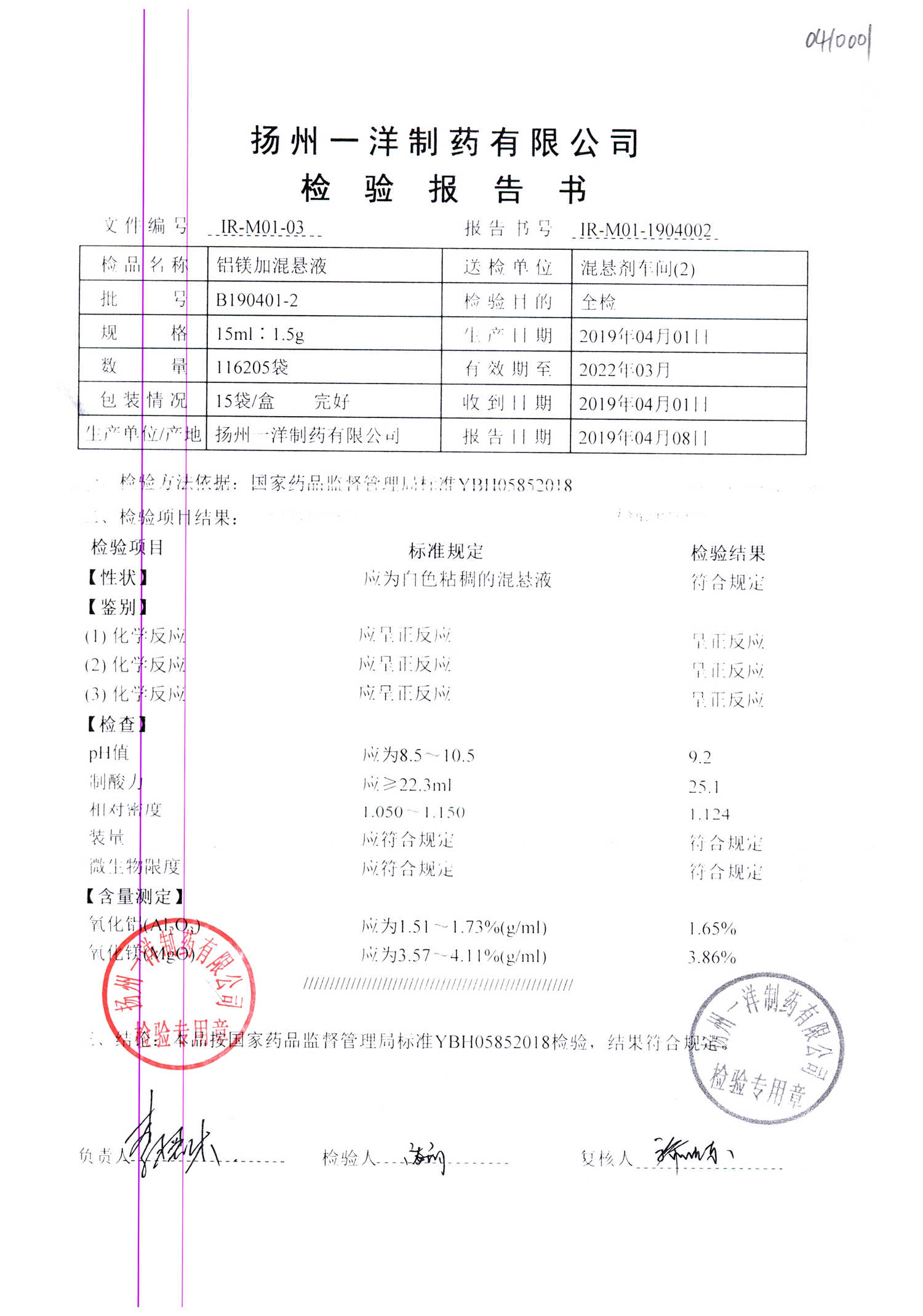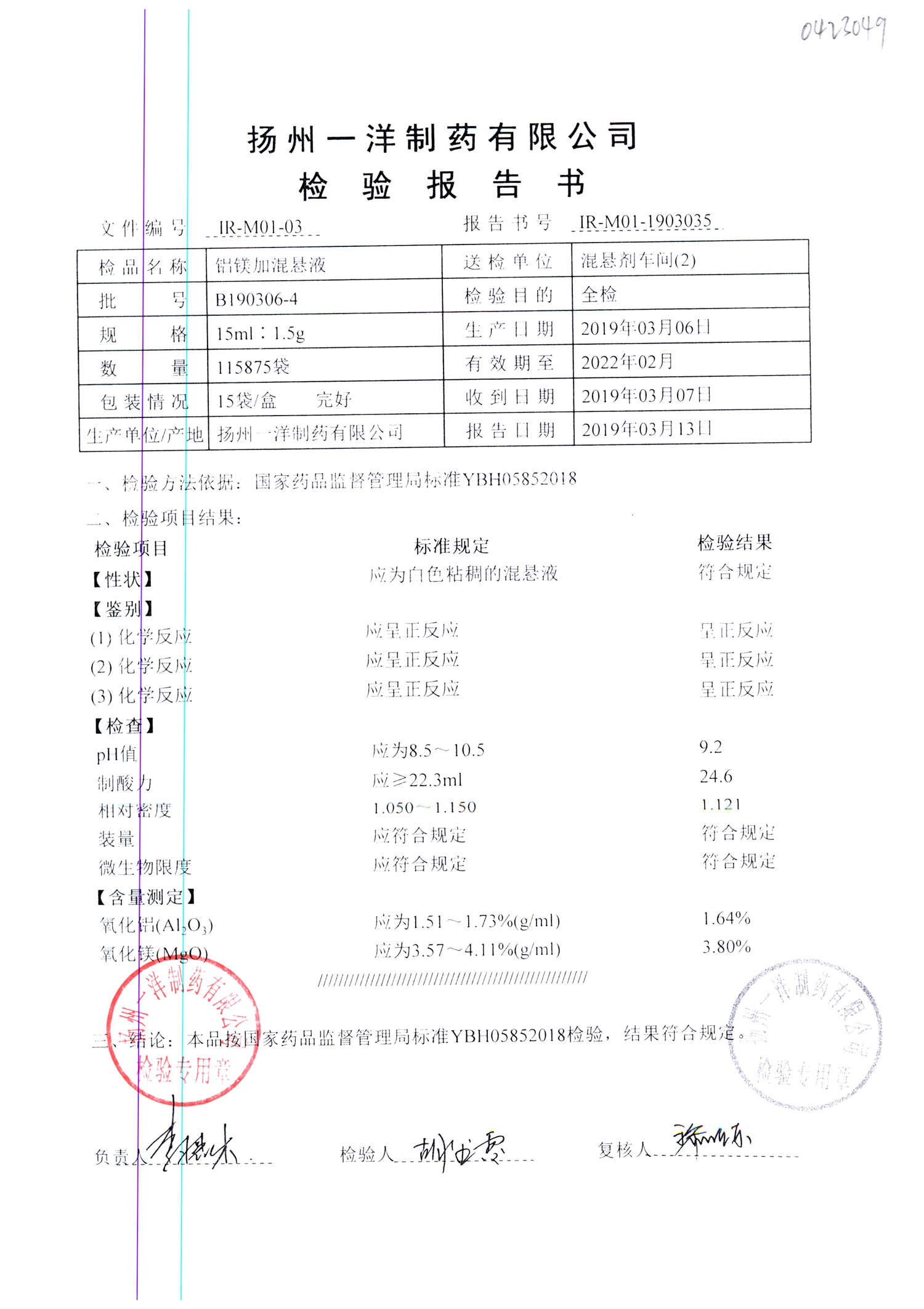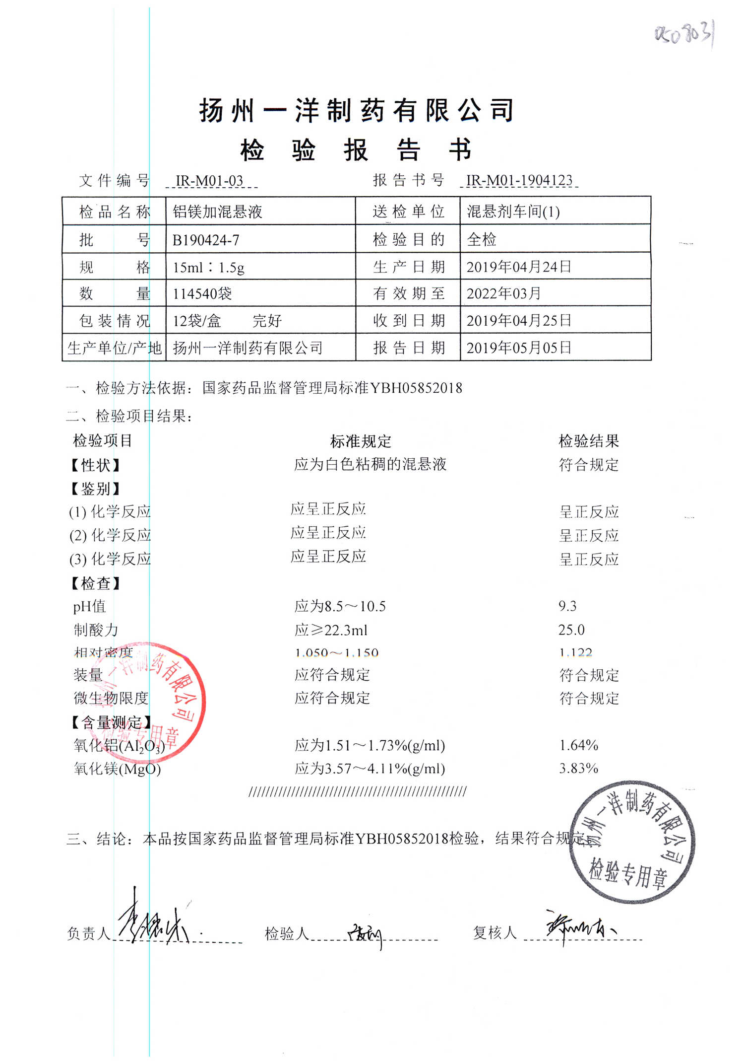 | 鋁鎂加混懸液 | 15ml:1.5g | B190412-2 | 查看詳情 |