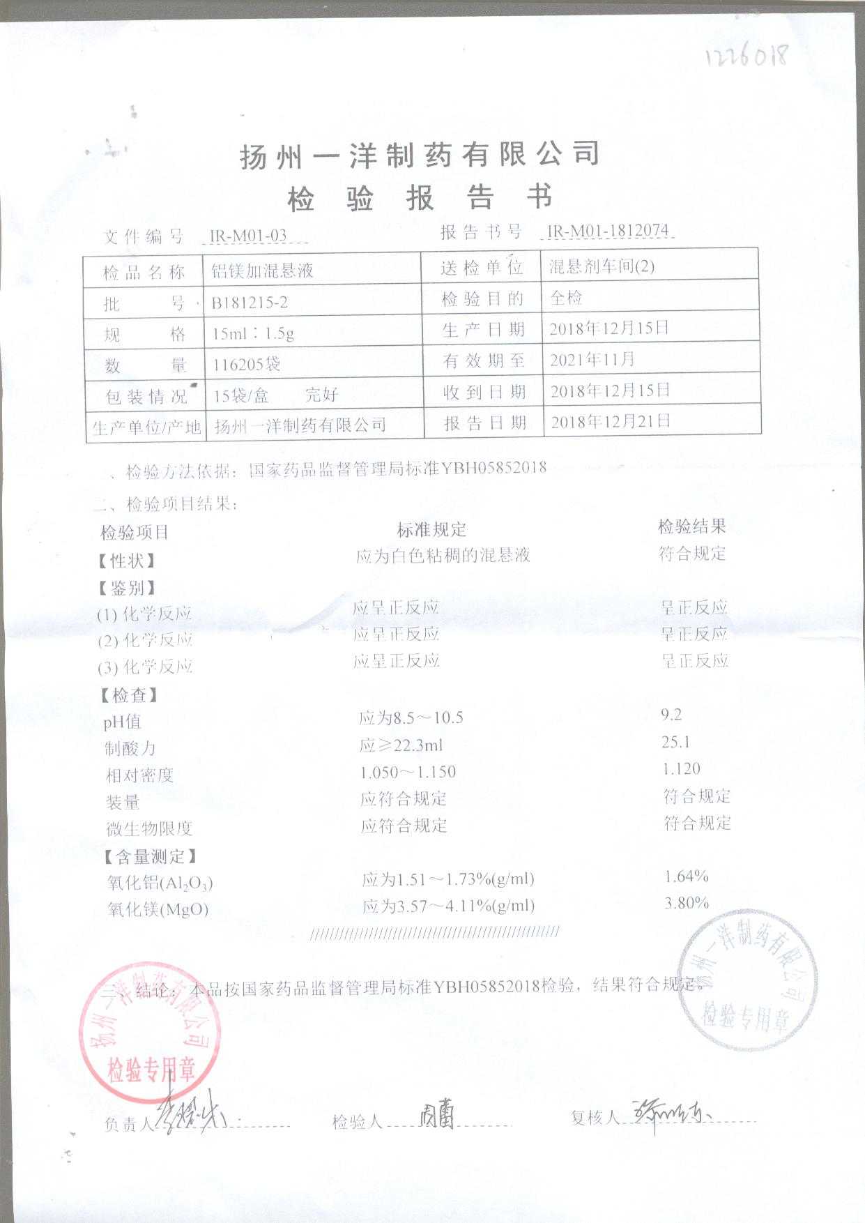 | 鋁鎂加混懸液 | 15ml:1.5g | B190526-3 | 查看詳情 |