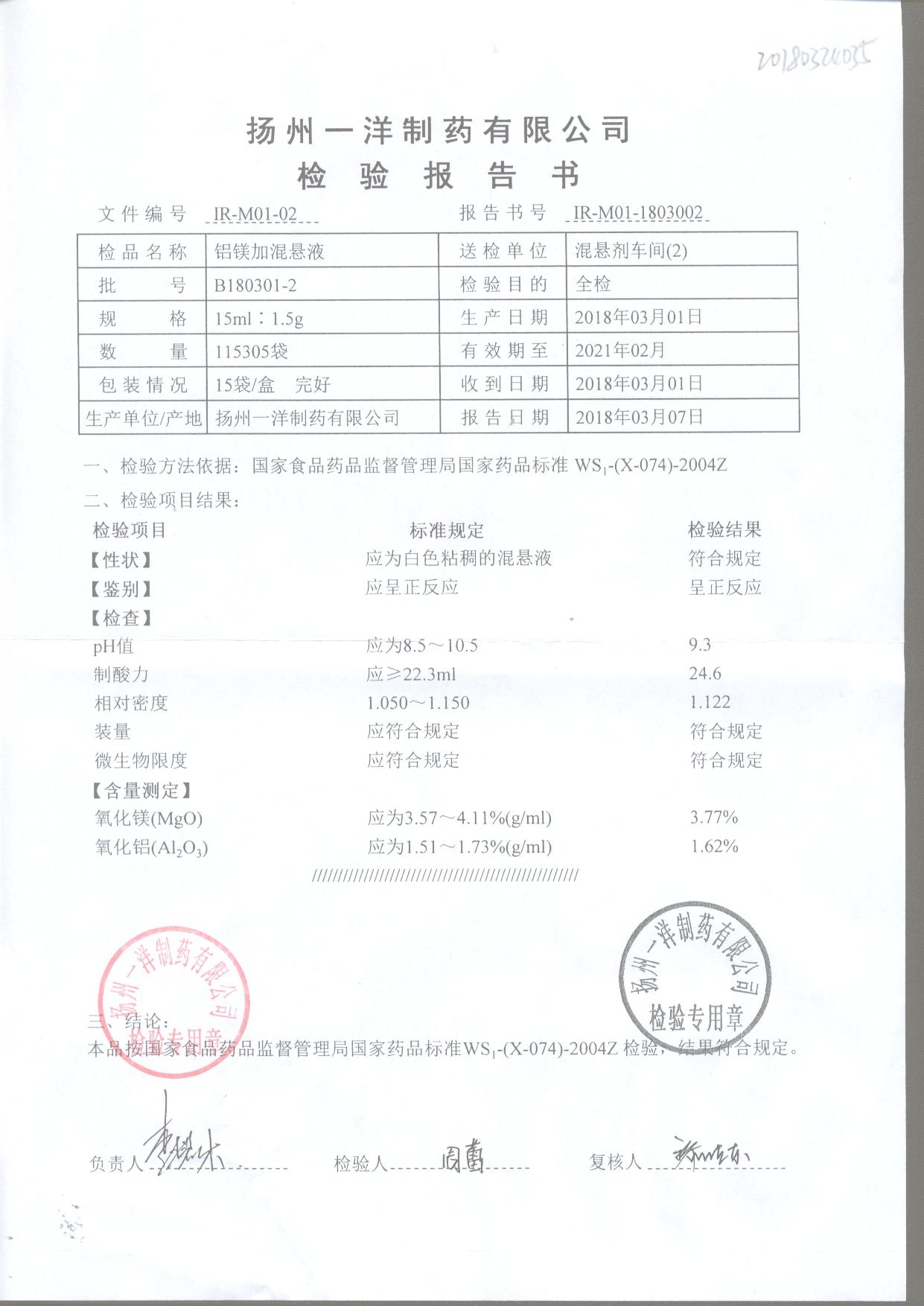 | 鋁鎂加混懸液 | 15ml:1.5g | B180413-2 | 查看詳情 |