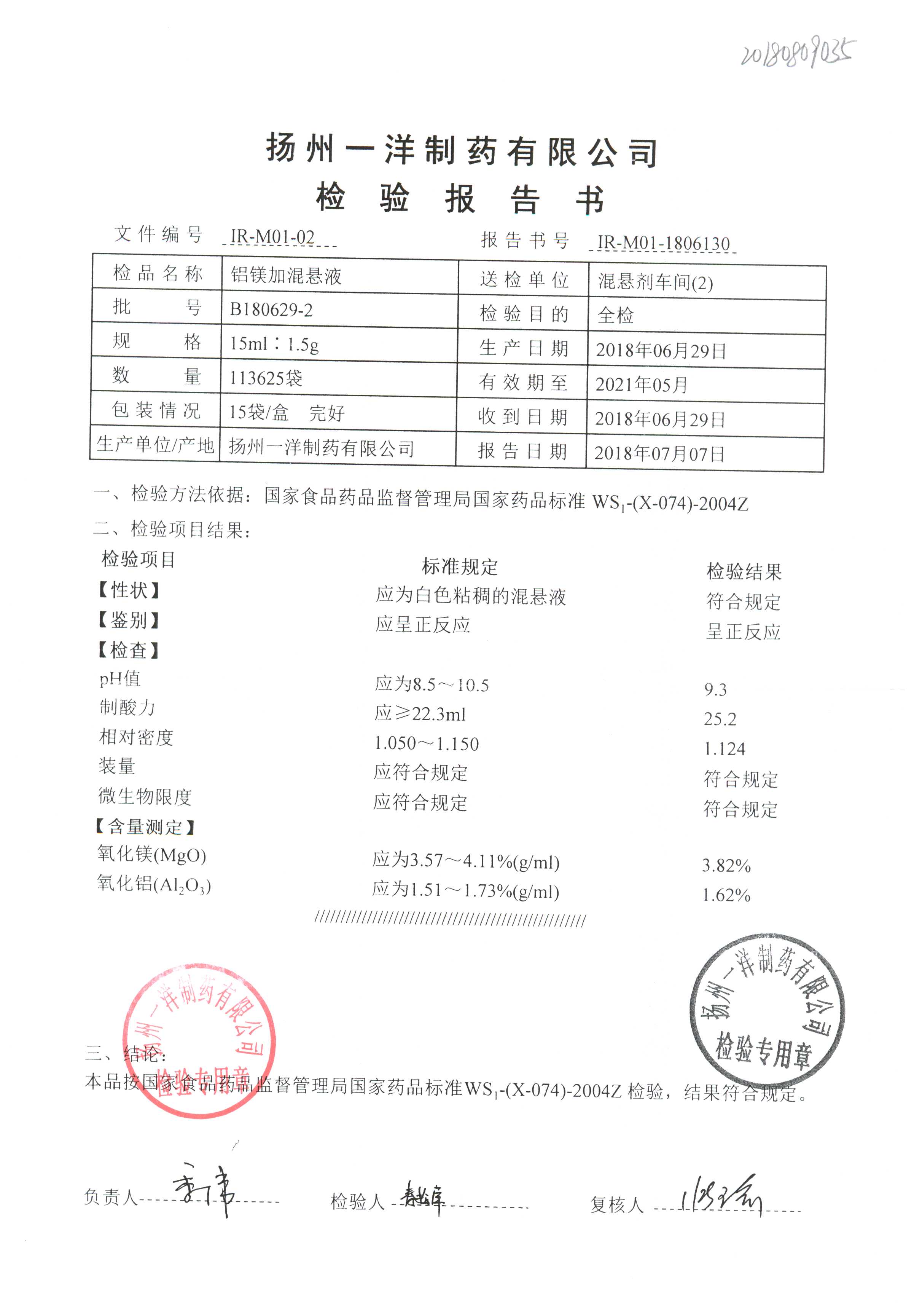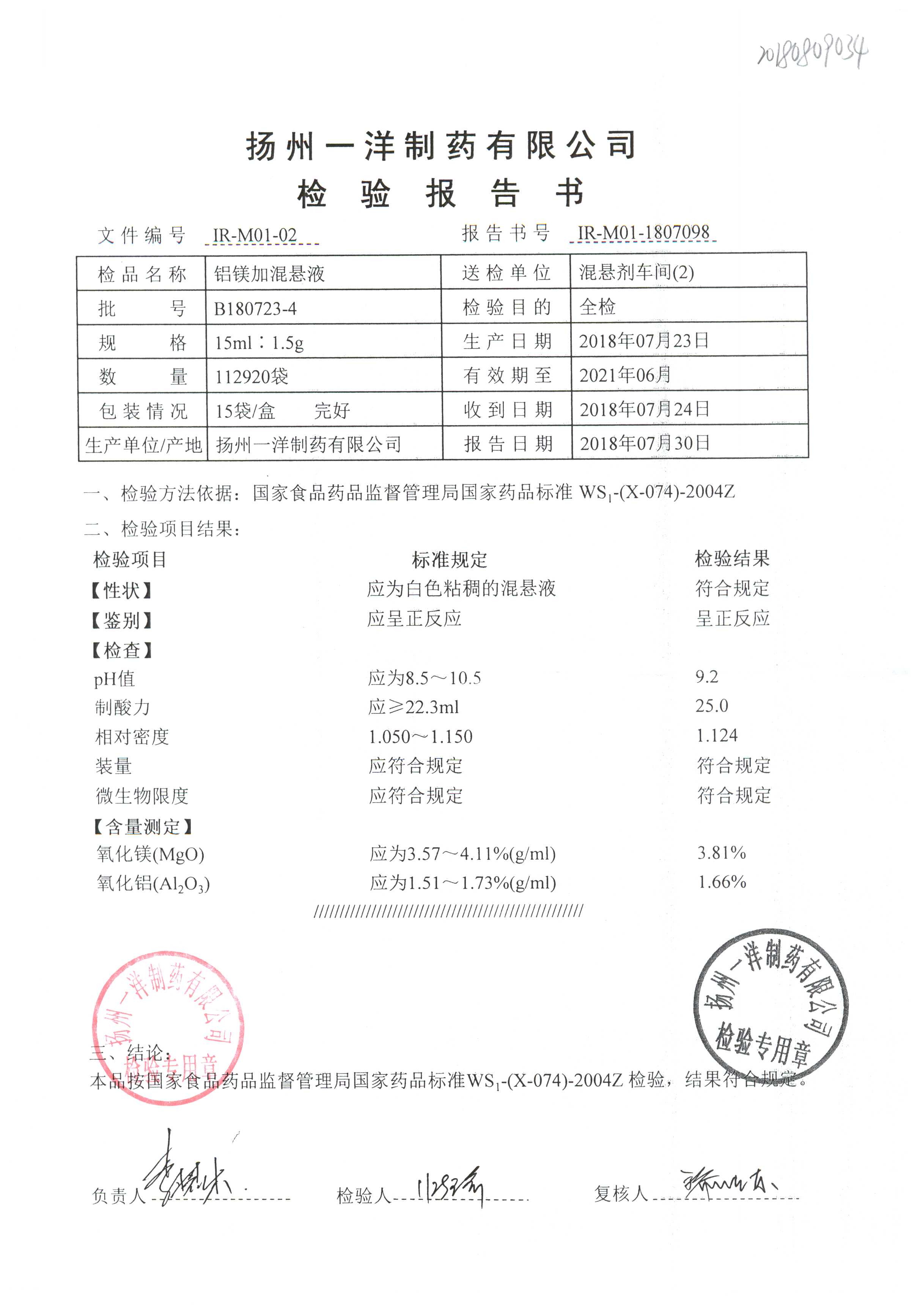 | 鋁鎂加混懸液 | 15ml:1.5g | B180723-4 | 查看詳情 |