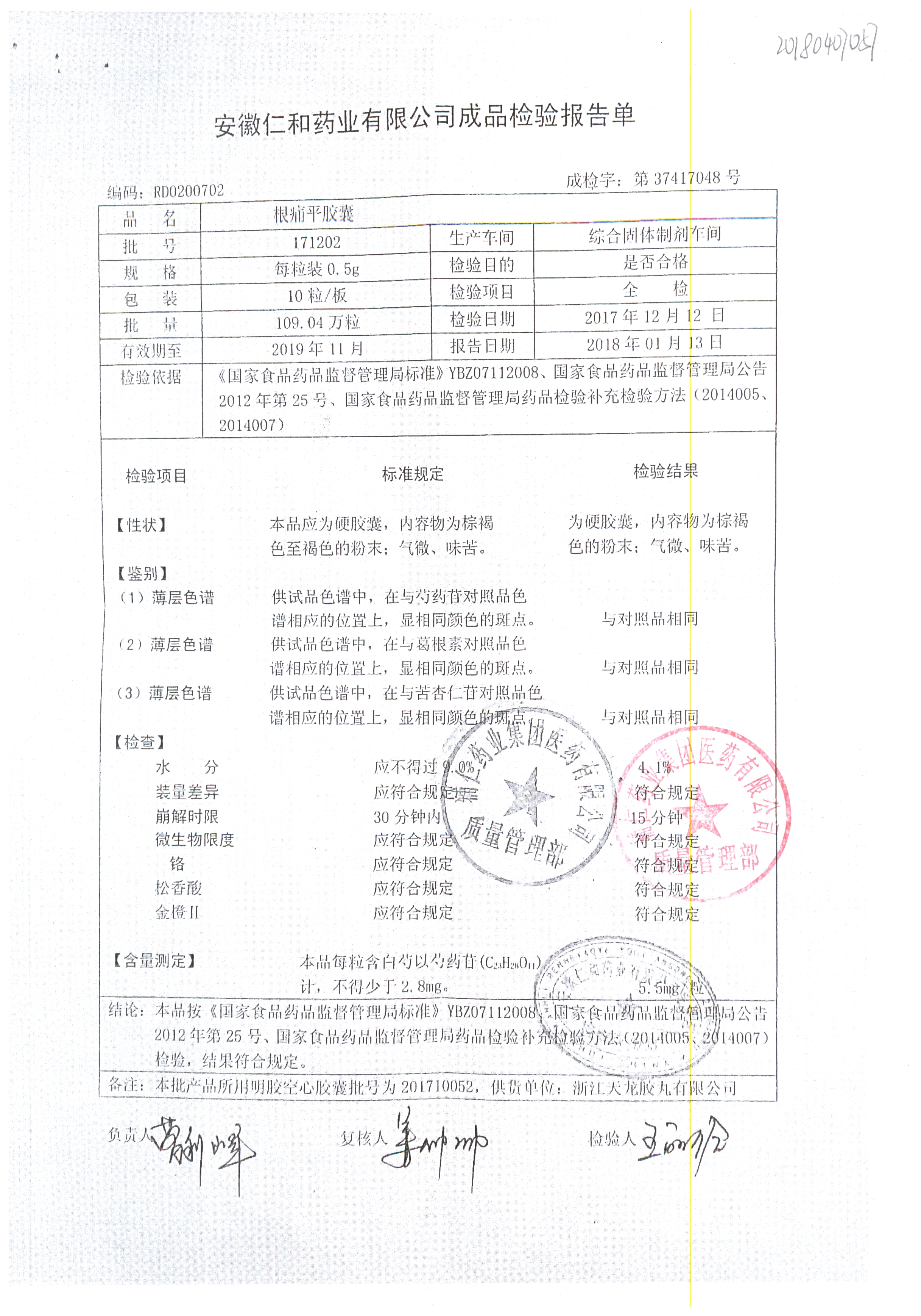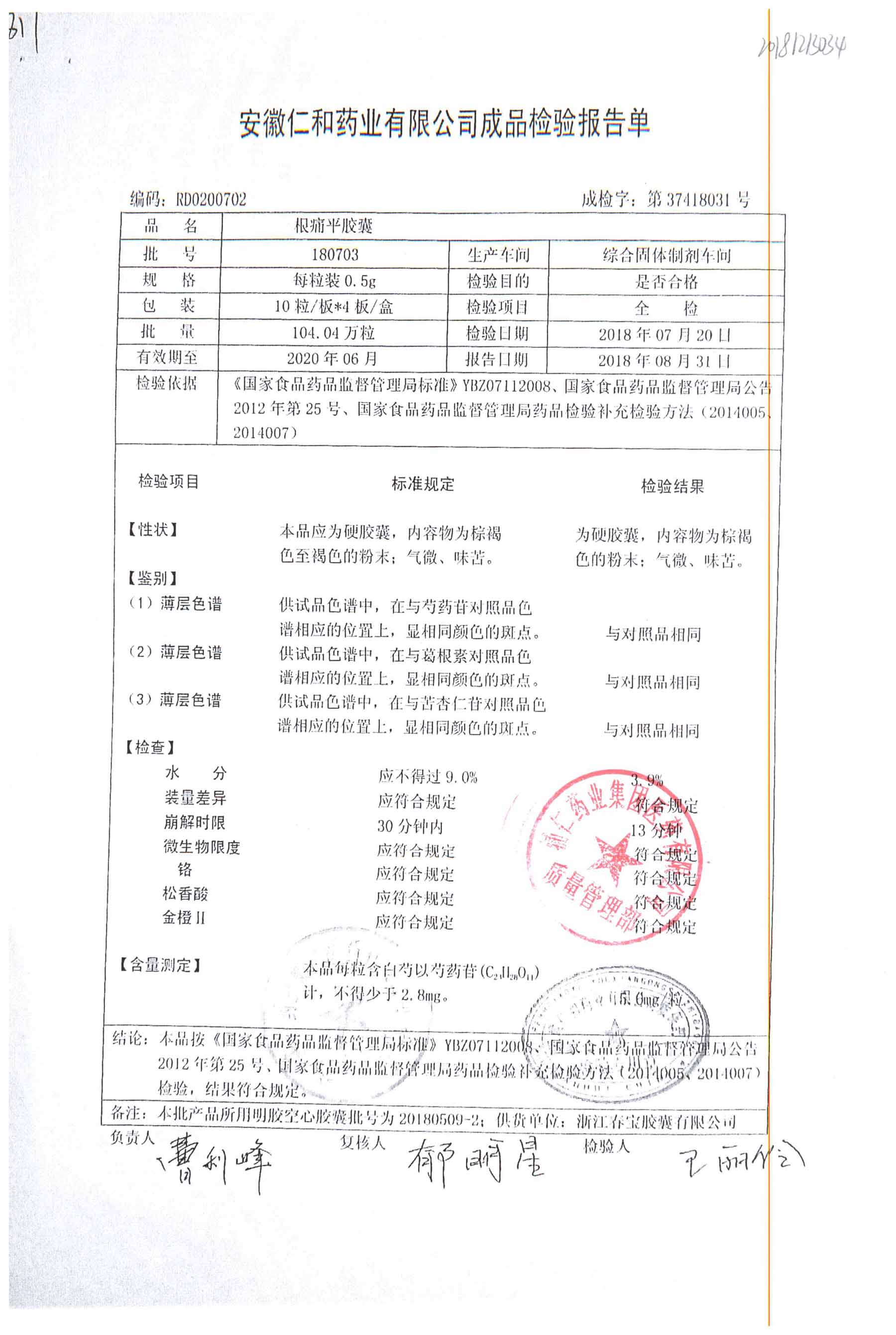 名稱 規(guī)格 批號(hào) 藥檢報(bào)告
