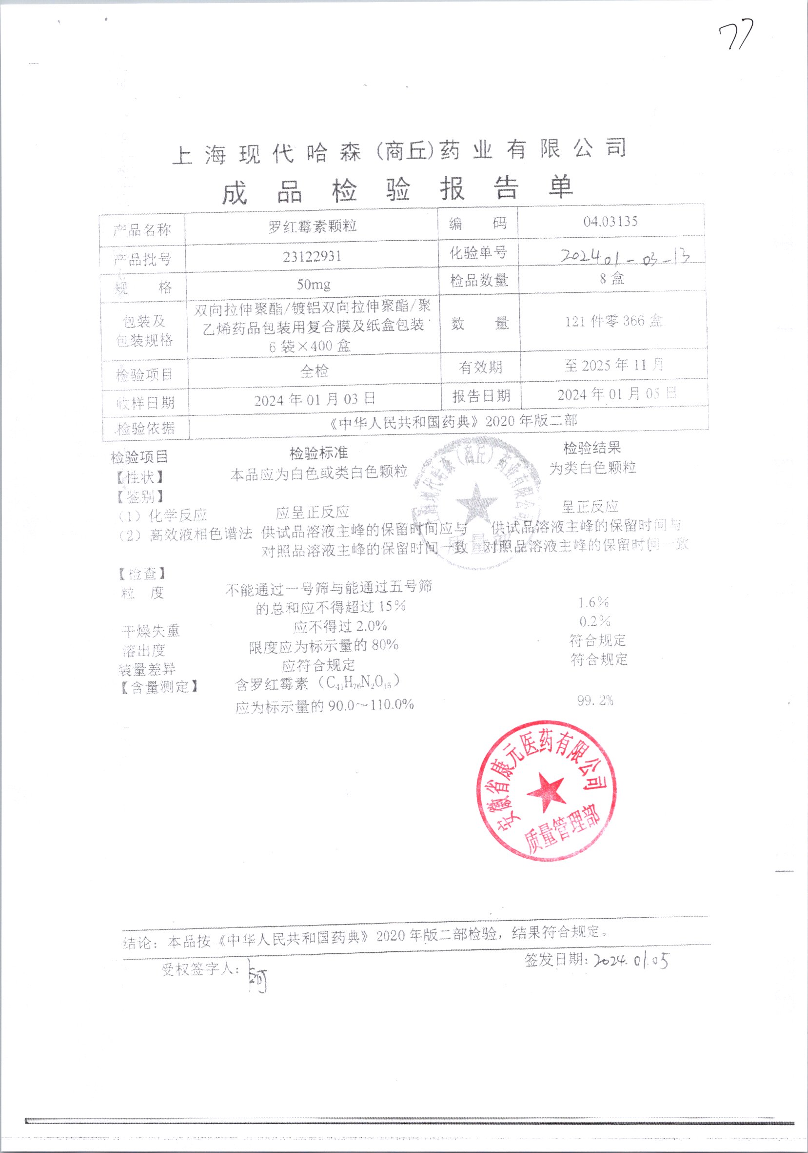 羅紅霉素顆粒 50mg*8袋 23122931 查看詳情