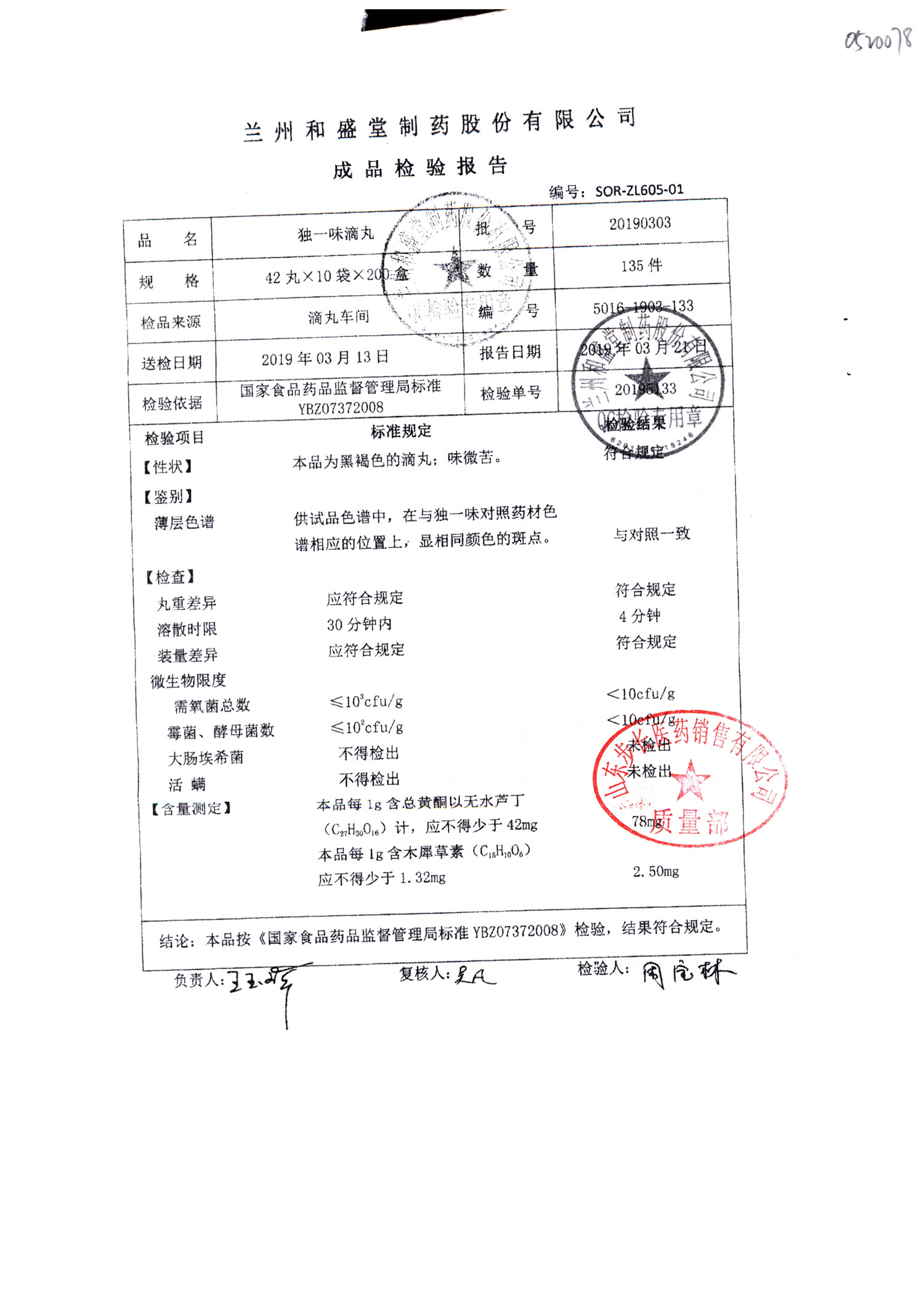 獨(dú)一味滴丸 12粒*10袋 20190303 查看詳情