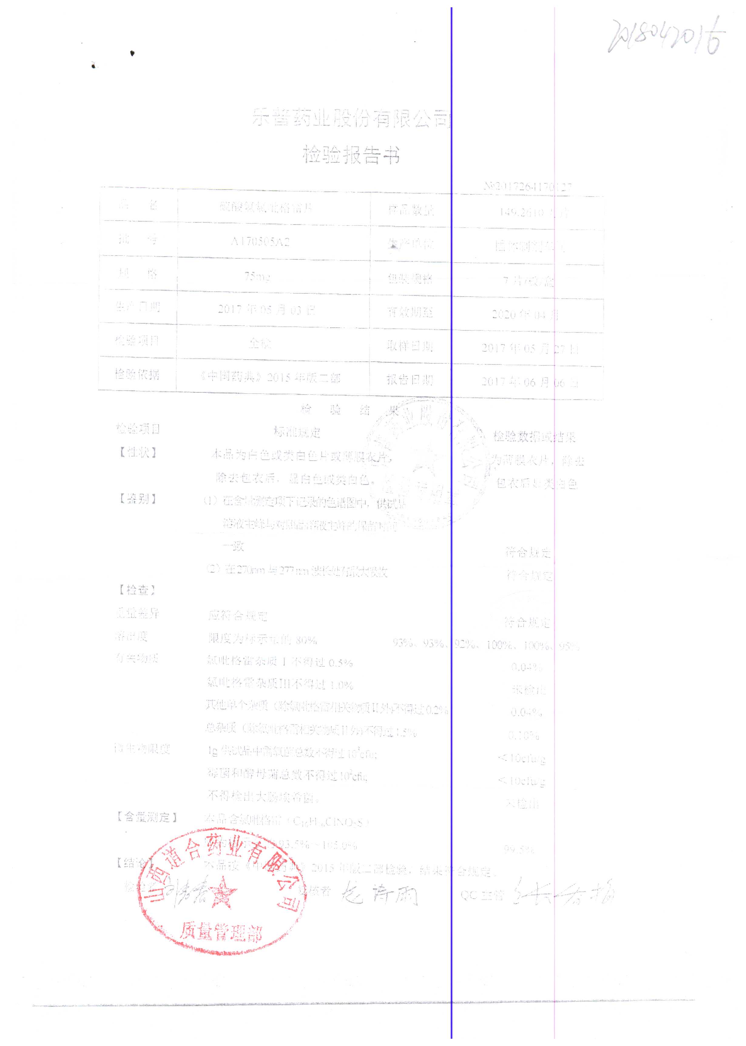 | 硫酸氫氯吡格雷片 | 75mg*7片 | A170405A2 | 查看詳情 |