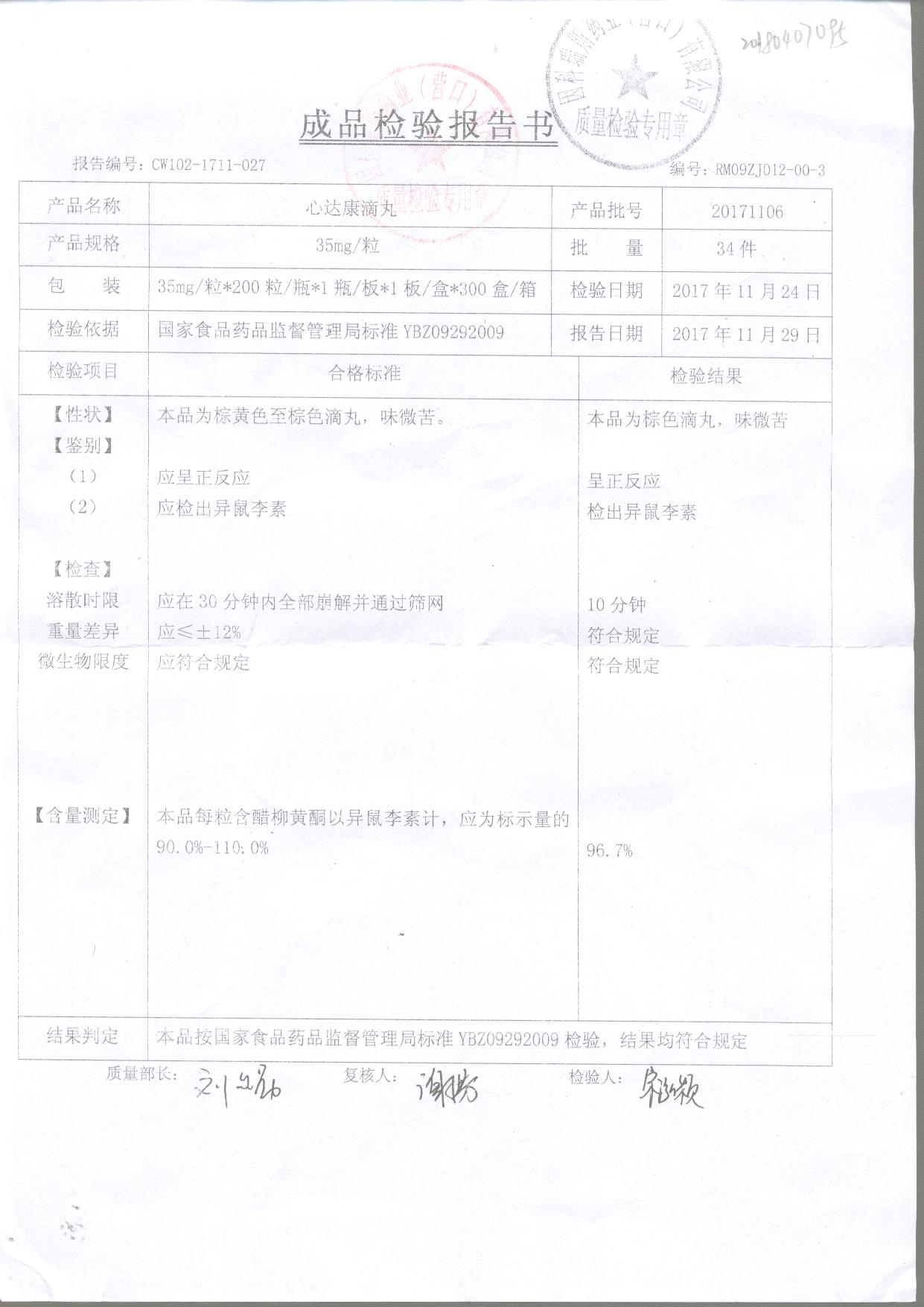 心達(dá)康滴丸 35mg*200粒 20171101 查看詳情
