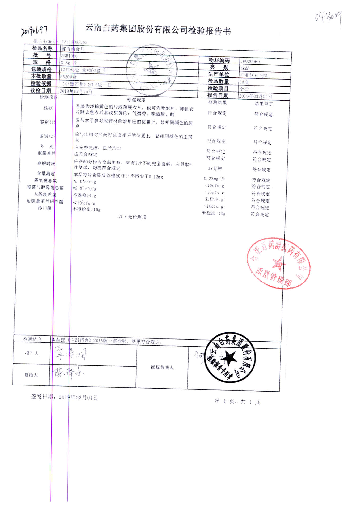 | 名稱 | 規(guī)格 | 批號 | 藥檢報告 |
