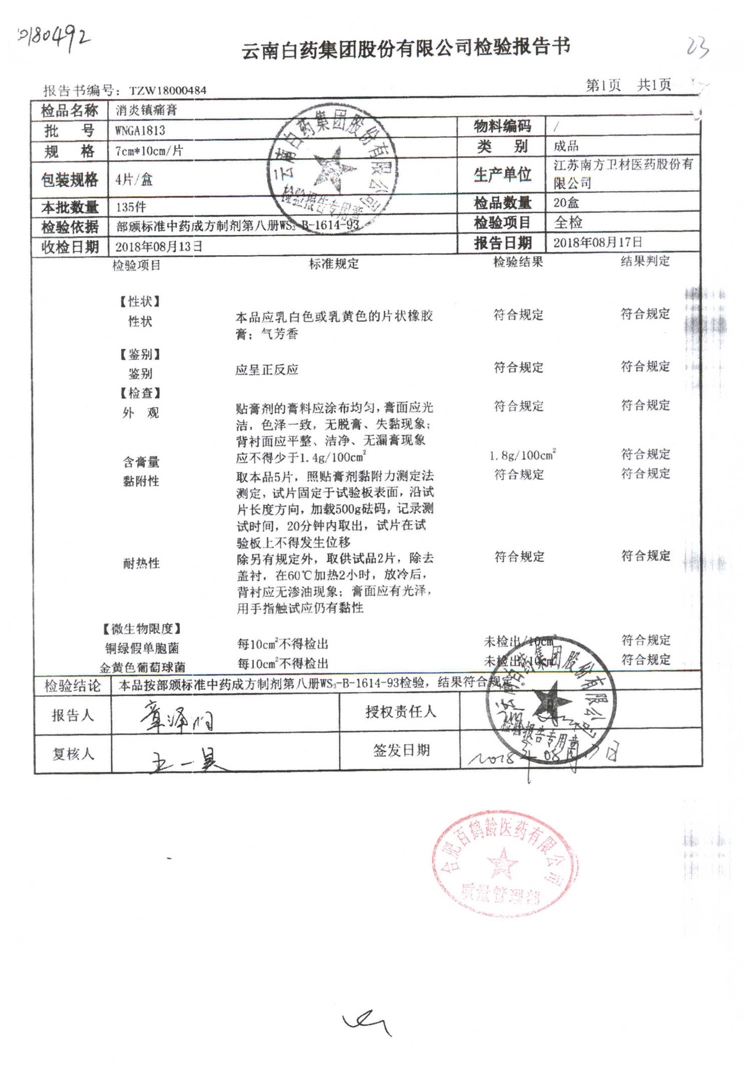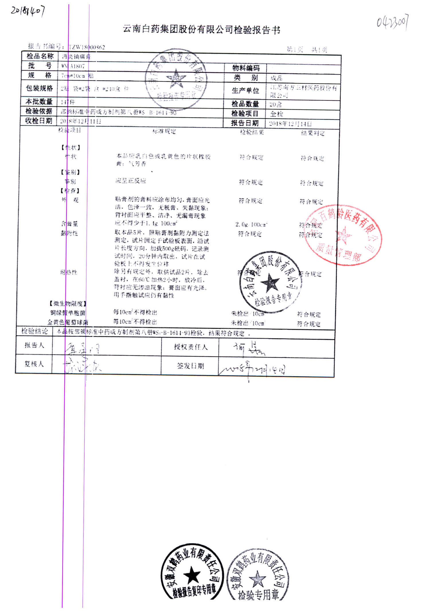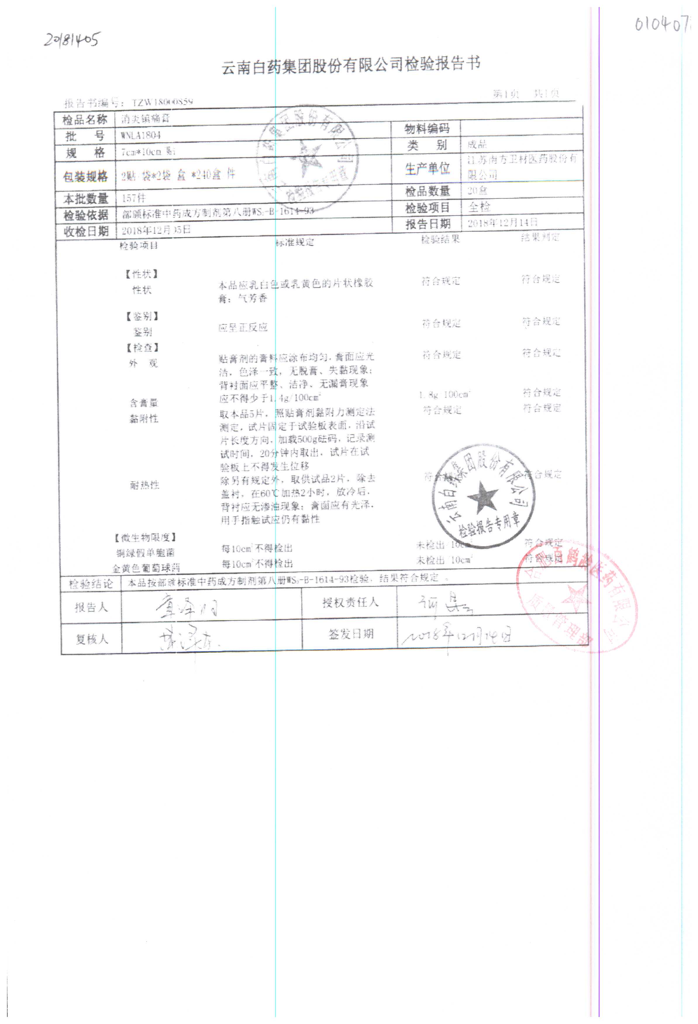 | 名稱 | 規(guī)格 | 批號 | 藥檢報告 |