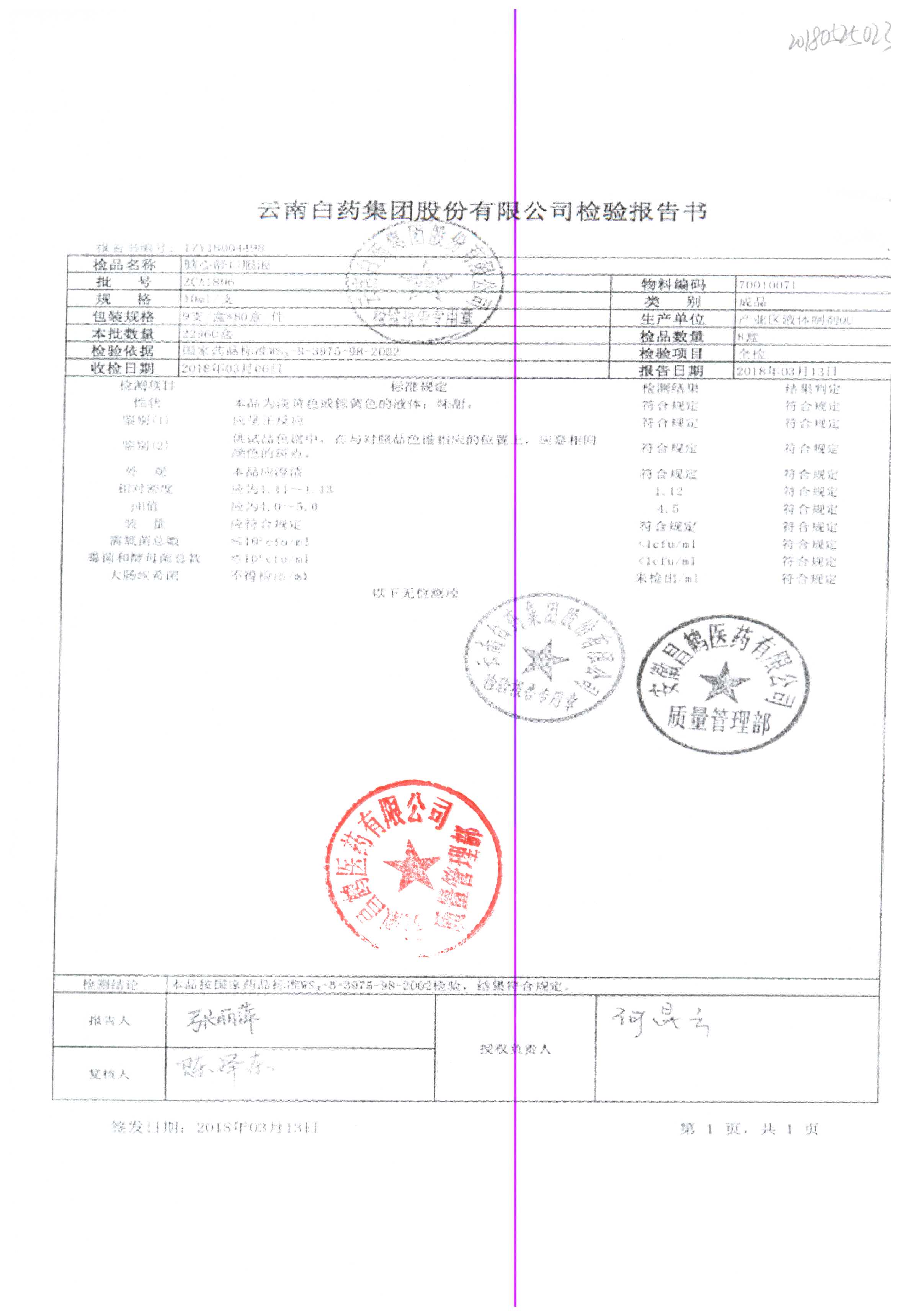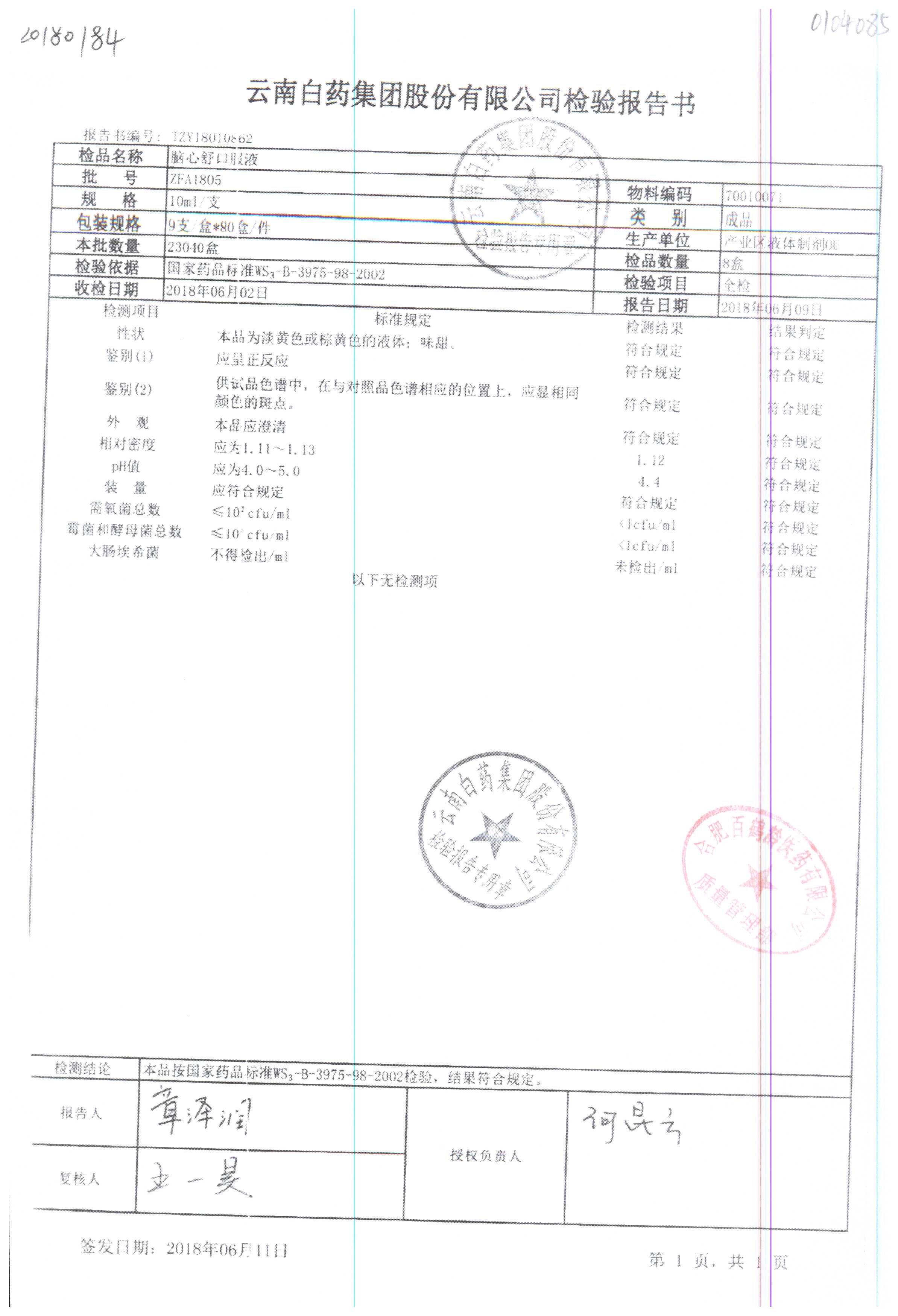 | 名稱 | 規(guī)格 | 批號(hào) | 藥檢報(bào)告 |