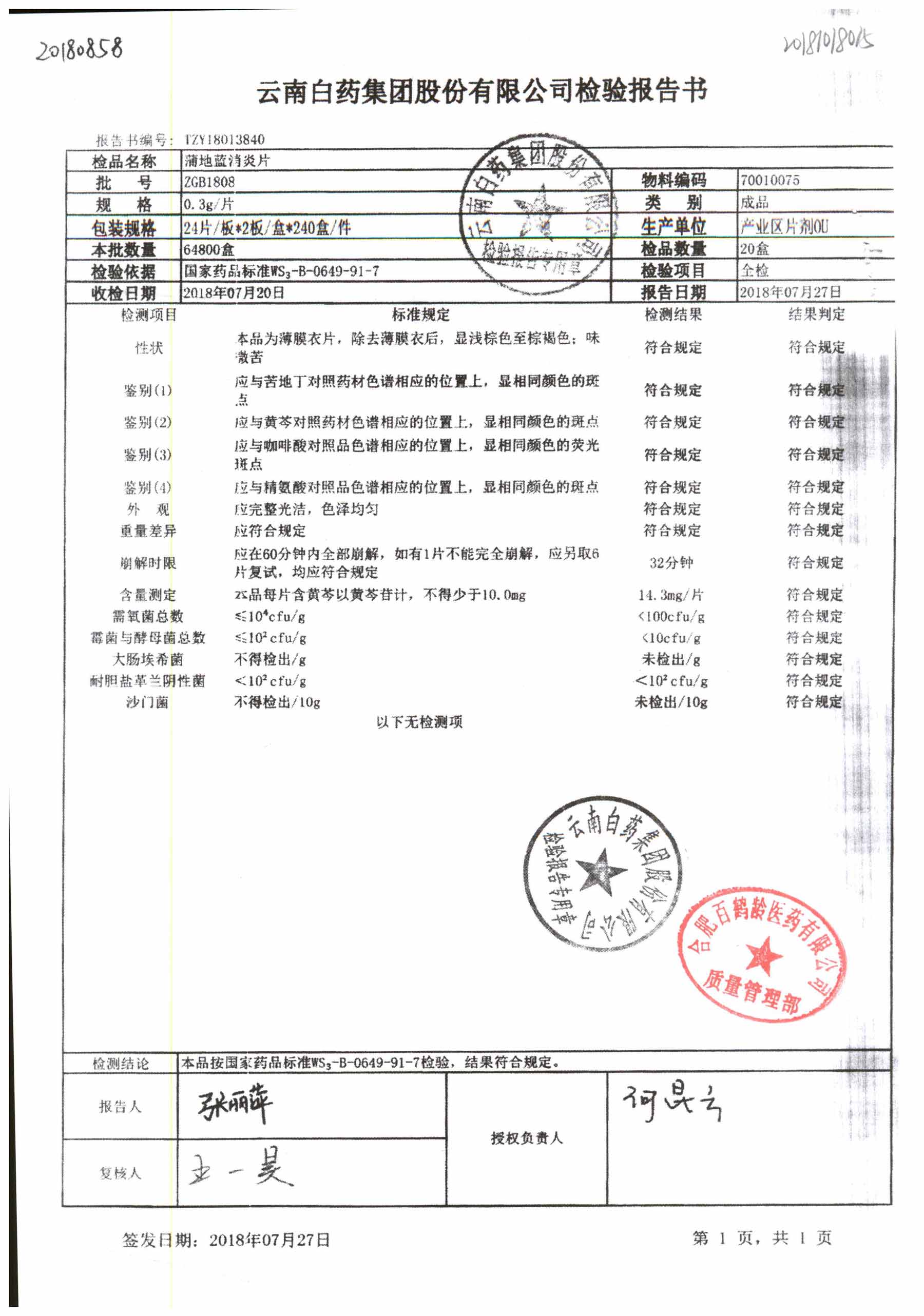 | 蒲地藍消炎片 | 0.3g*48片 | ZGB1808 | 查看詳情 |