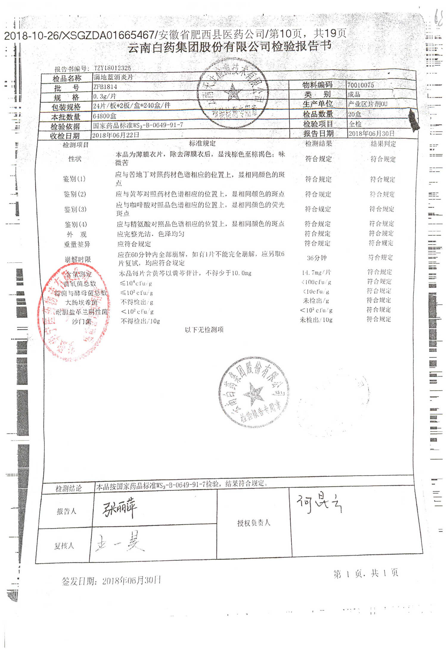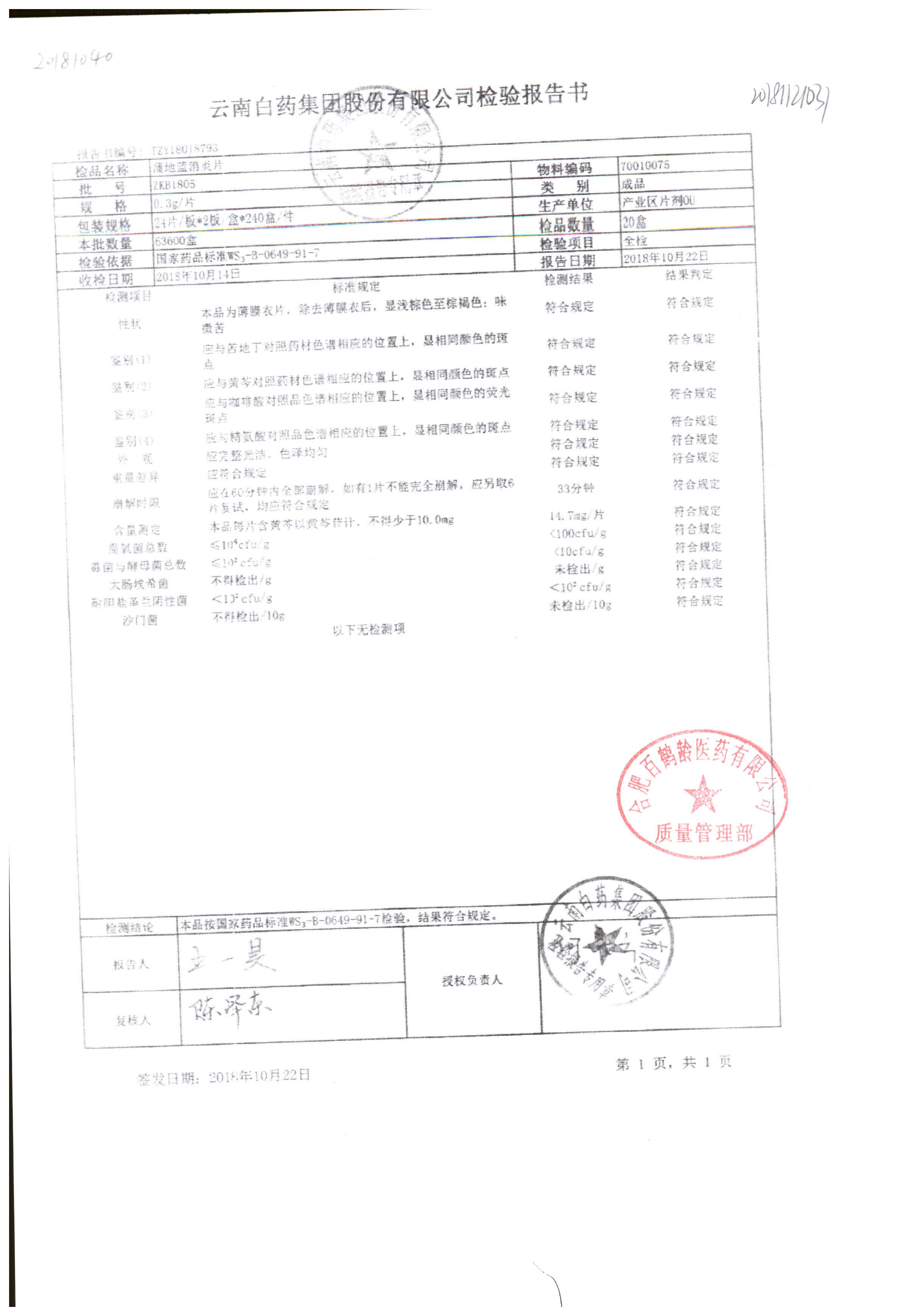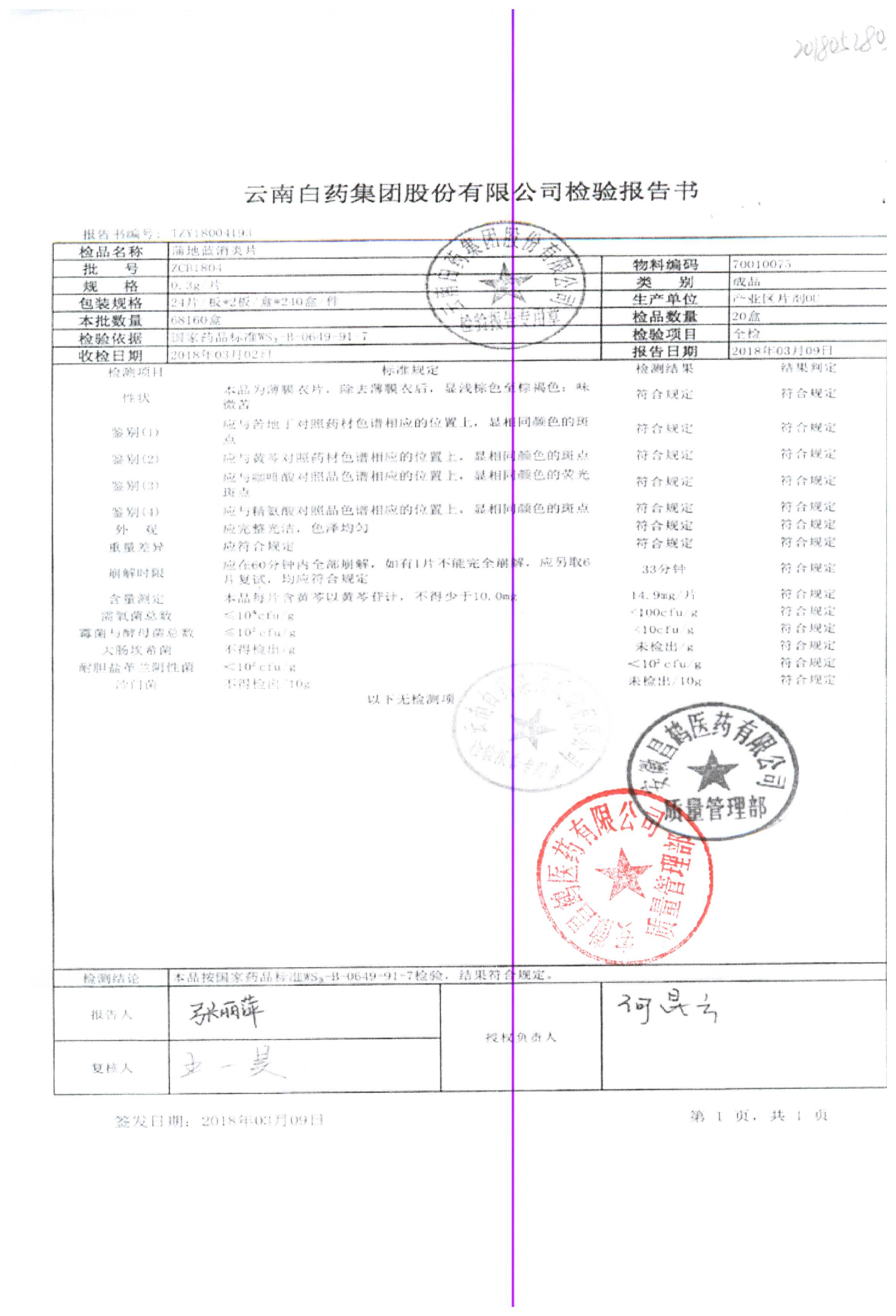 | 名稱 | 規(guī)格 | 批號 | 藥檢報告 |