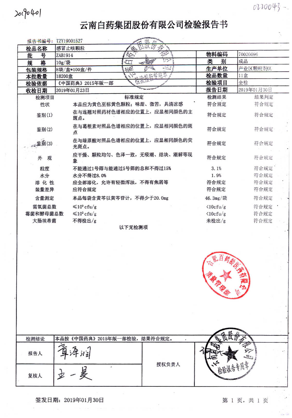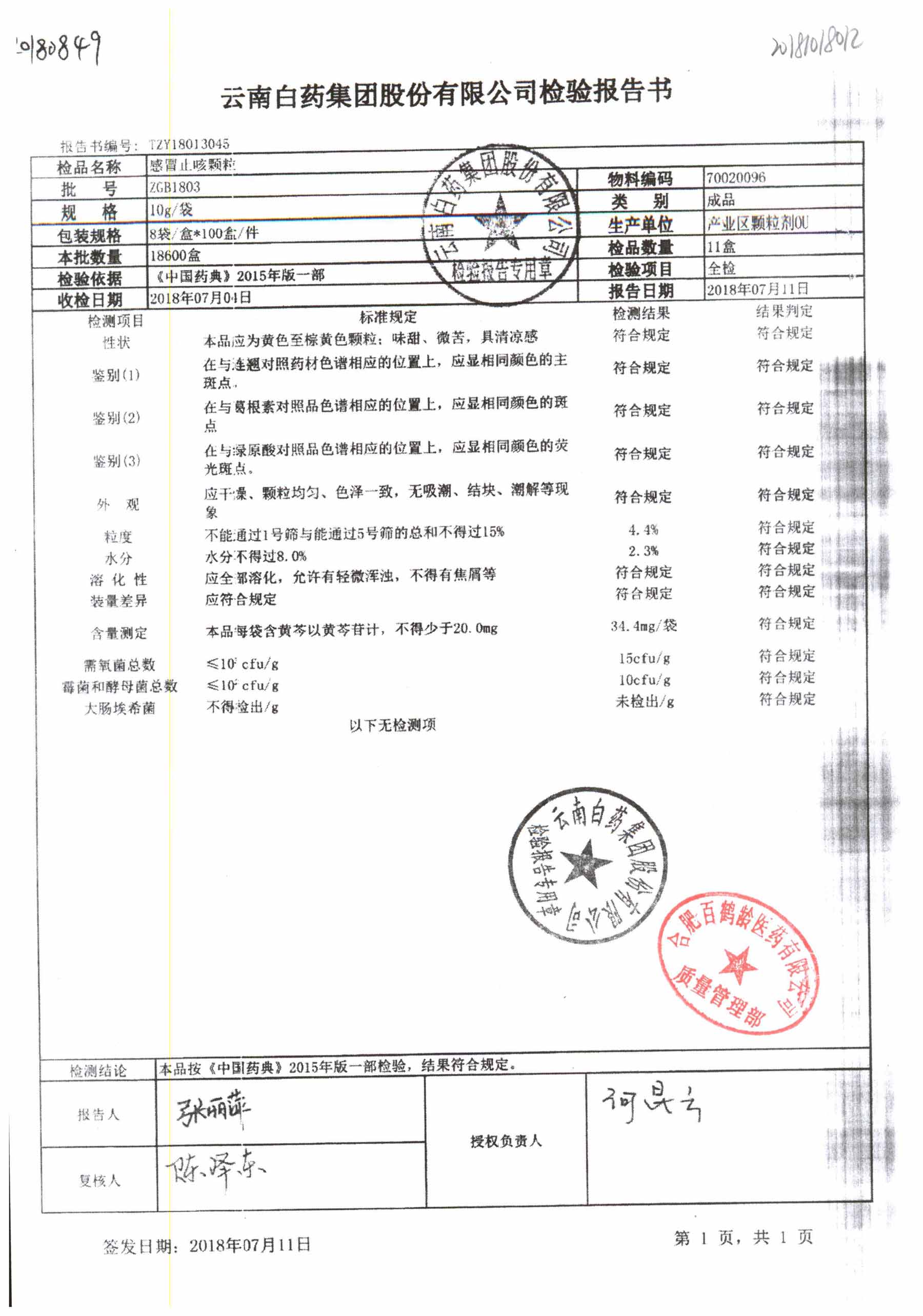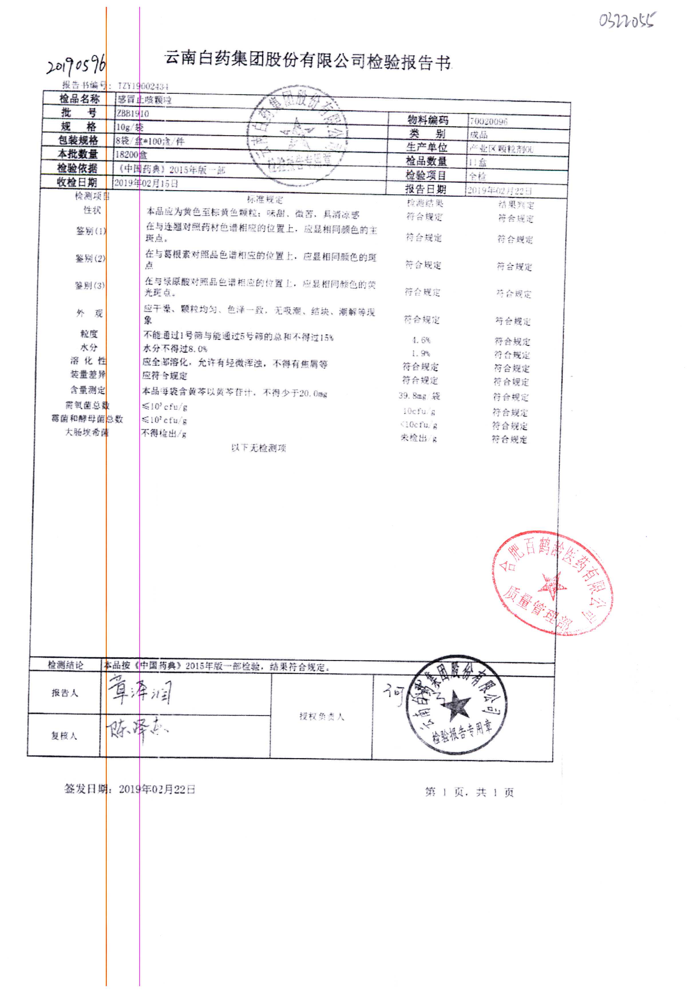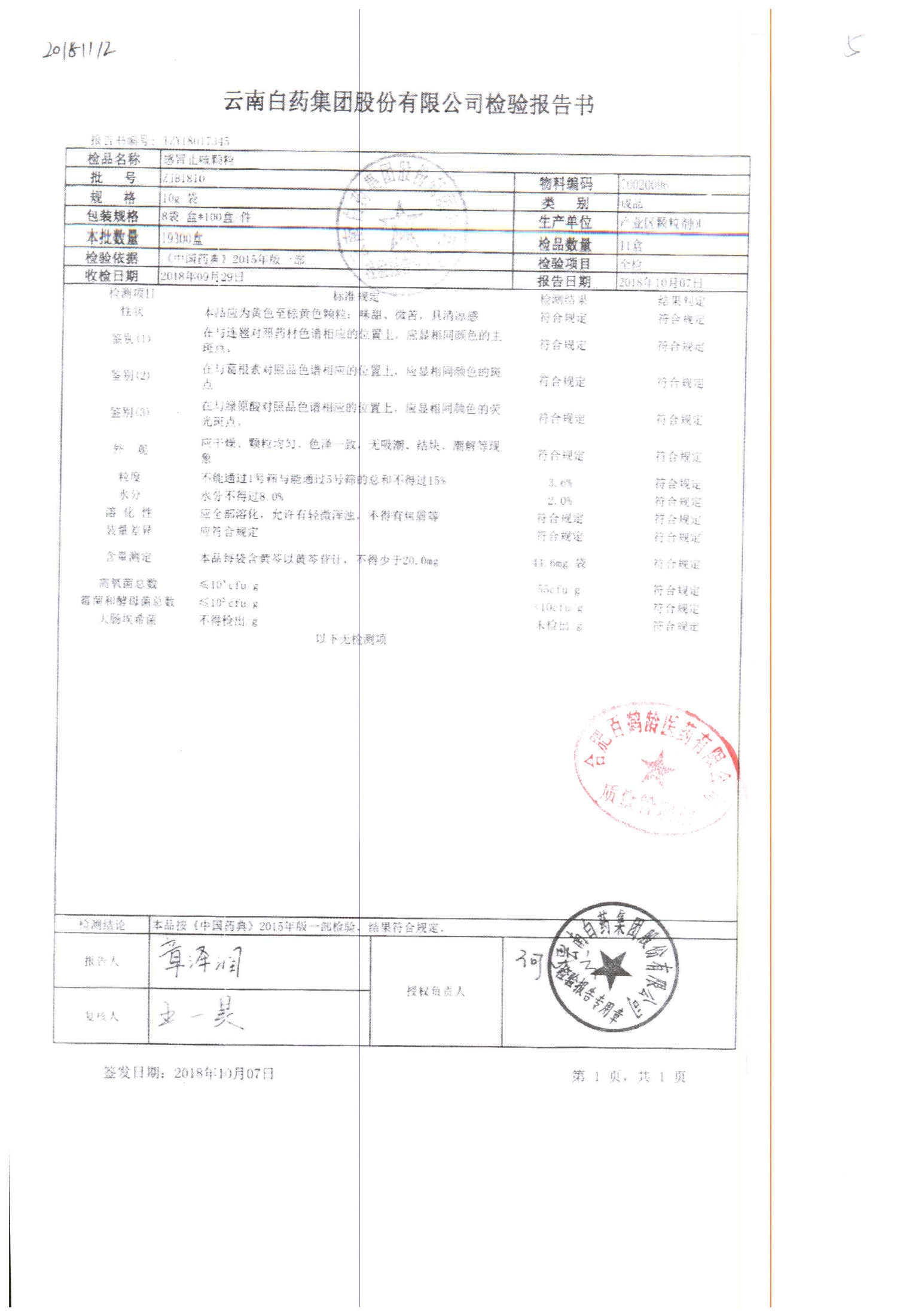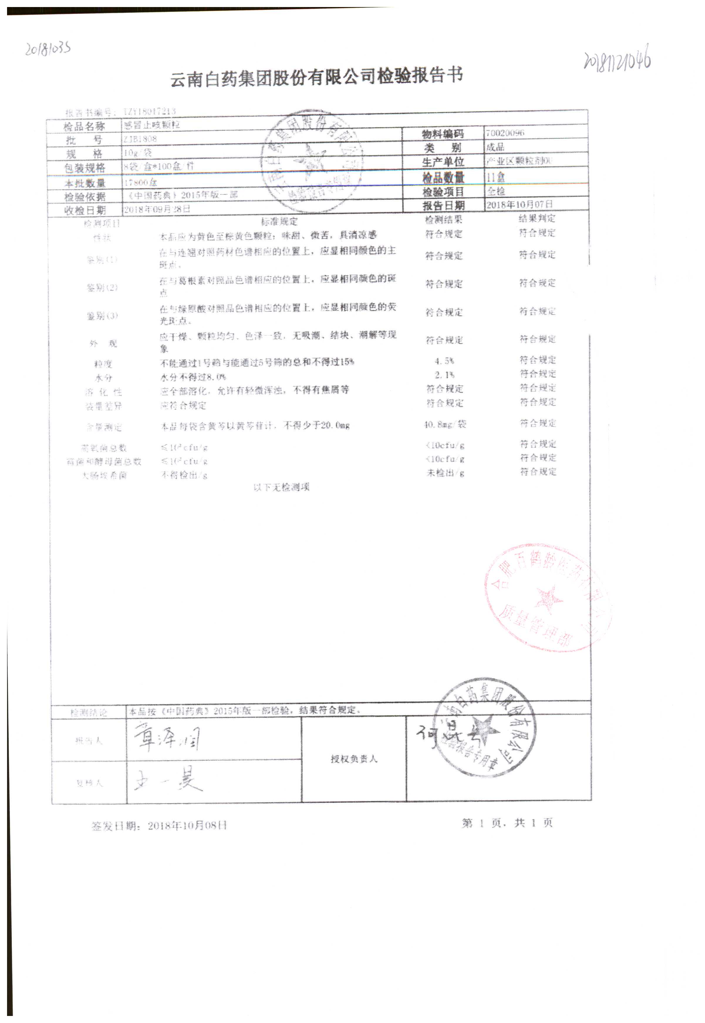 | 名稱 | 規(guī)格 | 批號 | 藥檢報告 |