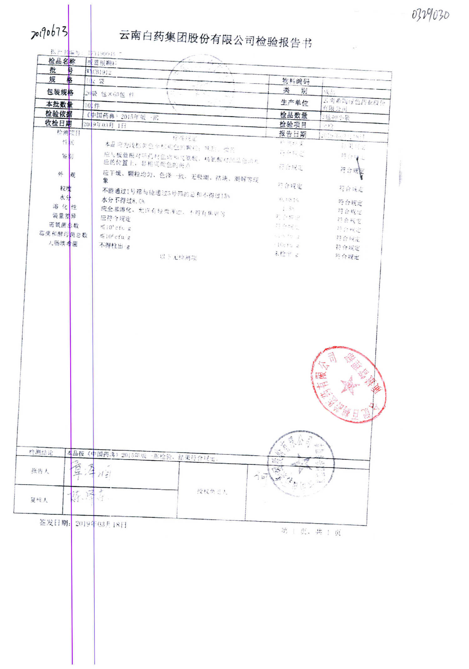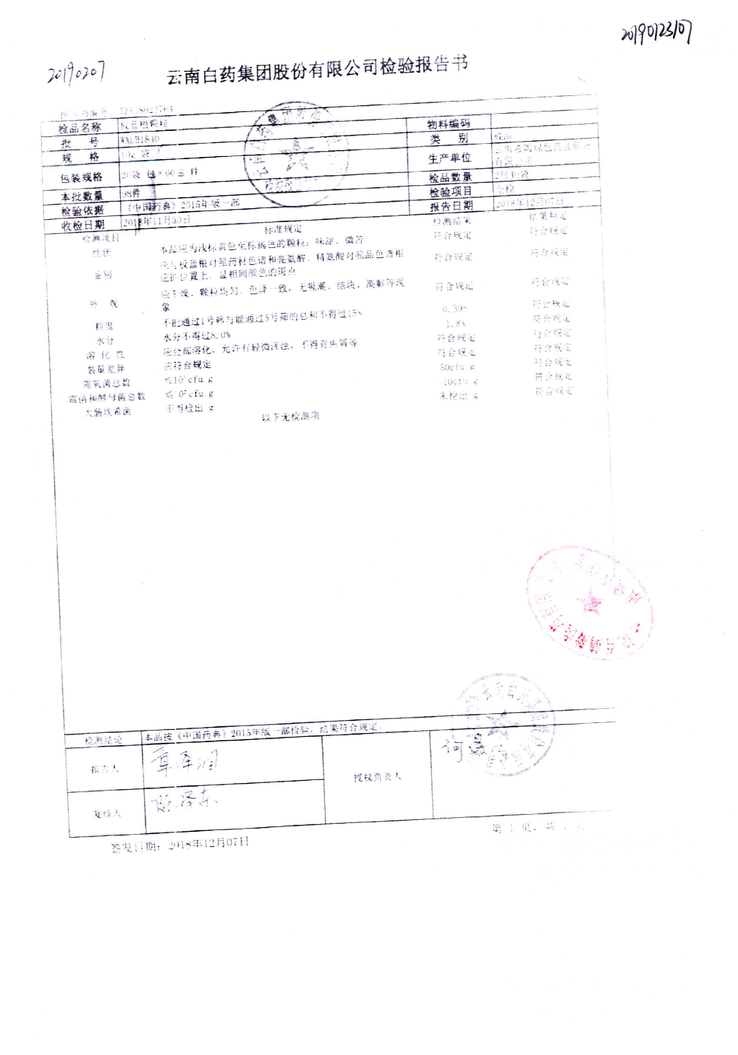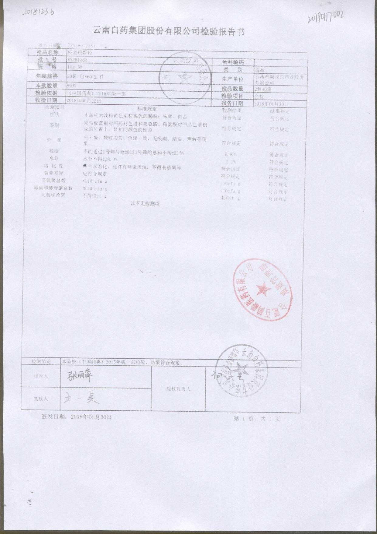 | 名稱 | 規(guī)格 | 批號(hào) | 藥檢報(bào)告 |