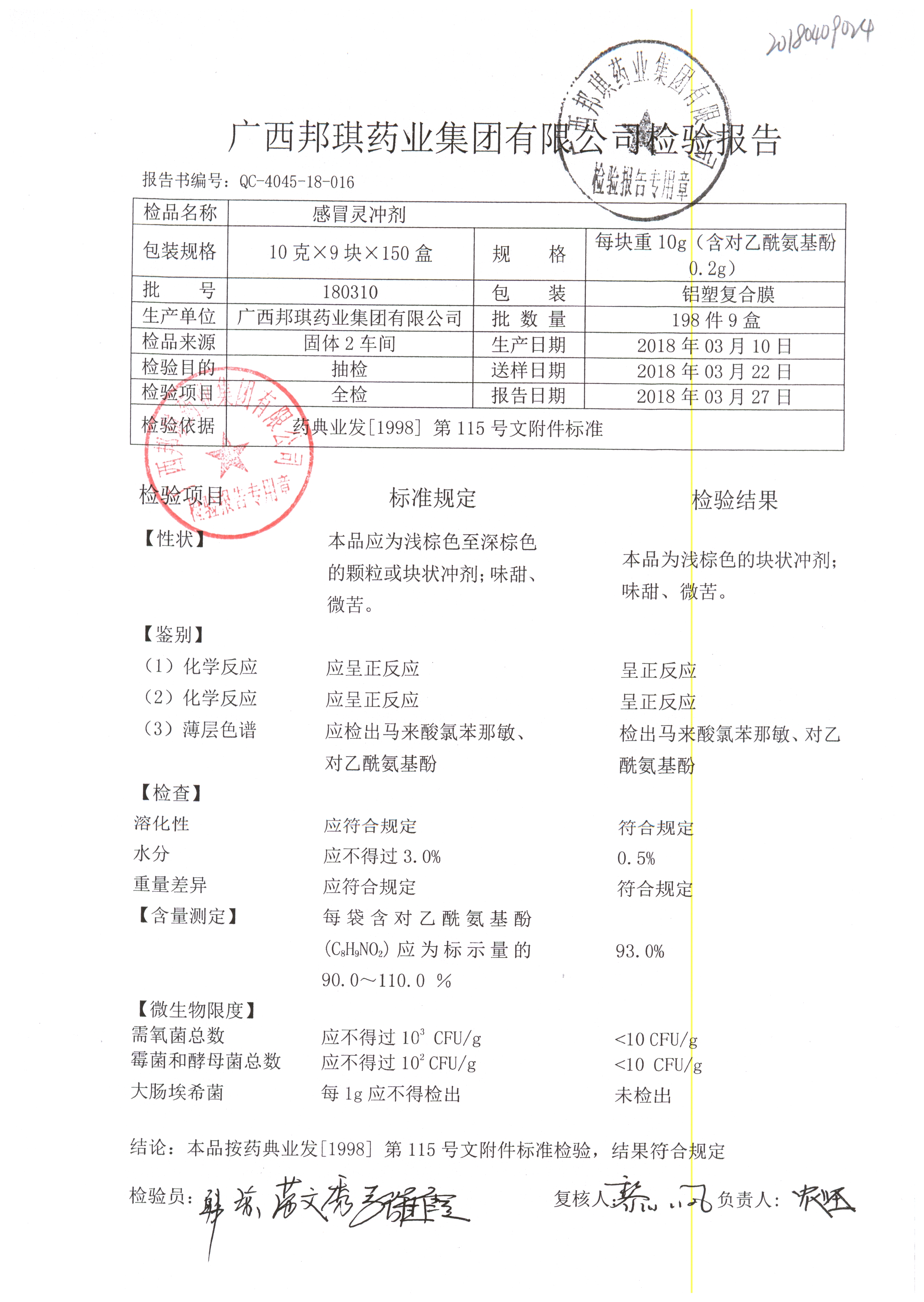 名稱 規(guī)格 批號 藥檢報告