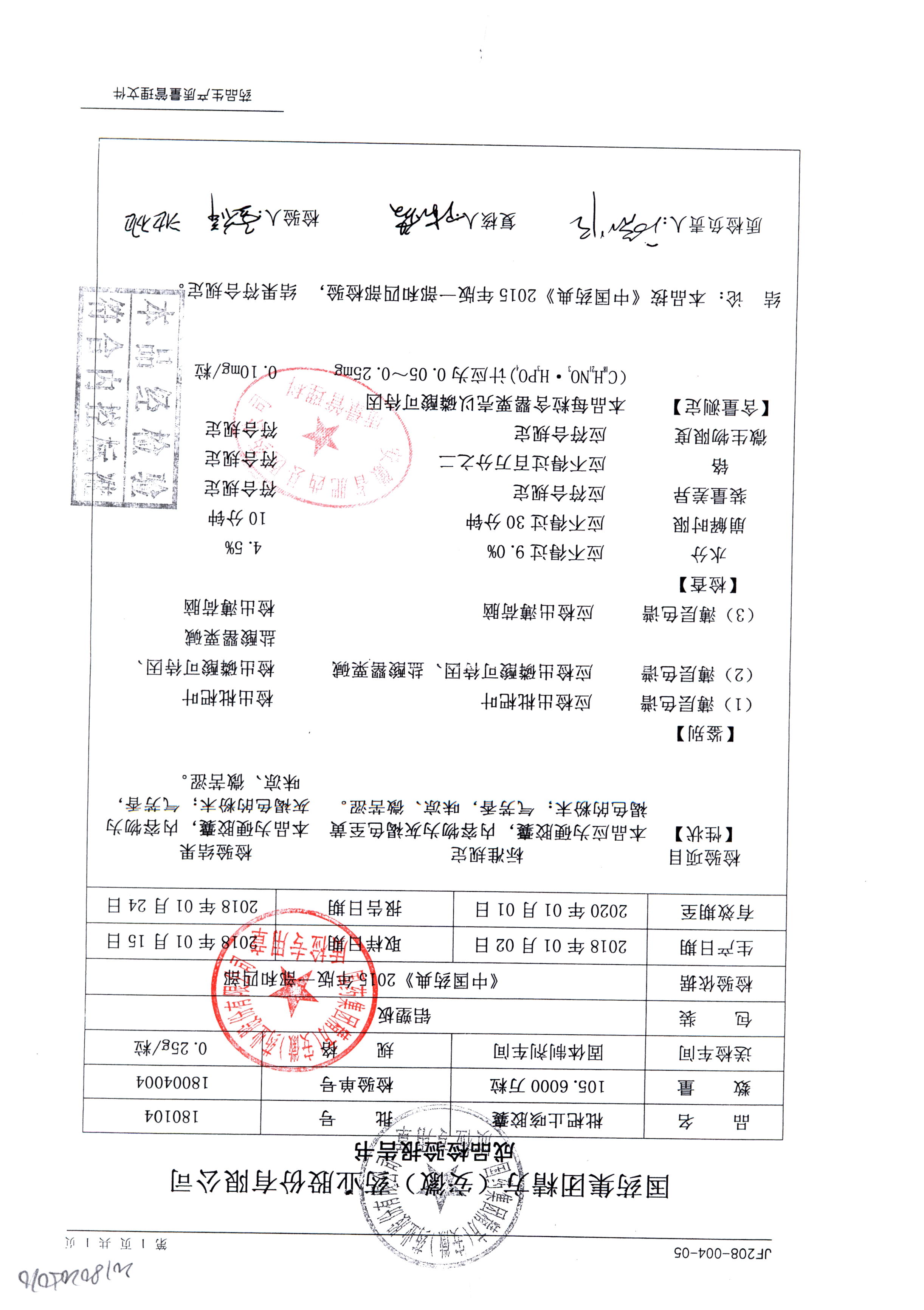| 名稱 | 規(guī)格 | 批號 | 藥檢報告 |
