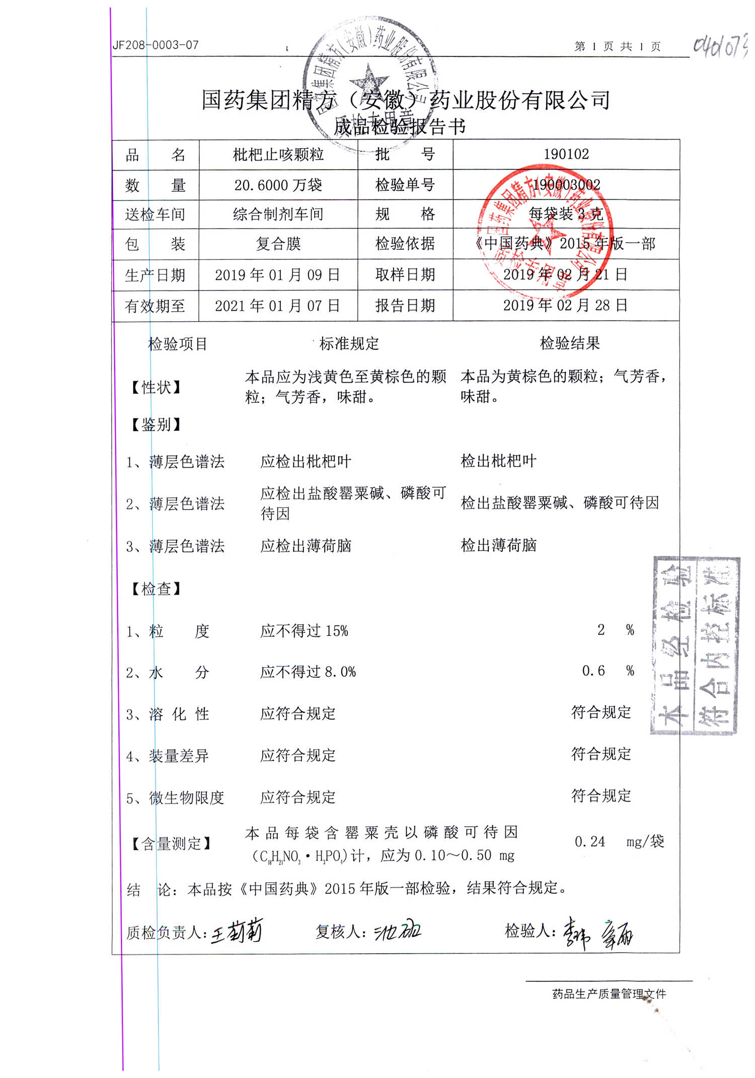 | 枇杷止咳顆粒 | 3g | 190302 | 查看詳情 |