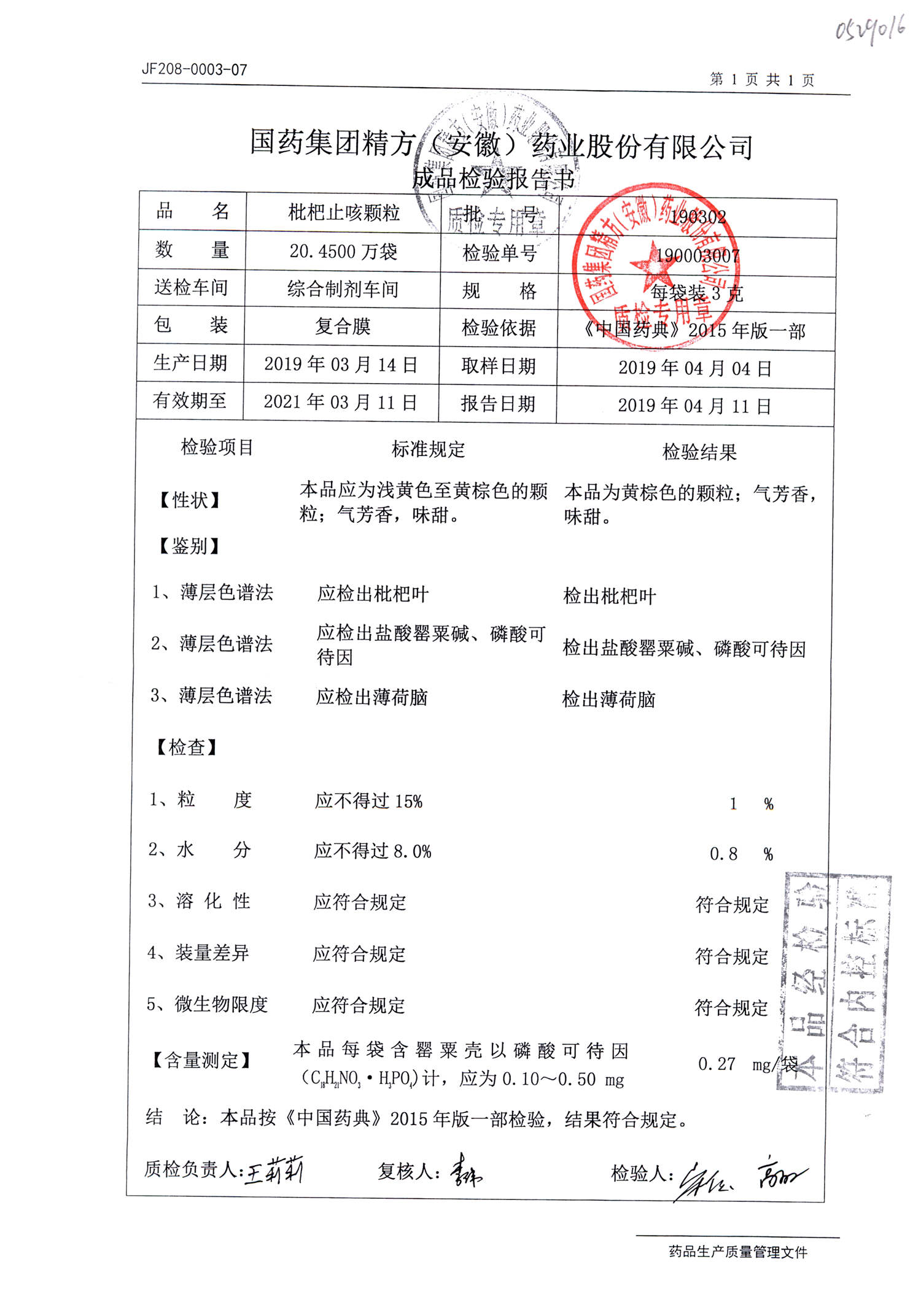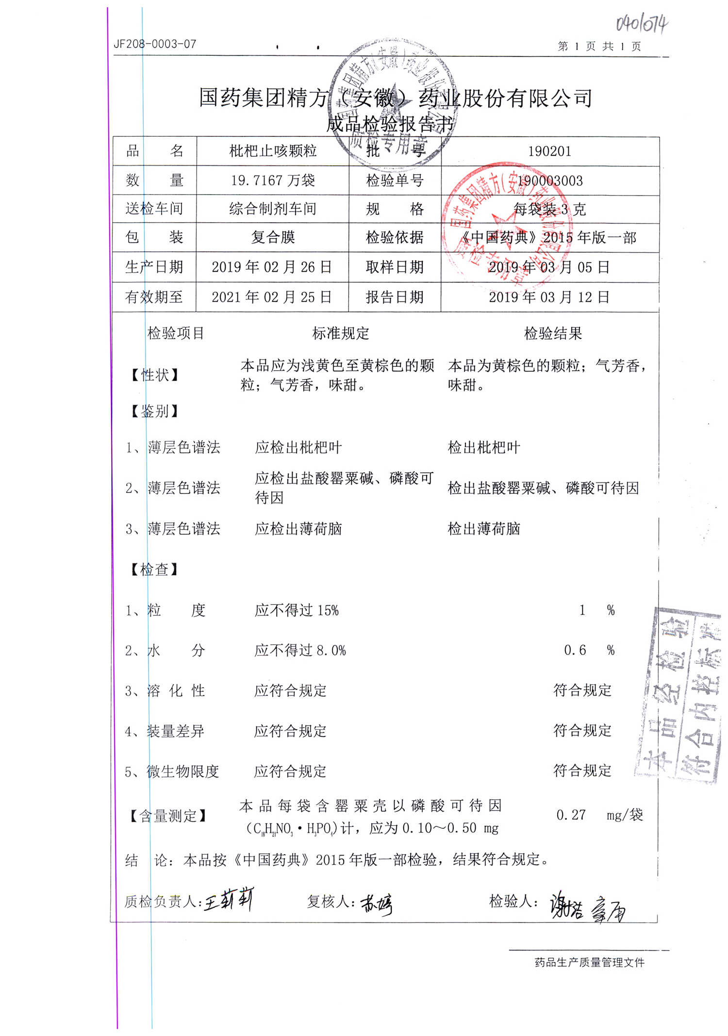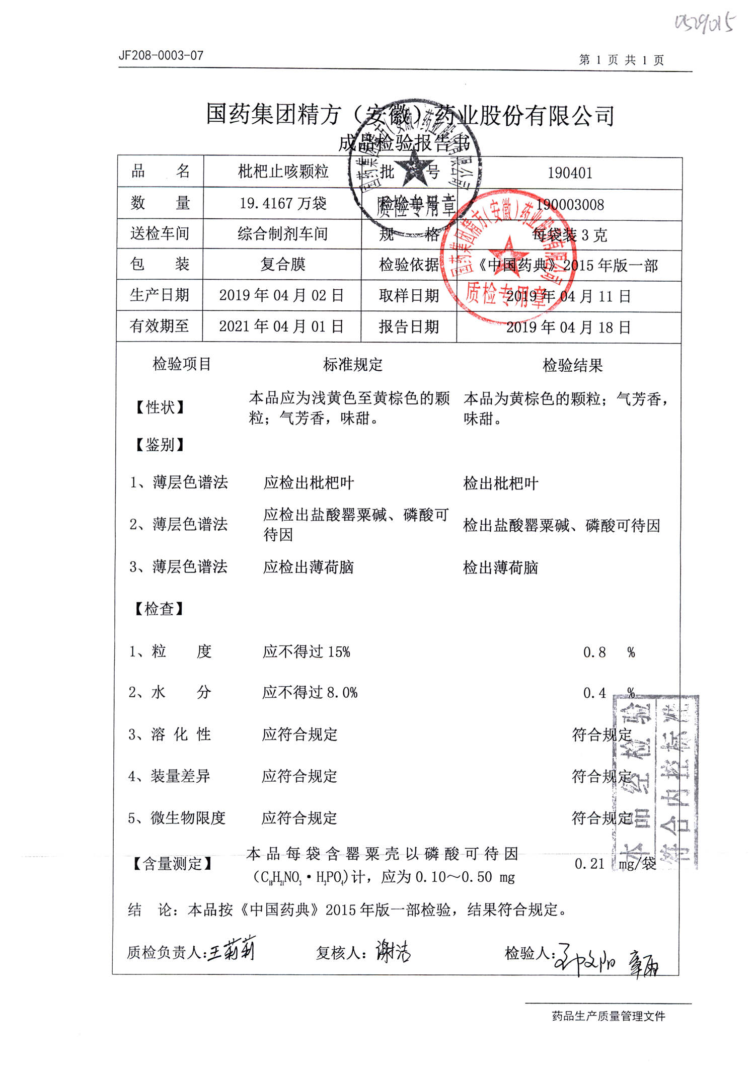 | 枇杷止咳顆粒 | 3g | 190401 | 查看詳情 |
