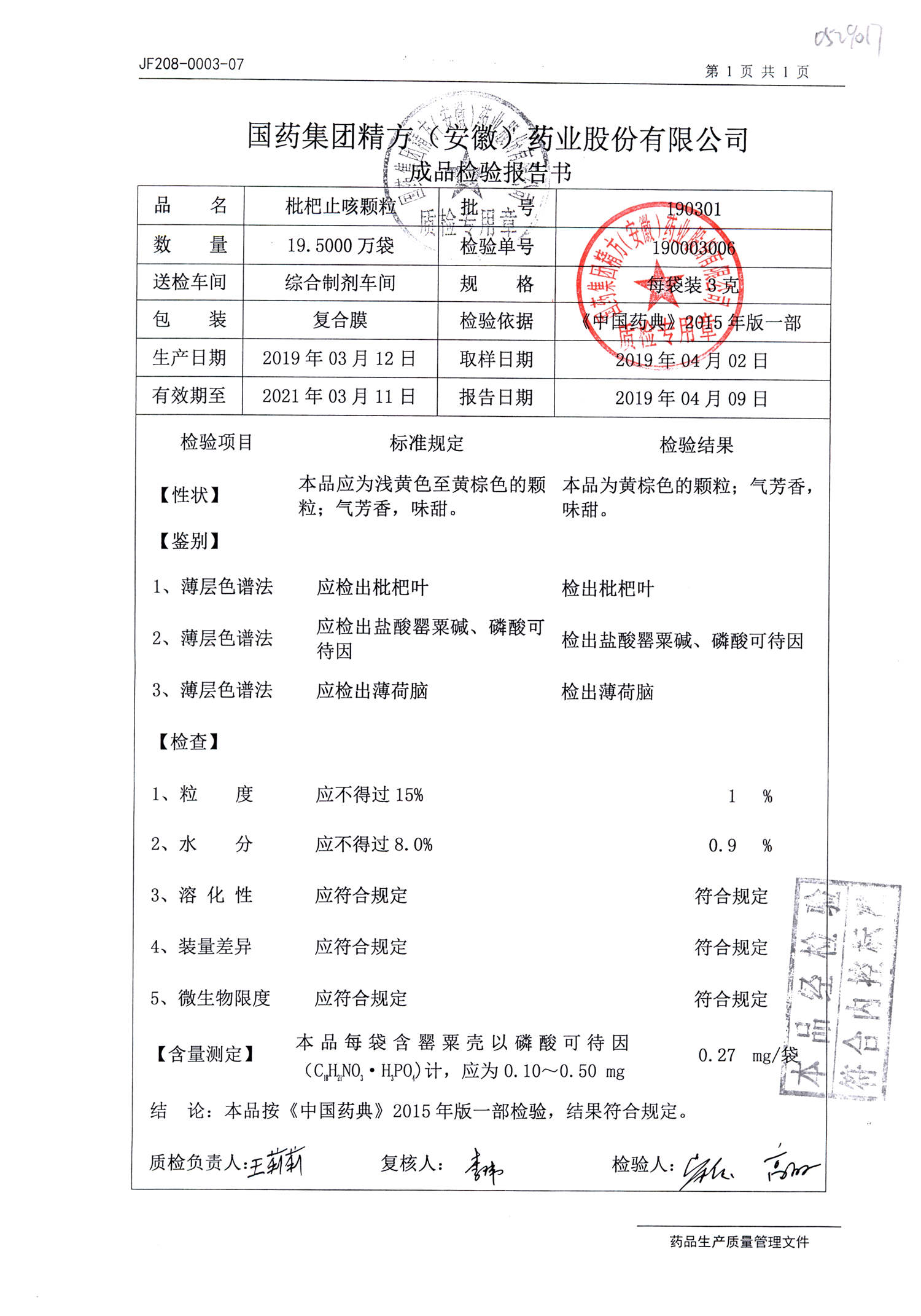 | 枇杷止咳顆粒 | 3g | 190301 | 查看詳情 |